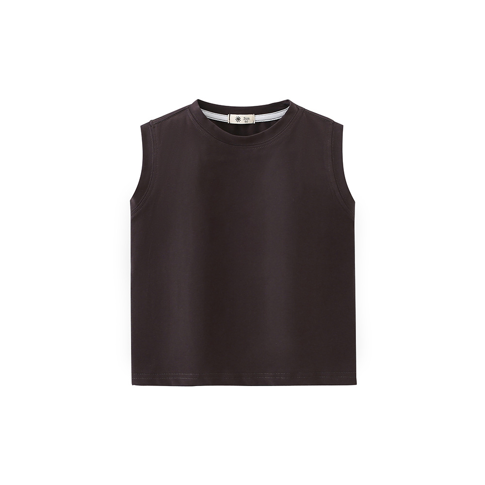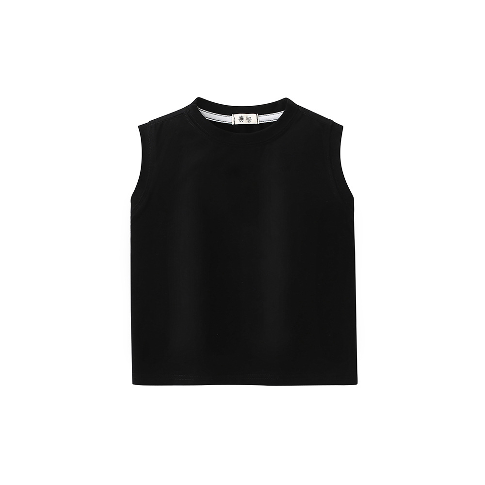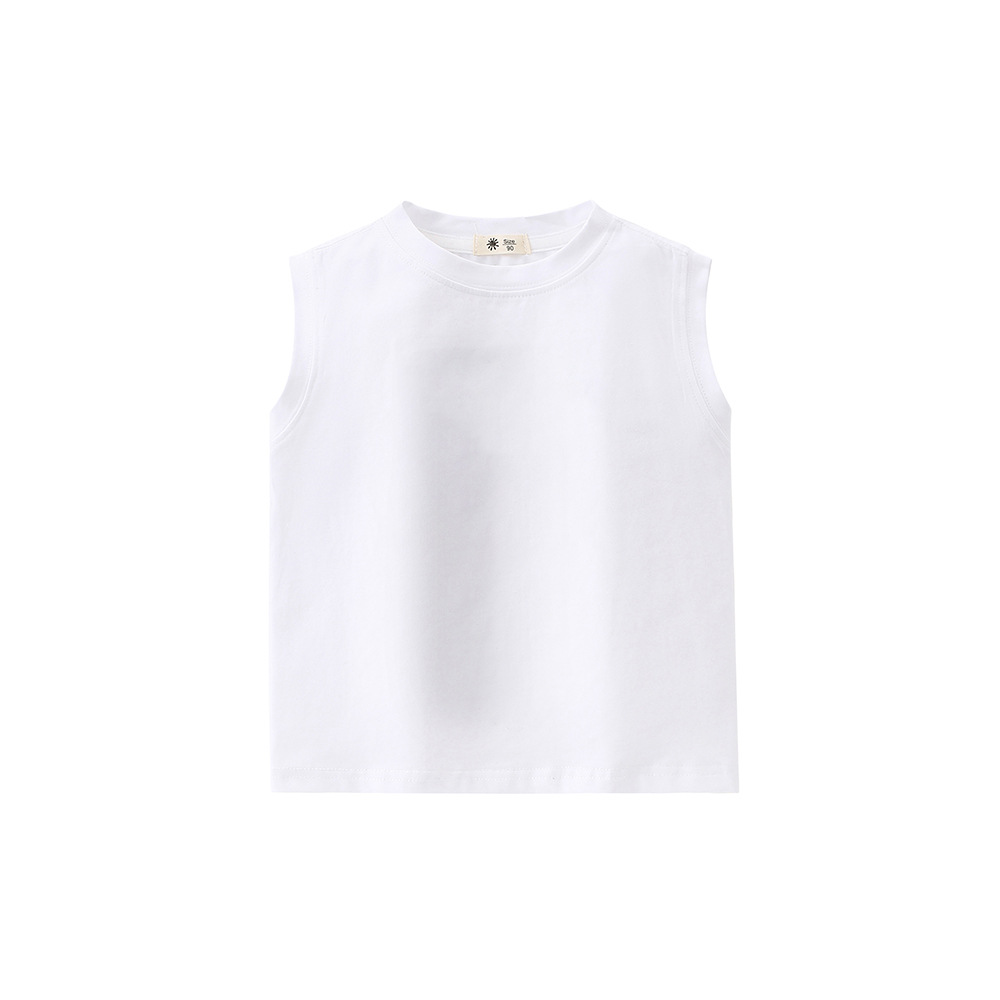 여름 소녀의 새로운 민소매 코튼 보이의 잘 생긴 조끼 클래스 유행 브랜드 아동복 만화 단색 어린이 티셔츠