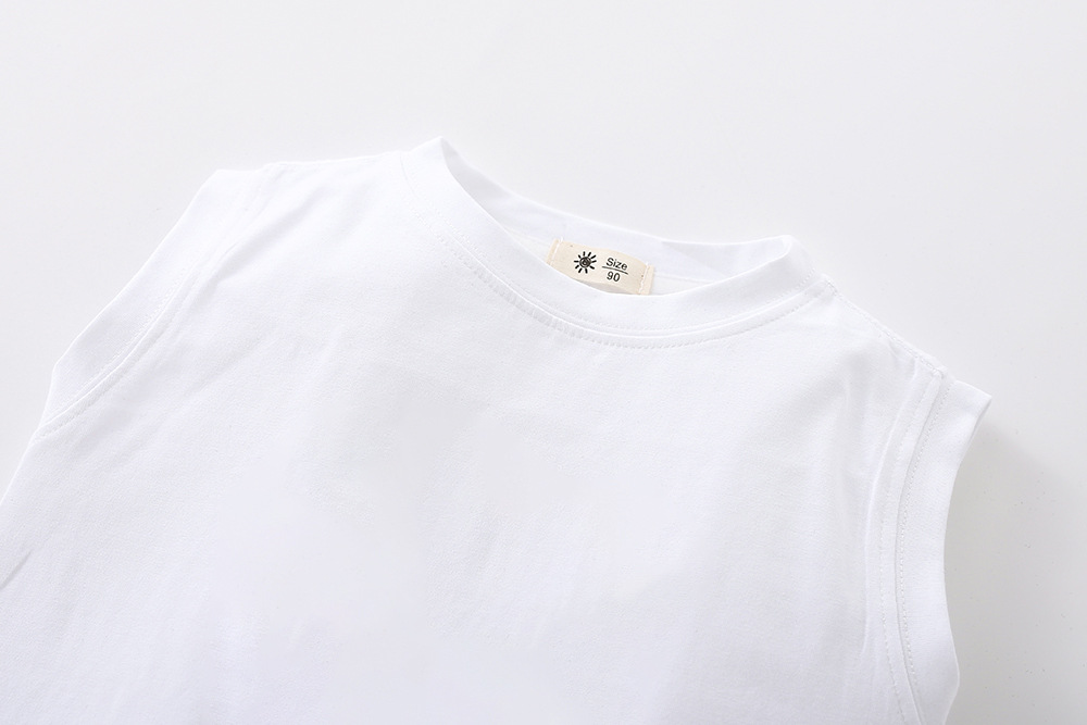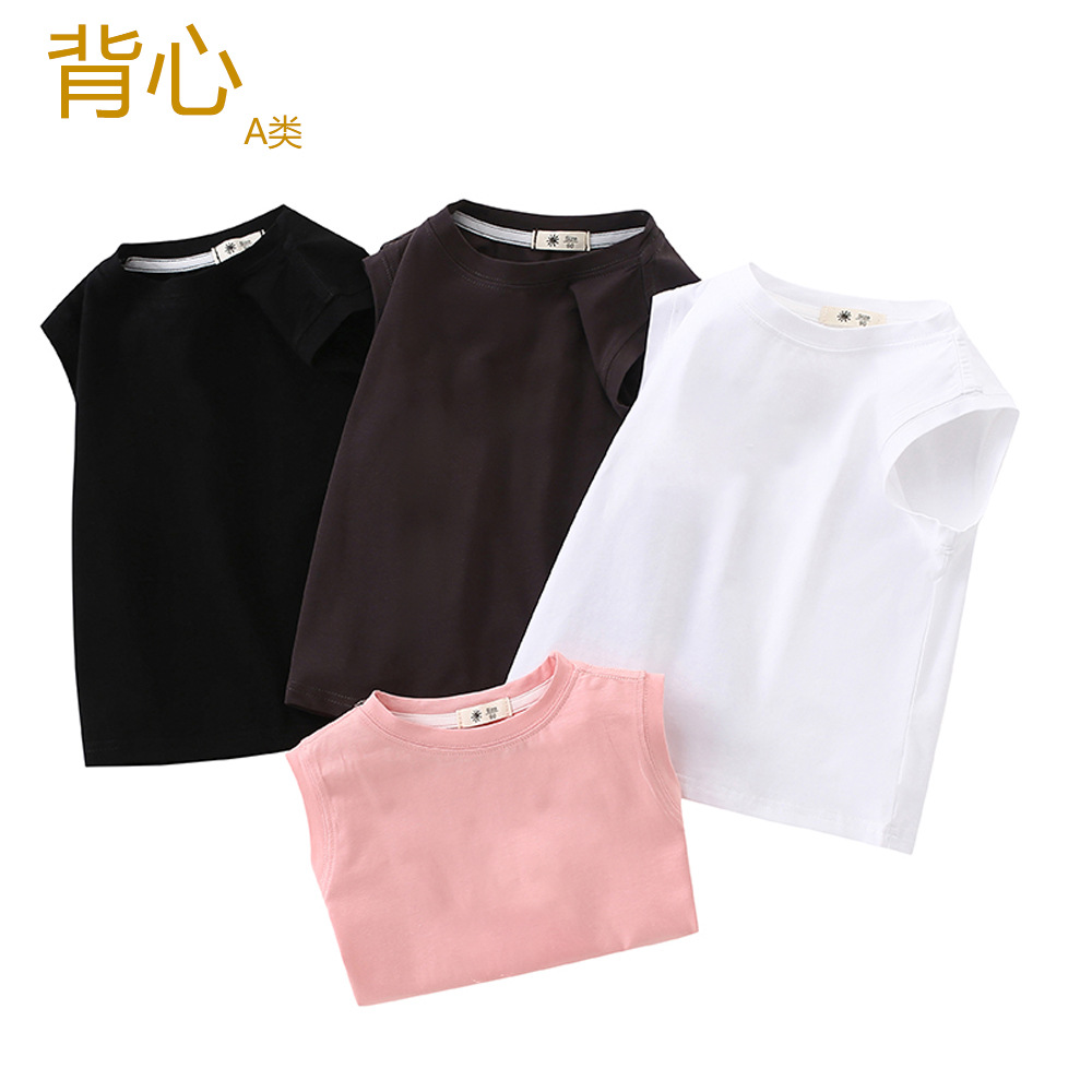 여름 소녀의 새로운 민소매 코튼 보이의 잘 생긴 조끼 클래스 유행 브랜드 아동복 만화 단색 어린이 티셔츠스토어 가기