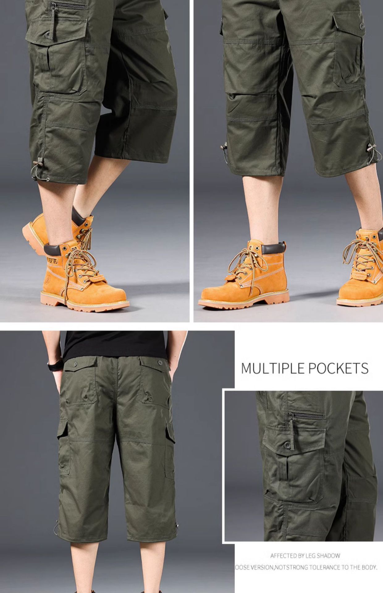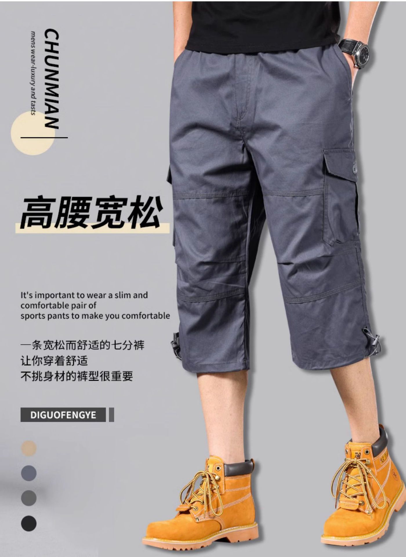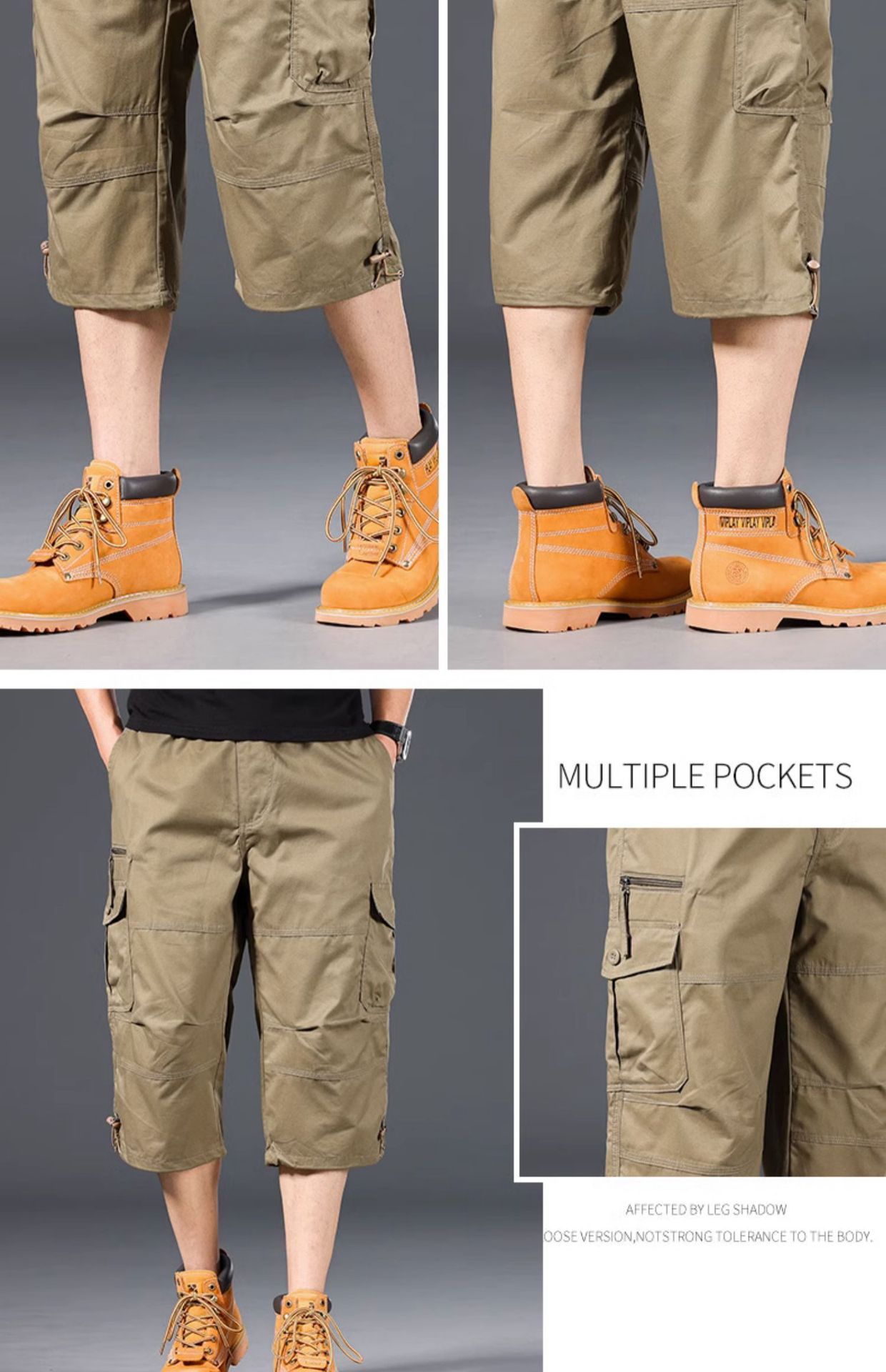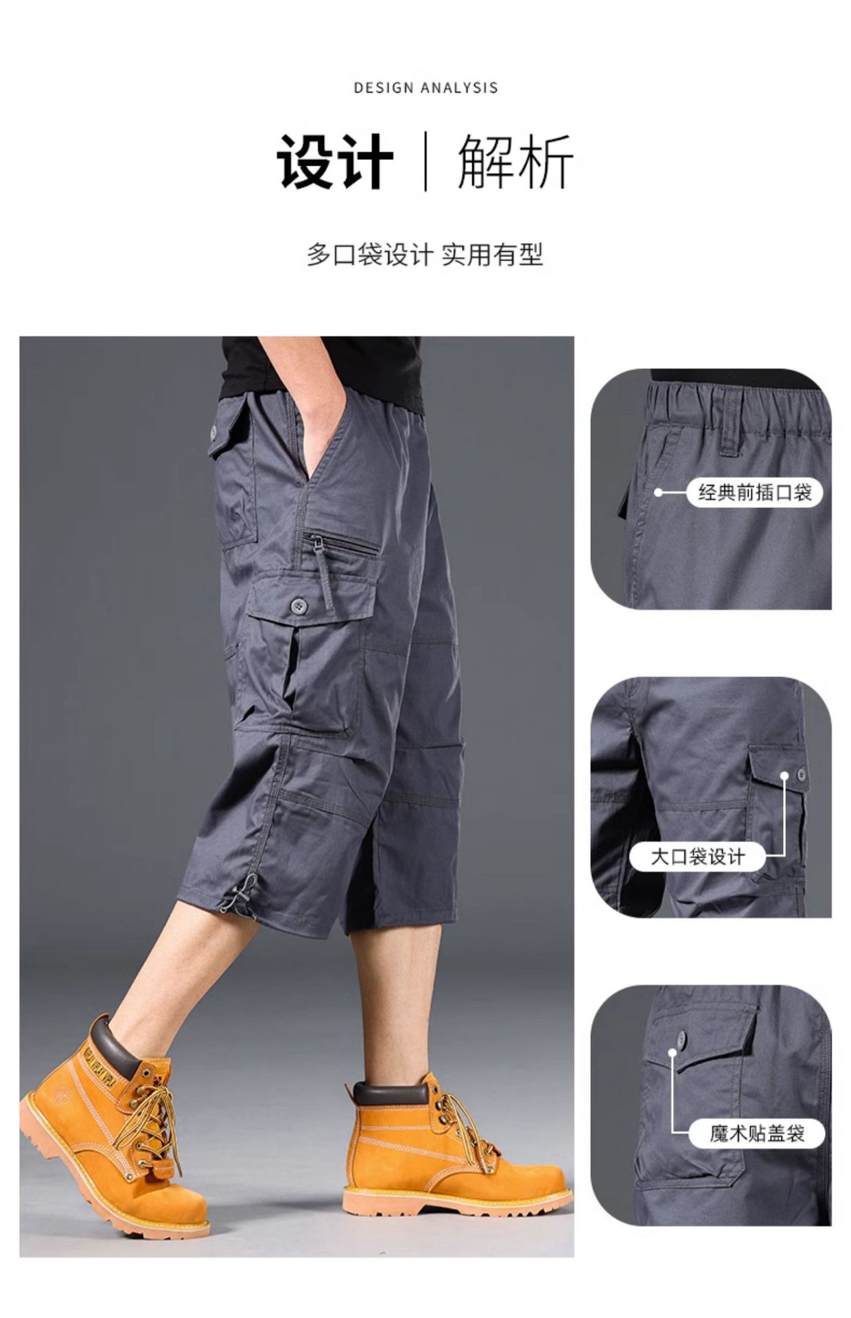 여름 야외 멀티 포켓 툴링 반바지 남자 플러스 사이즈 캐주얼 카프리 바지 순수 코튼 스포츠 바지 얇은스토어 가기