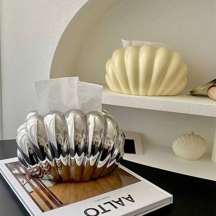 가벼운 럭셔리 Ins 스타일 쉘 모양 세라믹 종이 타월 상자 홈 장식품 거실 커피 테이블 식탁 장식 도매스토어 가기