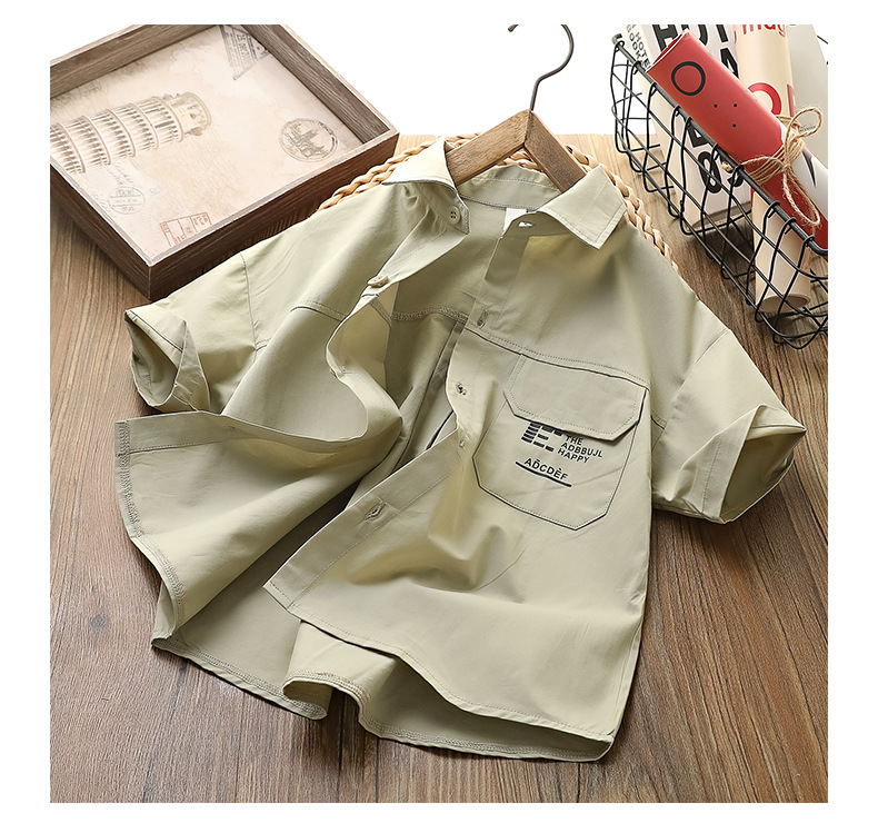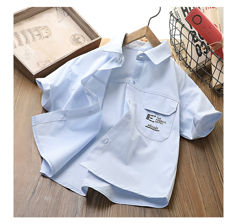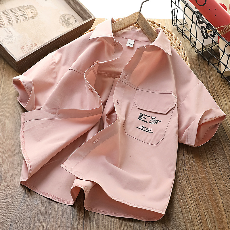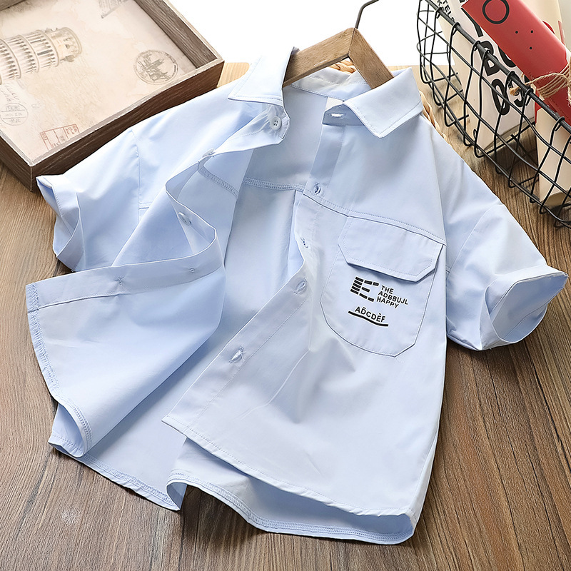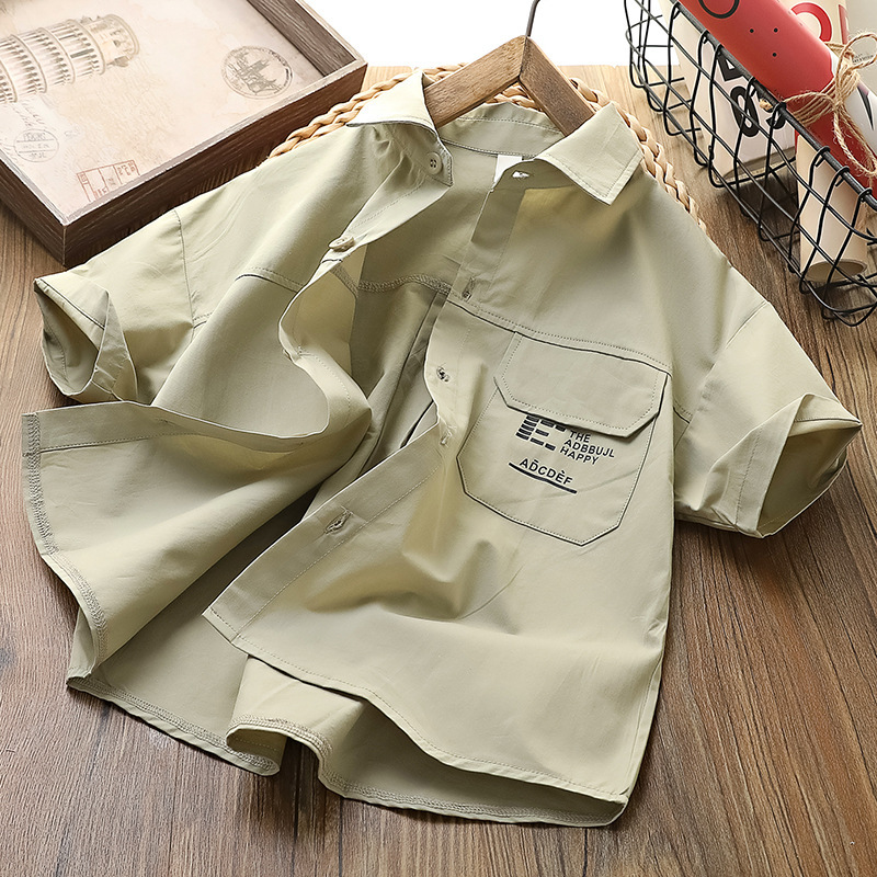 남아용 셔츠, 여름용 중대형 아동용 반팔 티셔츠, 아동용 라펠 셔츠, 남아용 순면 캐주얼 상의, 트렌디한 스타일스토어 가기