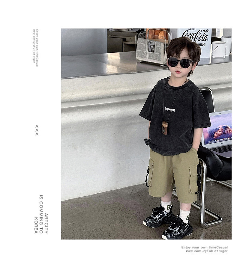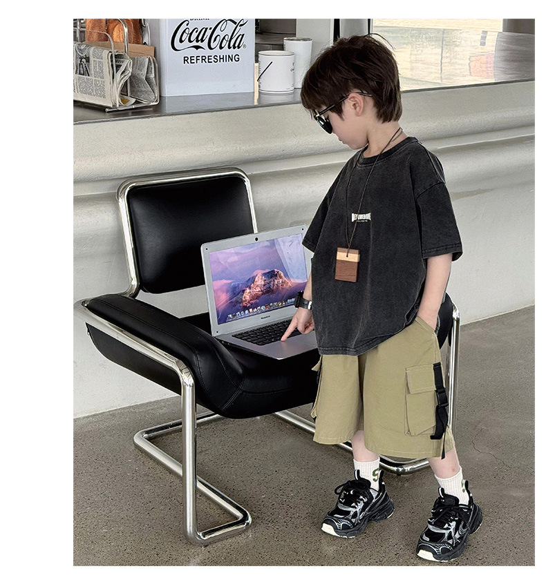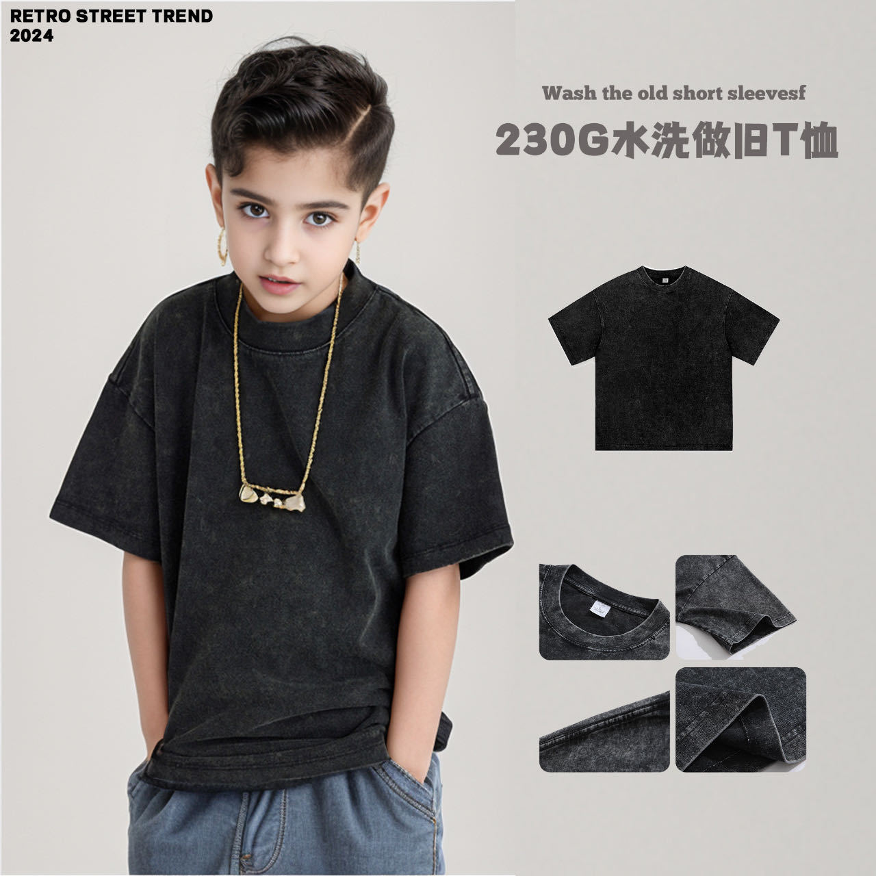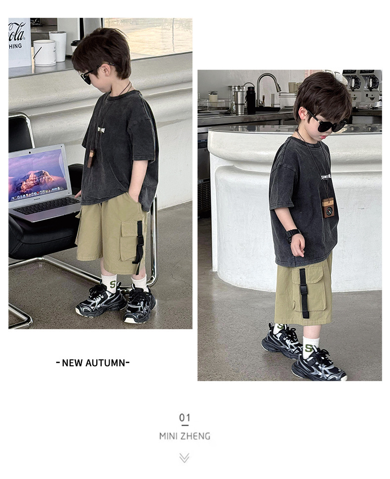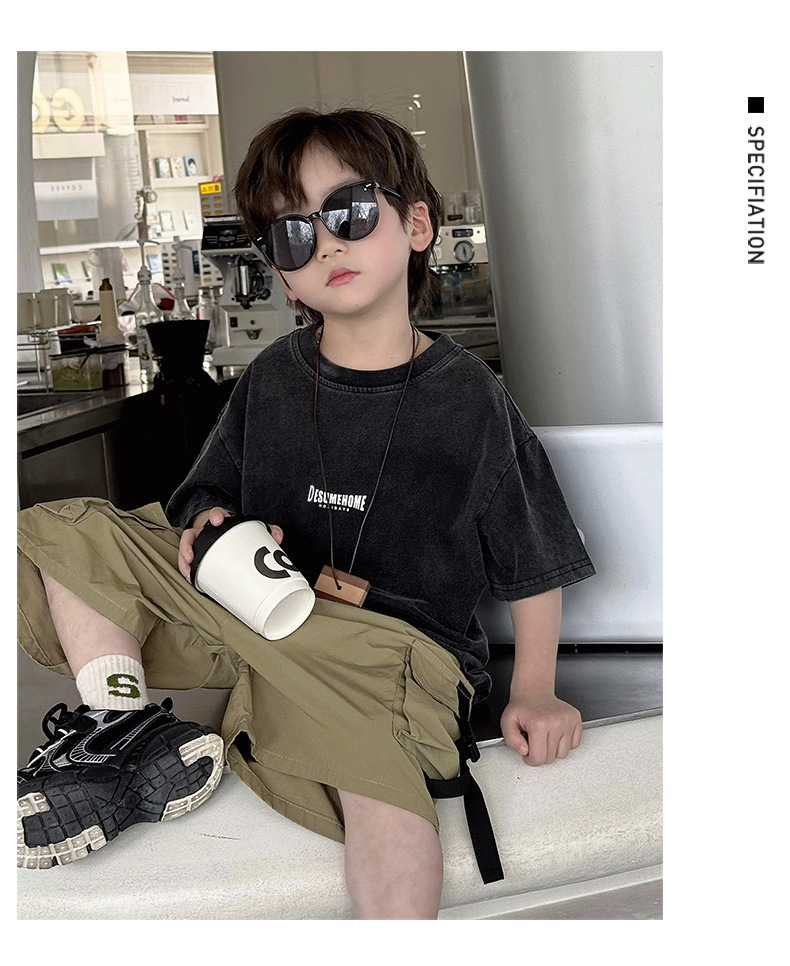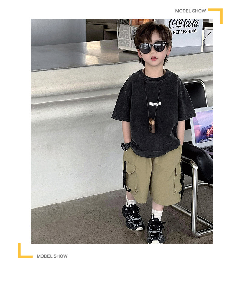 퓨어 코튼 반팔 티셔츠 아메리칸 스타일 레트로 중소 어린이 트렌디 브랜드 반팔 세탁 오래 된 인쇄 로고 탑 트렌디스토어 가기