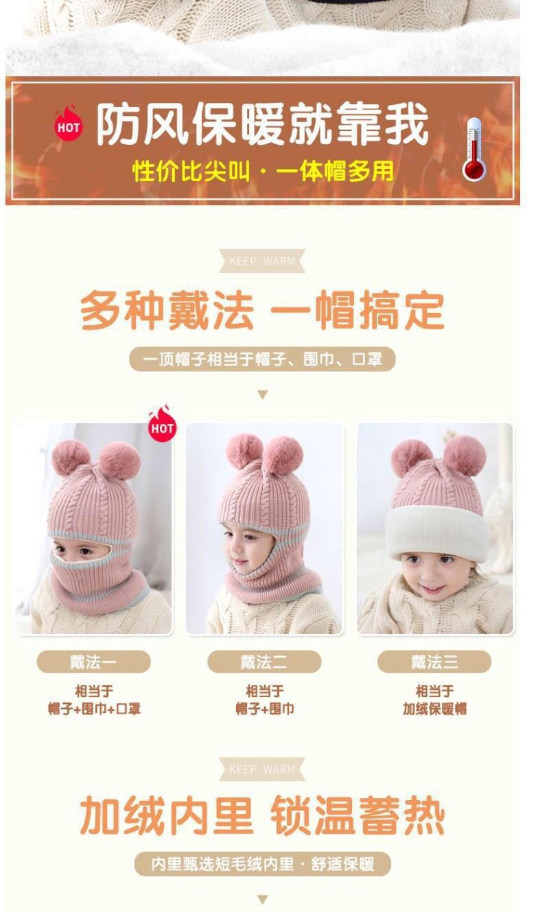 어린이 모자 가을 겨울용 두꺼운 벨벳 보온 모직 모자 남아 여아용 스카프 겨울 니트 모자 상큼하고 사랑스러운 디자인