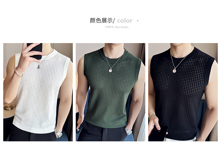 여름 새로운 남성 속이 빈 조끼 한국 민소매 둥근 목 티셔츠 시원한 통기성 고급 메쉬 탄성 티스토어 가기