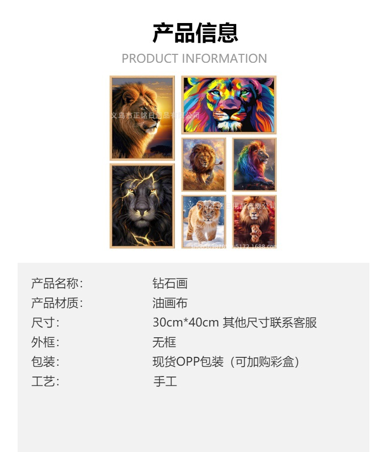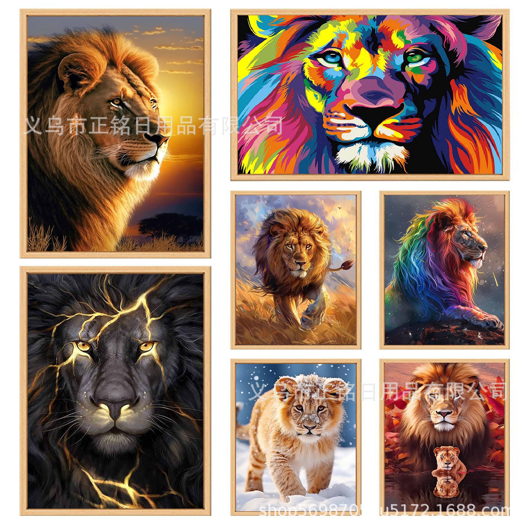 다이아몬드 동물 diy 다이아몬드 장식품으로 가득 찬 사자 다이아몬드 그림 거실 침실 장식 그림 크로스 테두리 제조 업체 도매스토어 가기