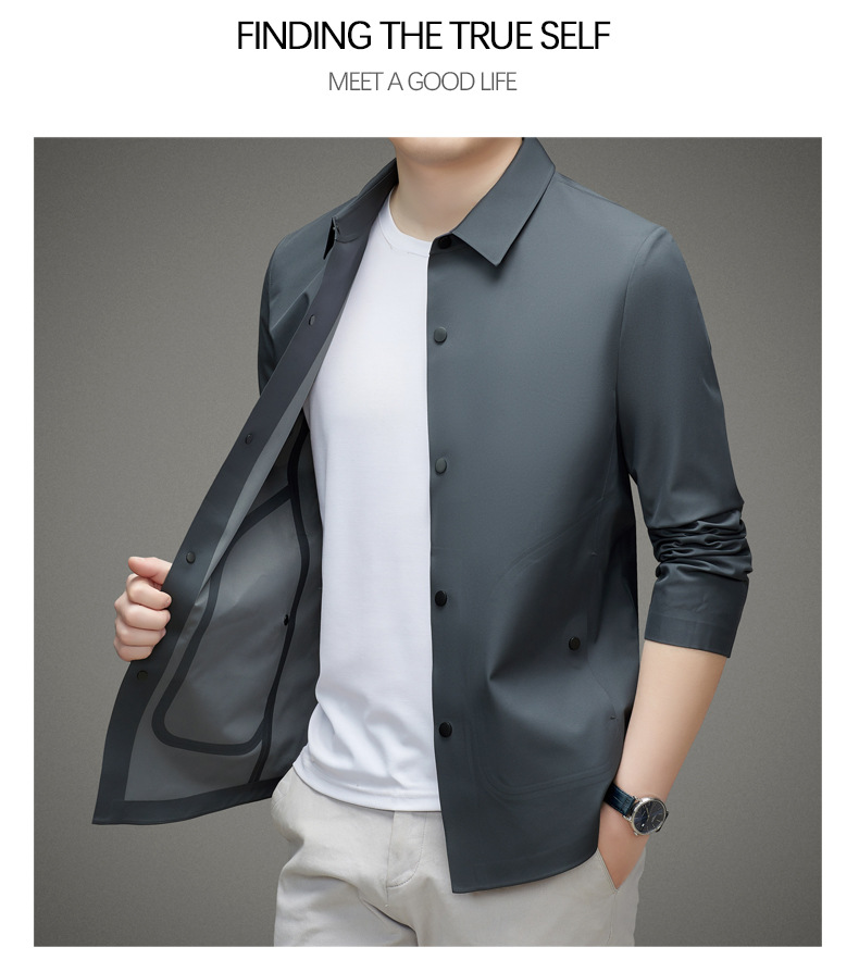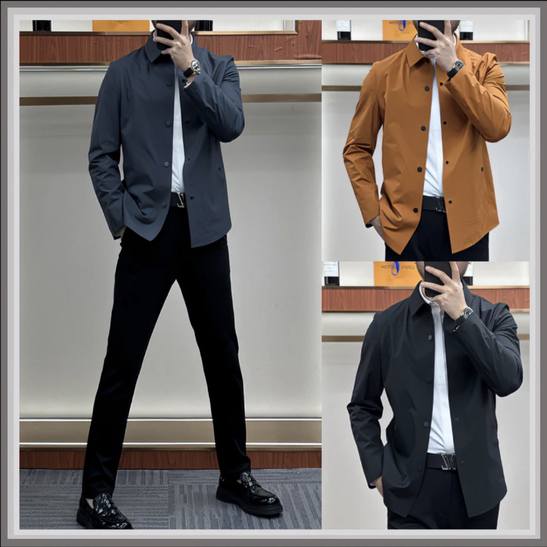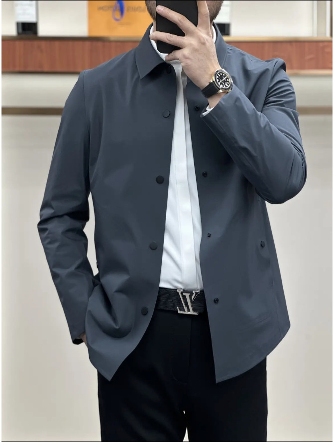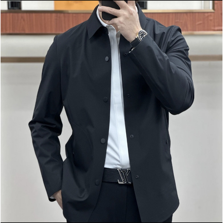 【】남성용 윈드브레이커 재킷 2025 봄 단색 코트 로고 없음 비즈니스 캐주얼 라펠 크로스보더 다용도 봄