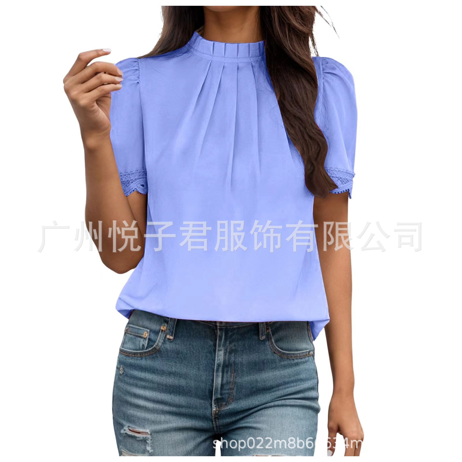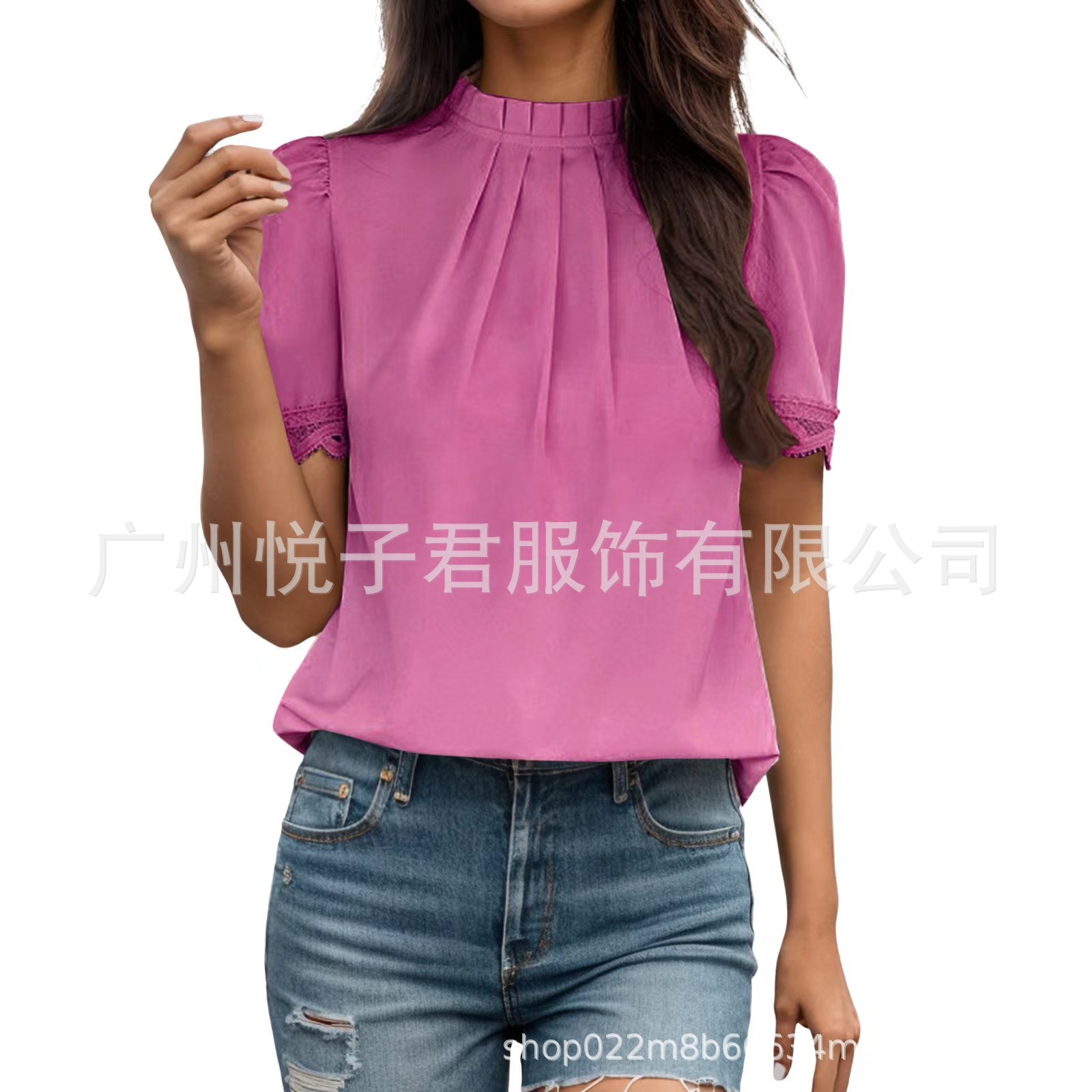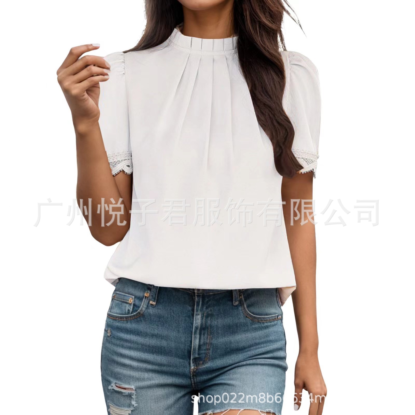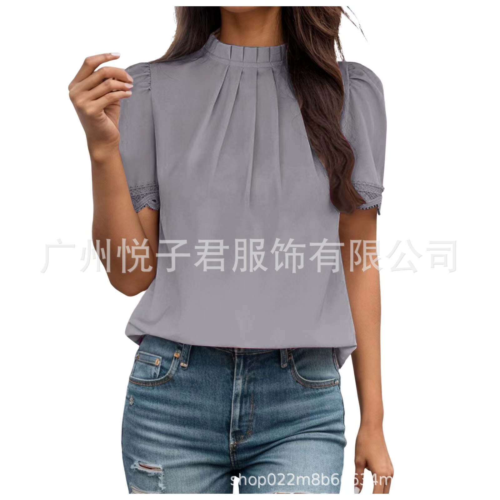 9 색 4 크기 숙녀 패션 단색 우아한 캐주얼 느슨한 레이스 짧은 소매 티셔츠 탑