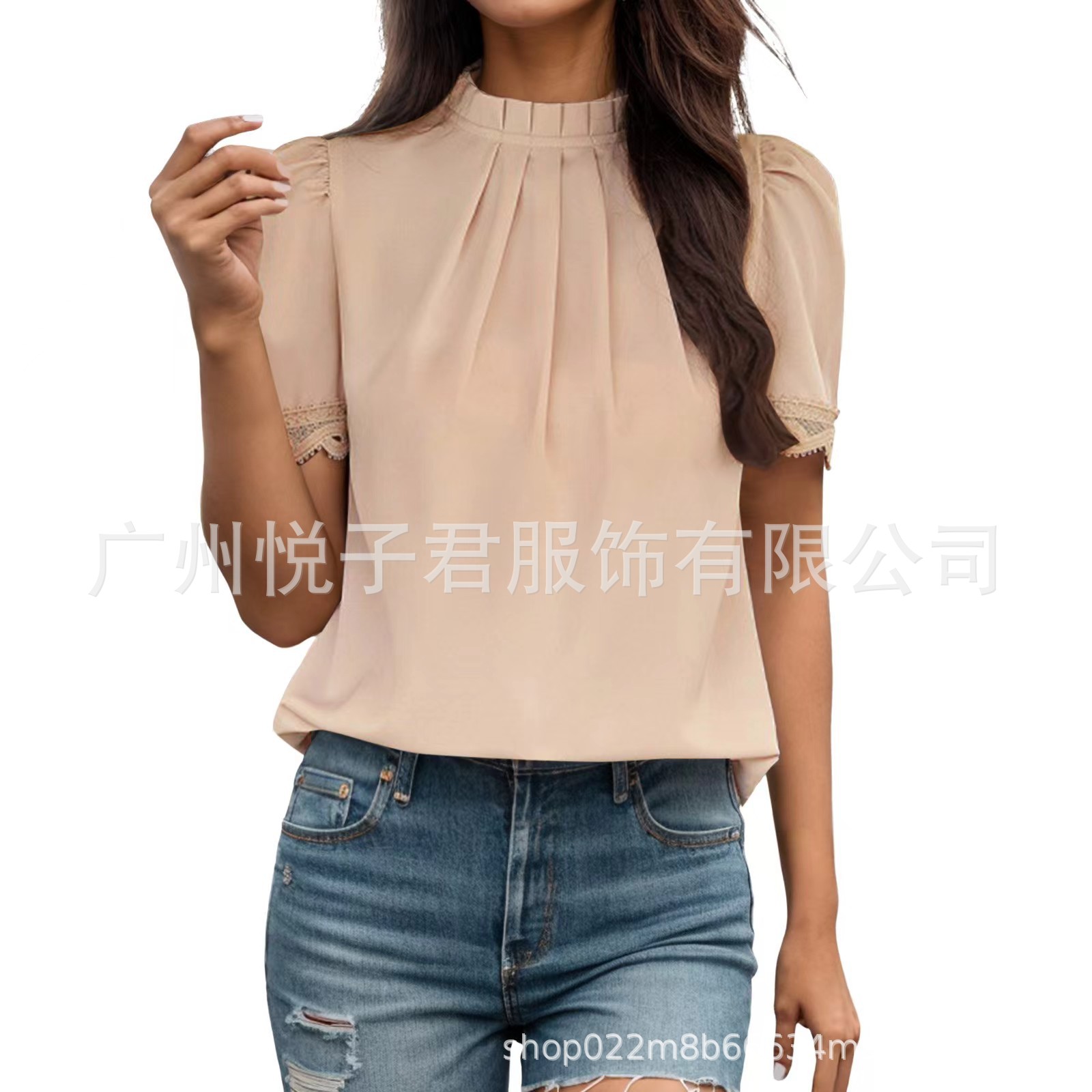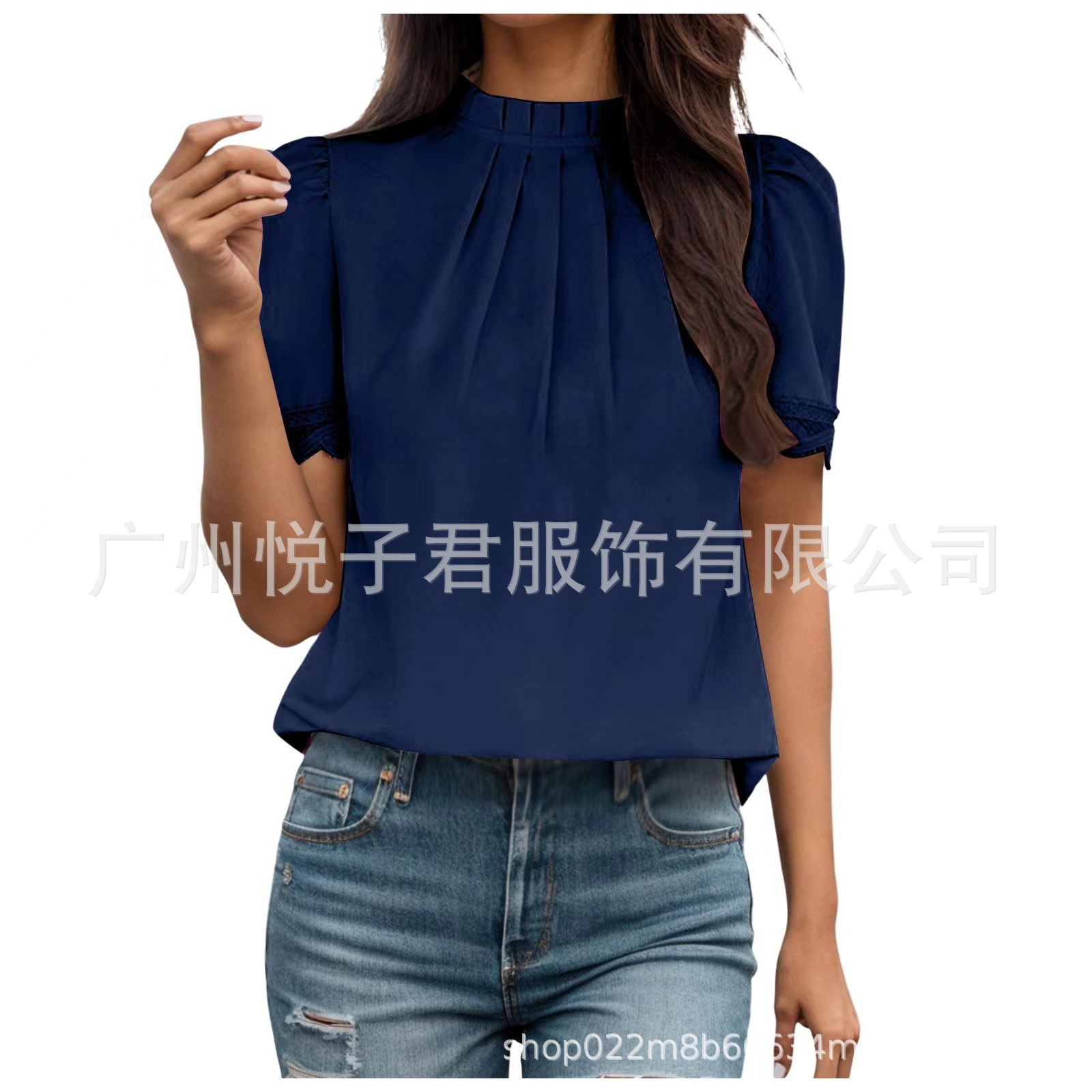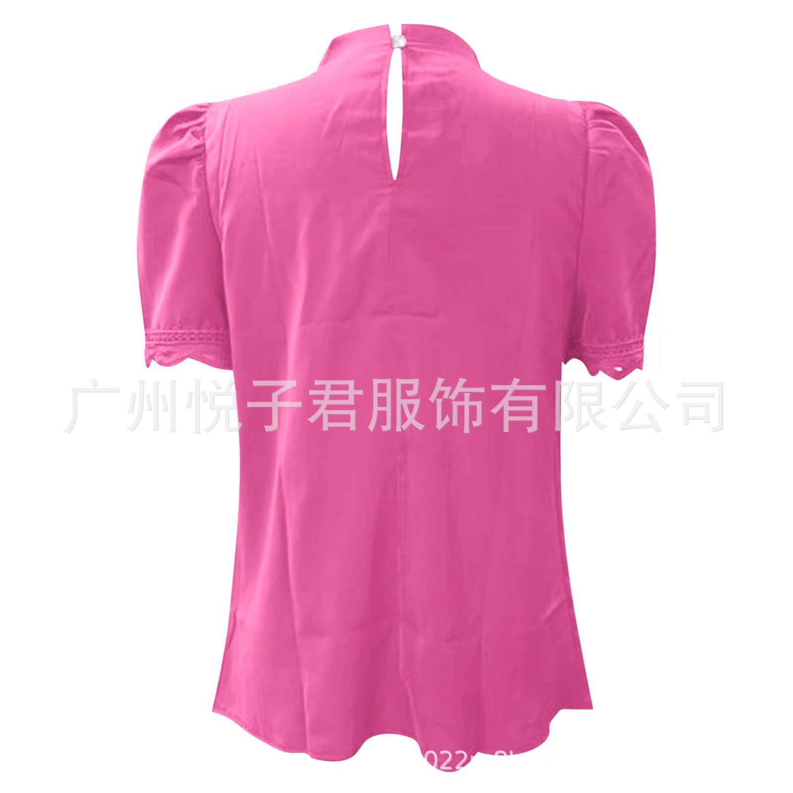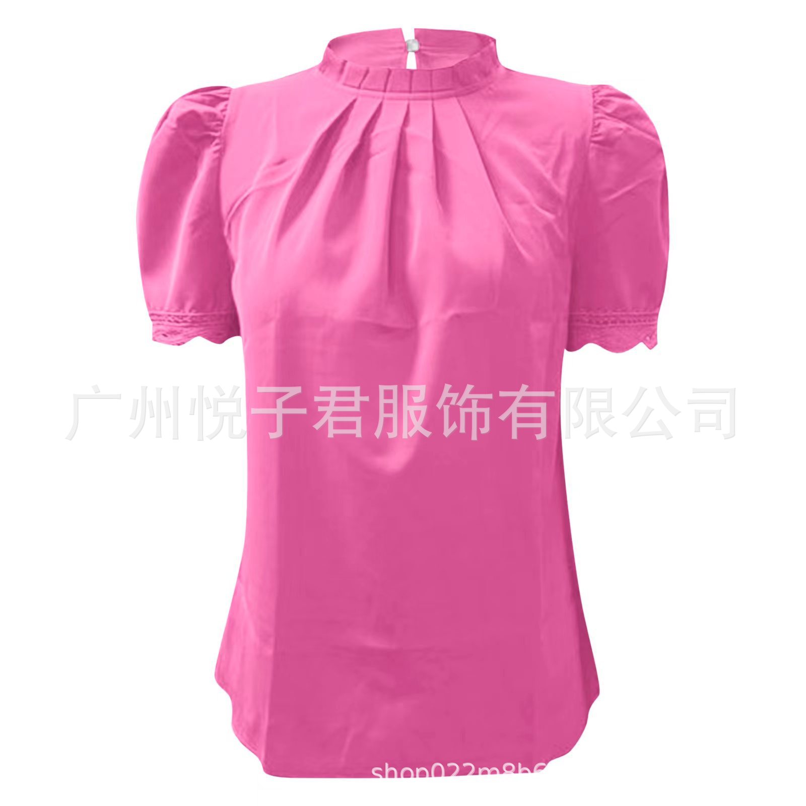 9 색 4 크기 숙녀 패션 단색 우아한 캐주얼 느슨한 레이스 짧은 소매 티셔츠 탑