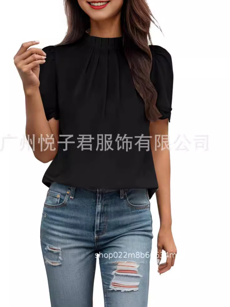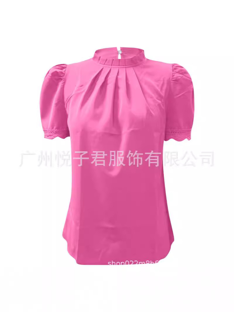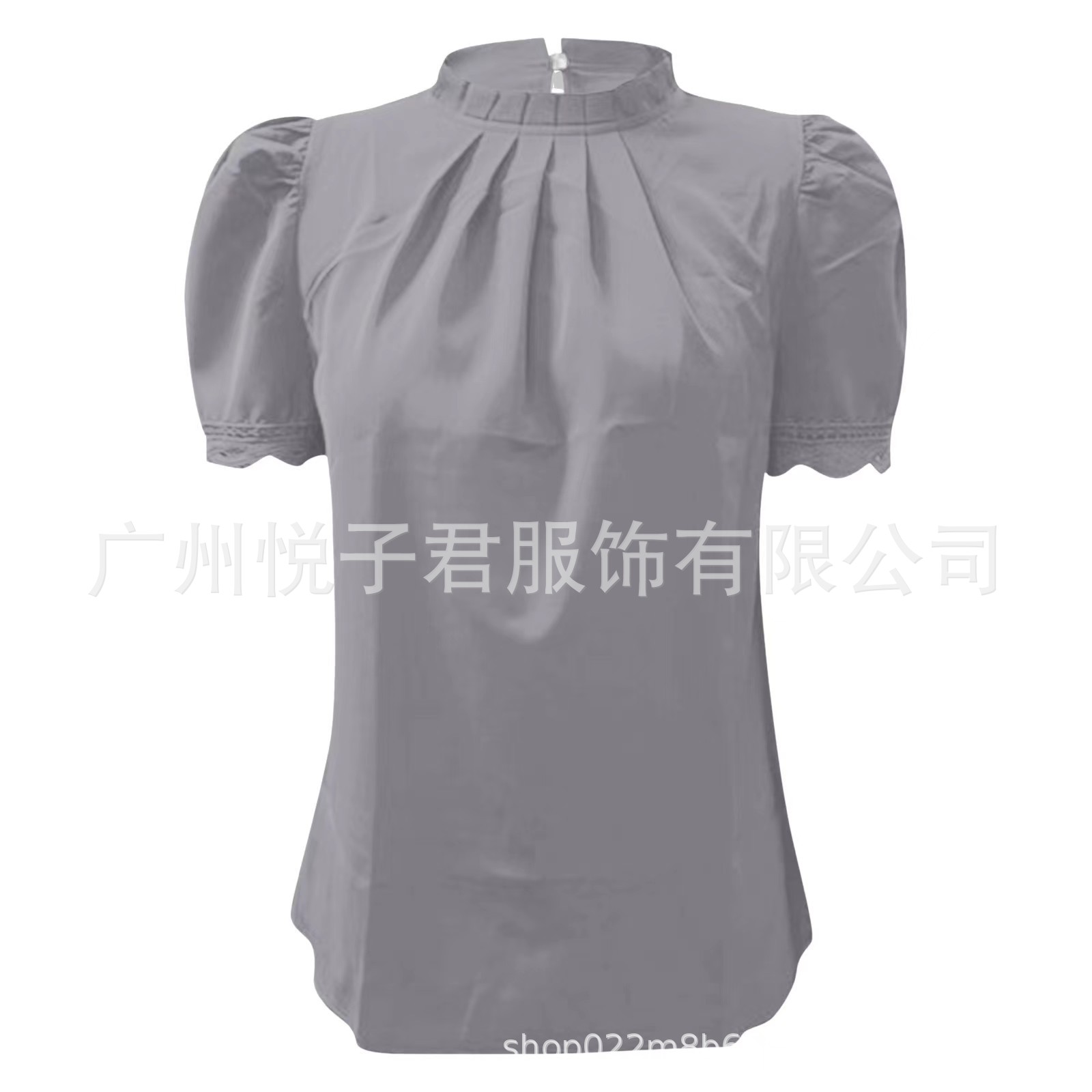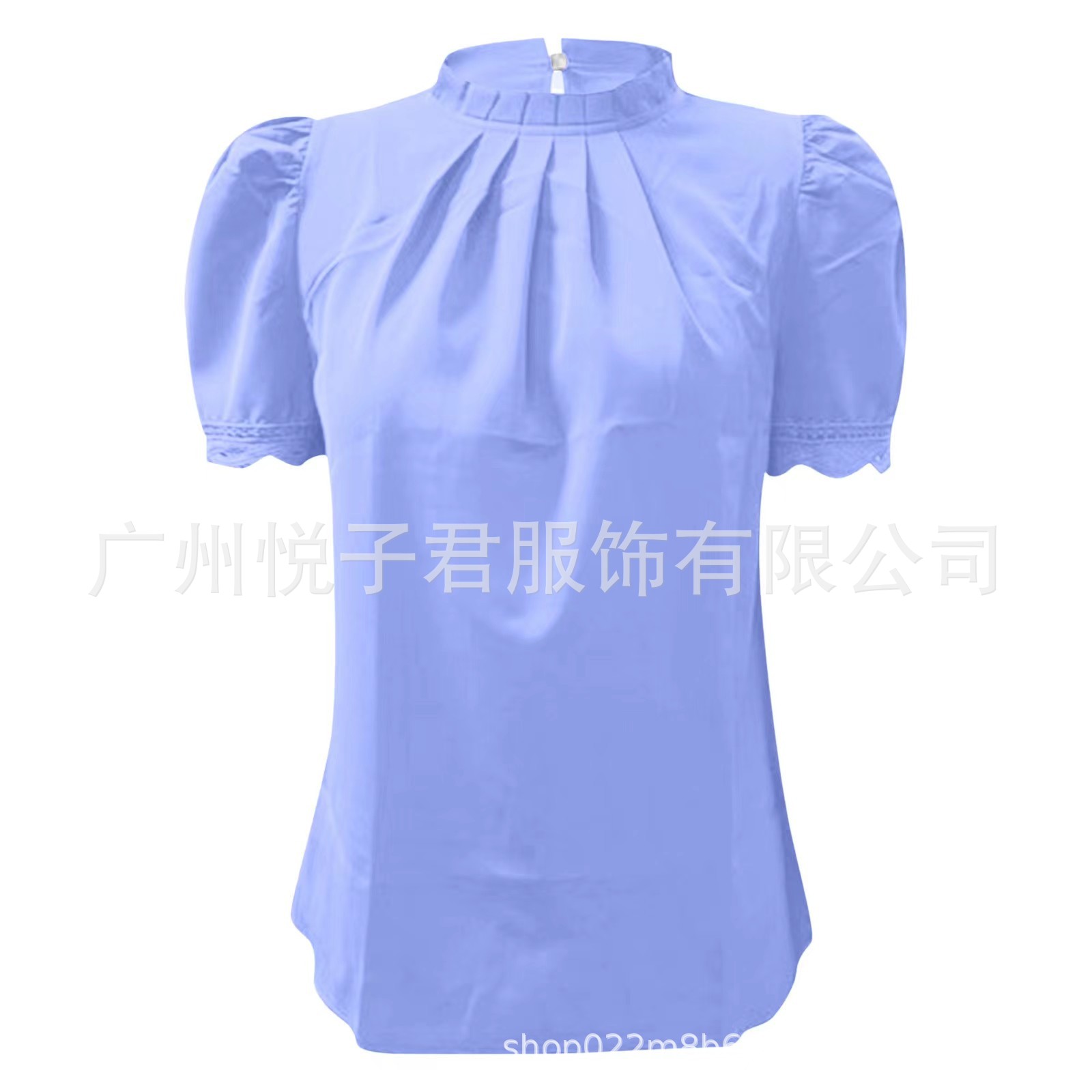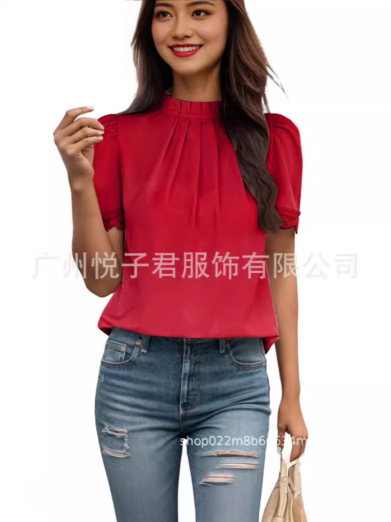 9 색 4 크기 숙녀 패션 단색 우아한 캐주얼 느슨한 레이스 짧은 소매 티셔츠 탑