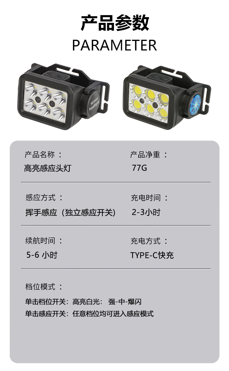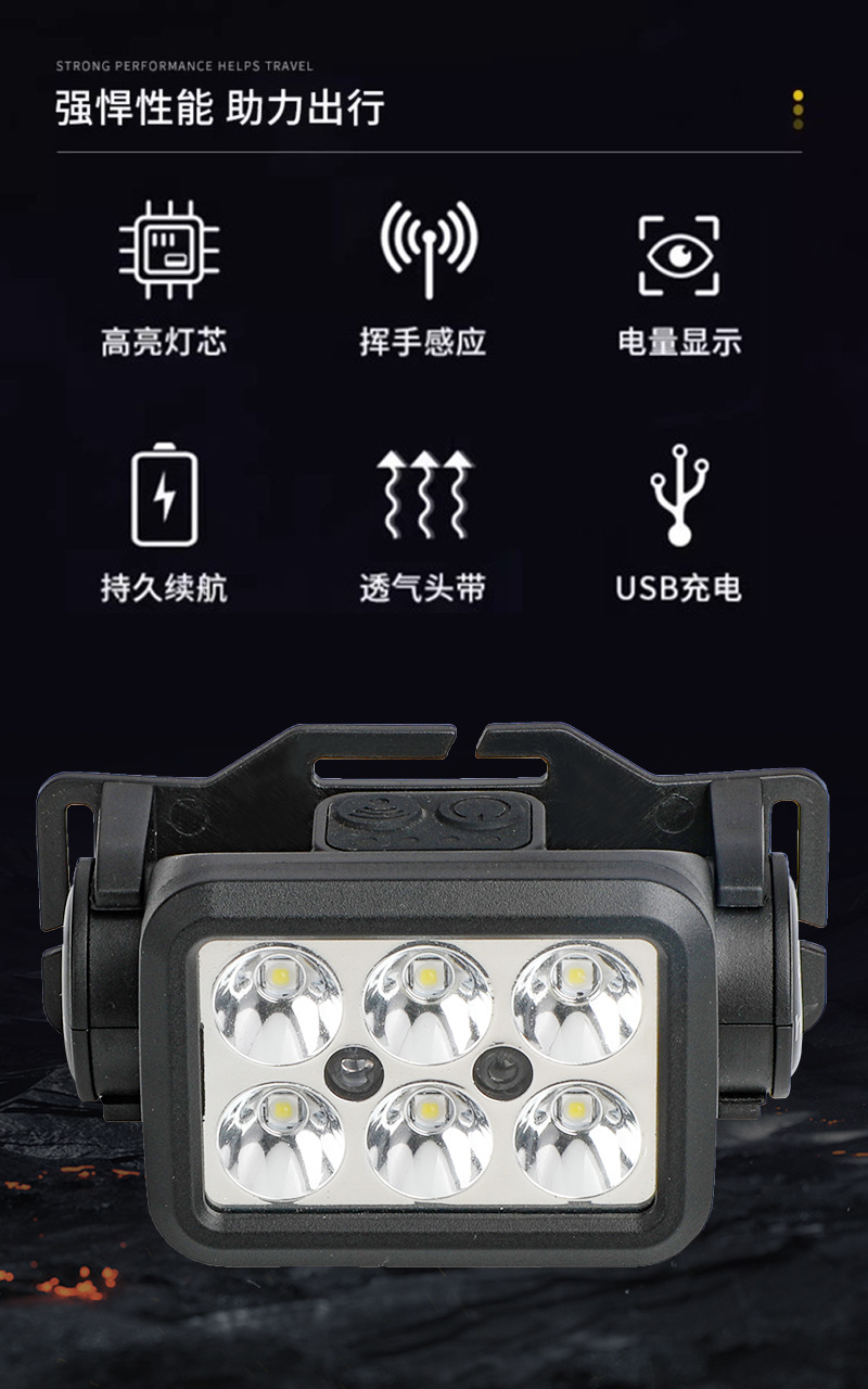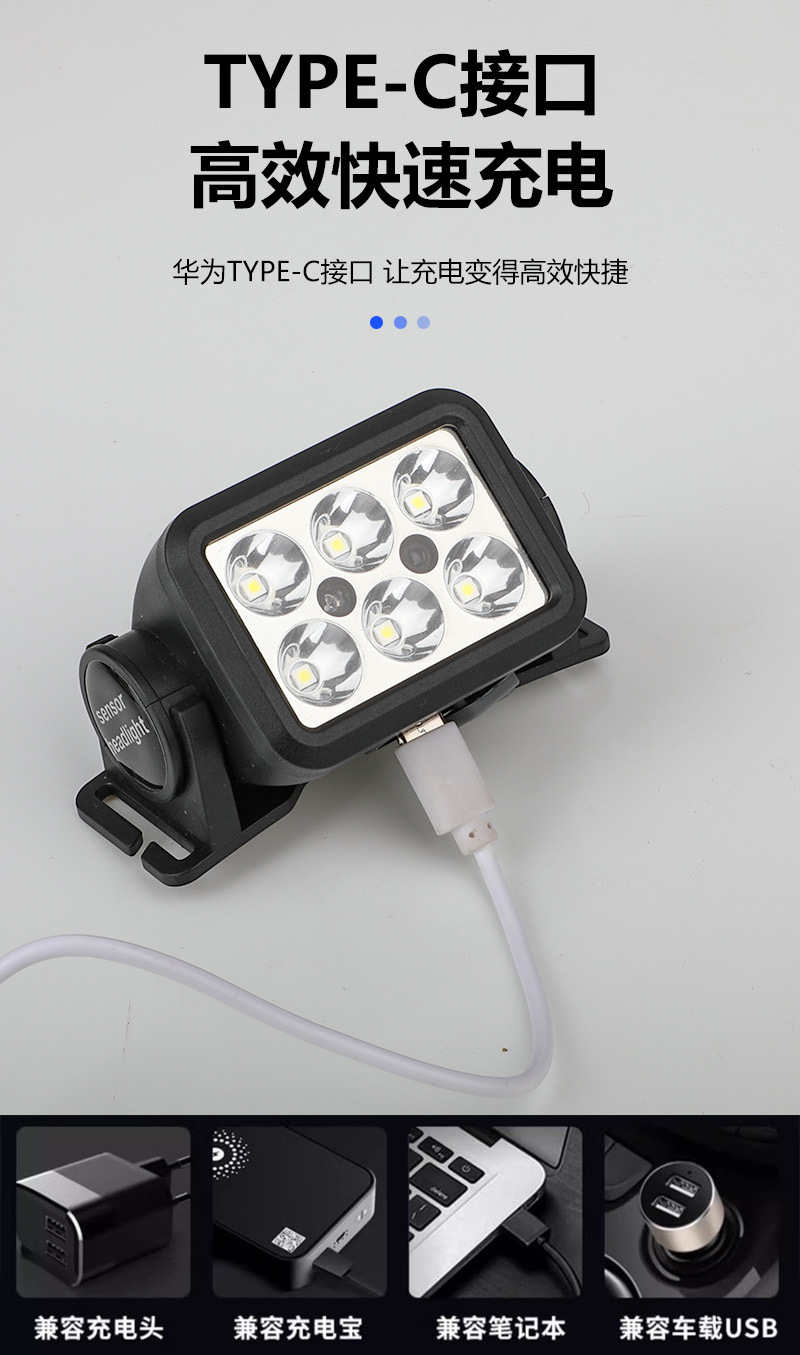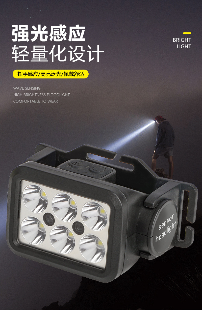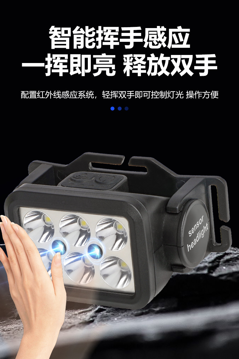 장거리 고광파 유도 헤드 라이트 조명 낚시 충전식 LED 헤드 장착 헤드 라이트