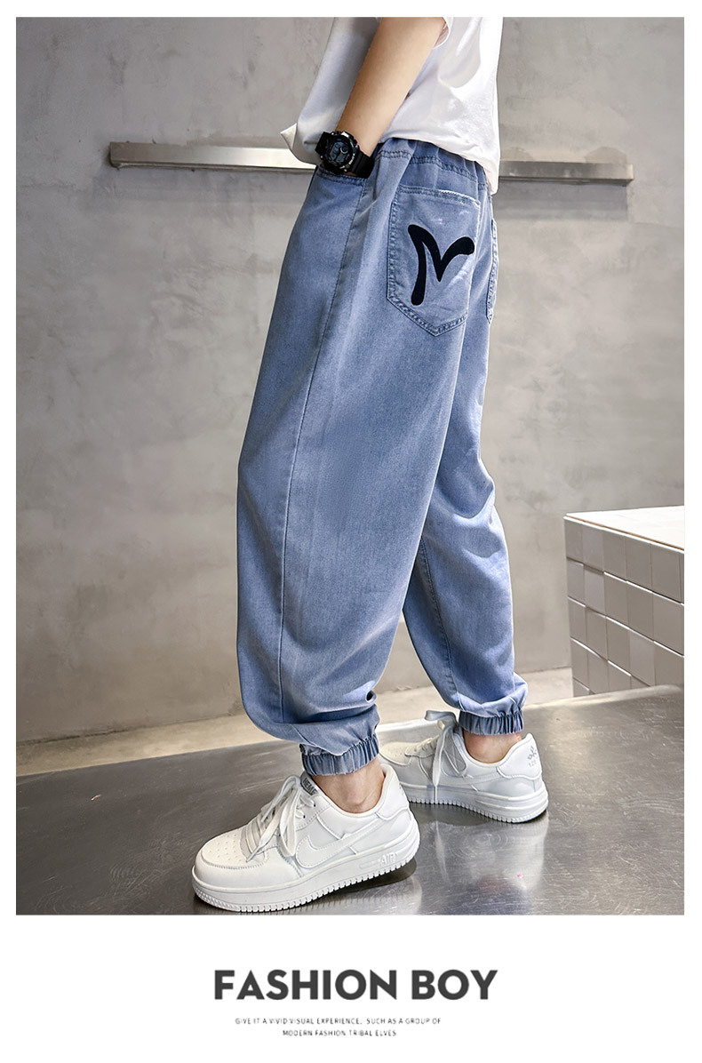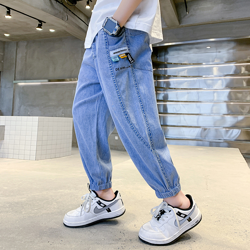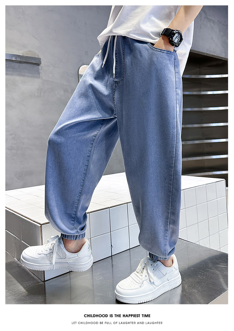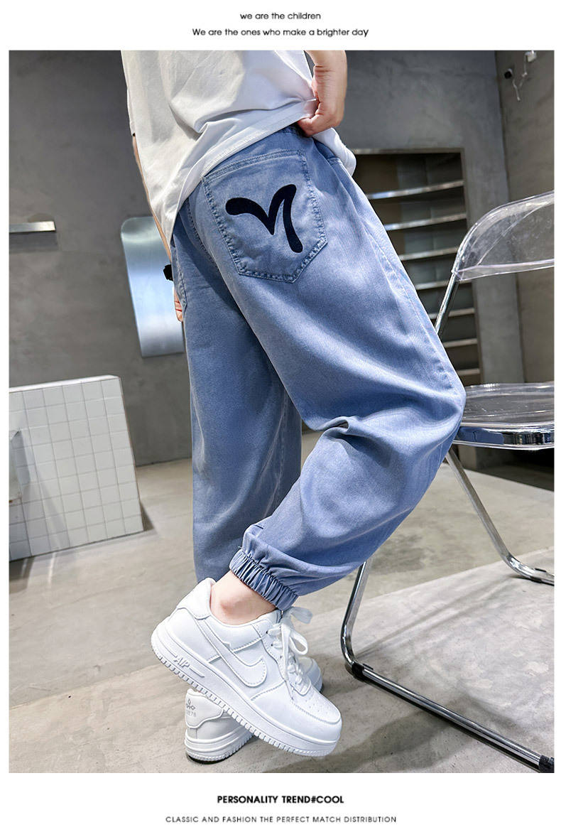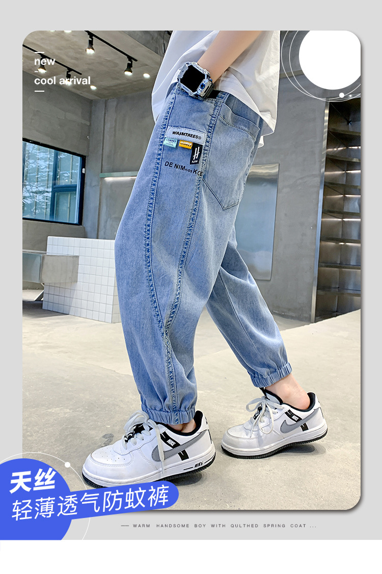 소년 여름 텐셀 청바지 2025 새로운 어린이 다목적 캐주얼 잘 생긴 소년 느슨한 여름 모기 방지 바지스토어 가기