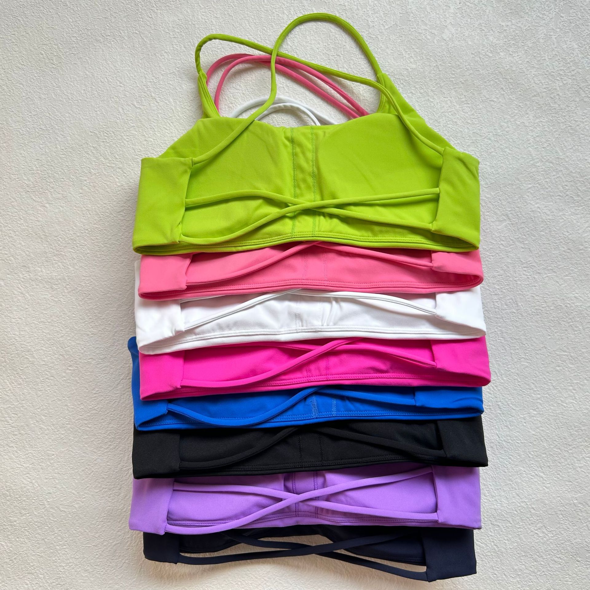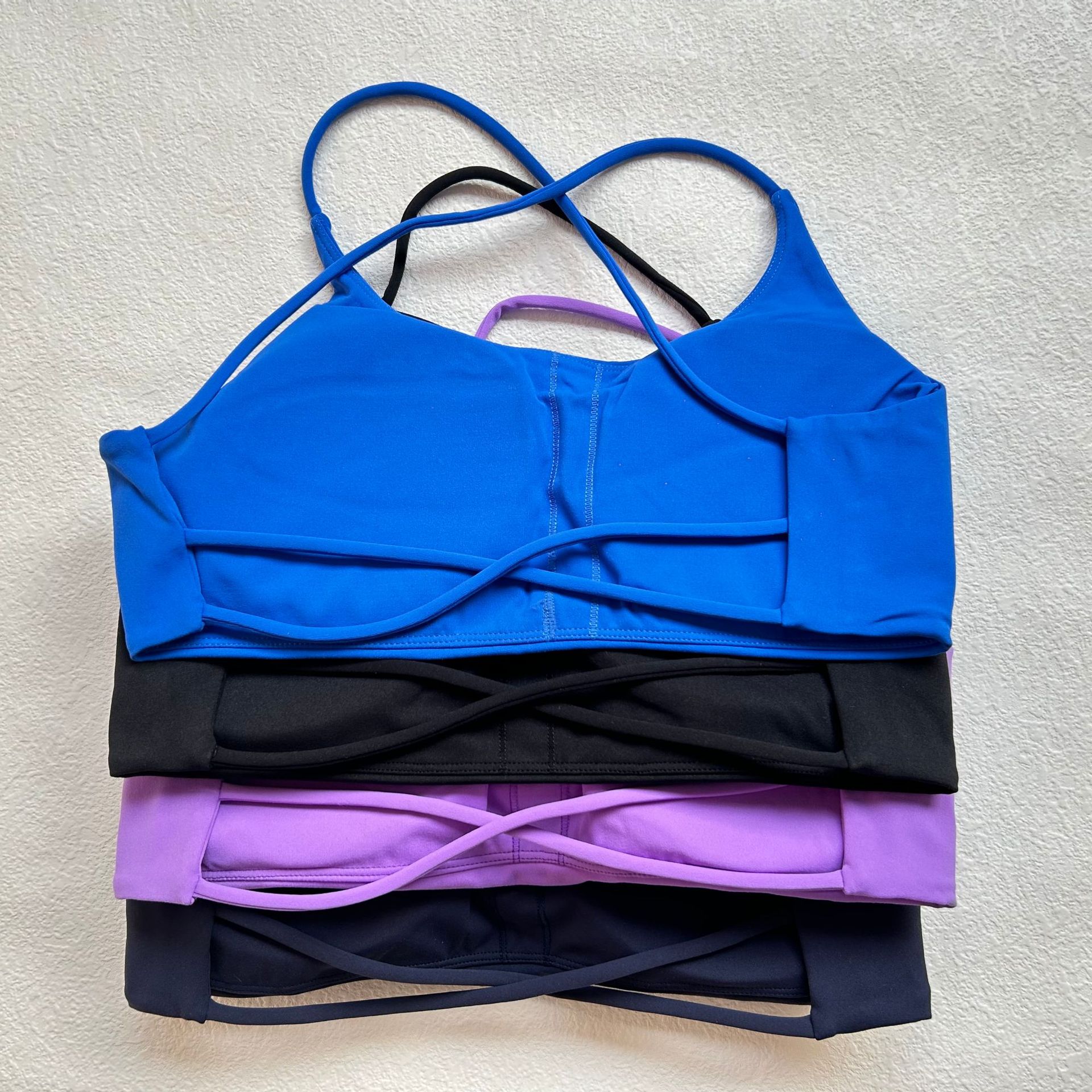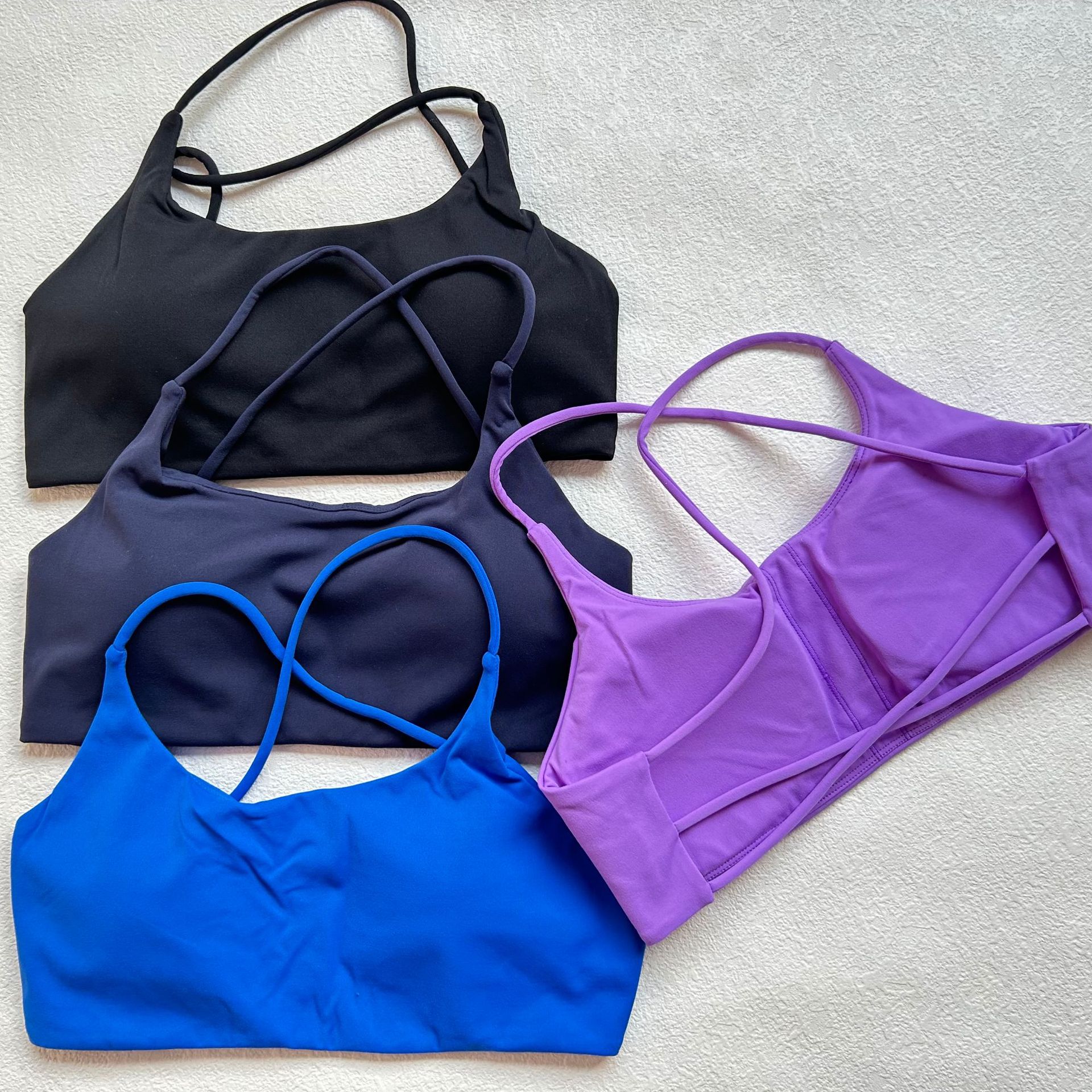 LULU 같은 스타일 알몸 피트니스 브래지어 얇은 어깨 스트랩 크로스 할로우 스포츠 속옷 요가 착용 여성용 탑