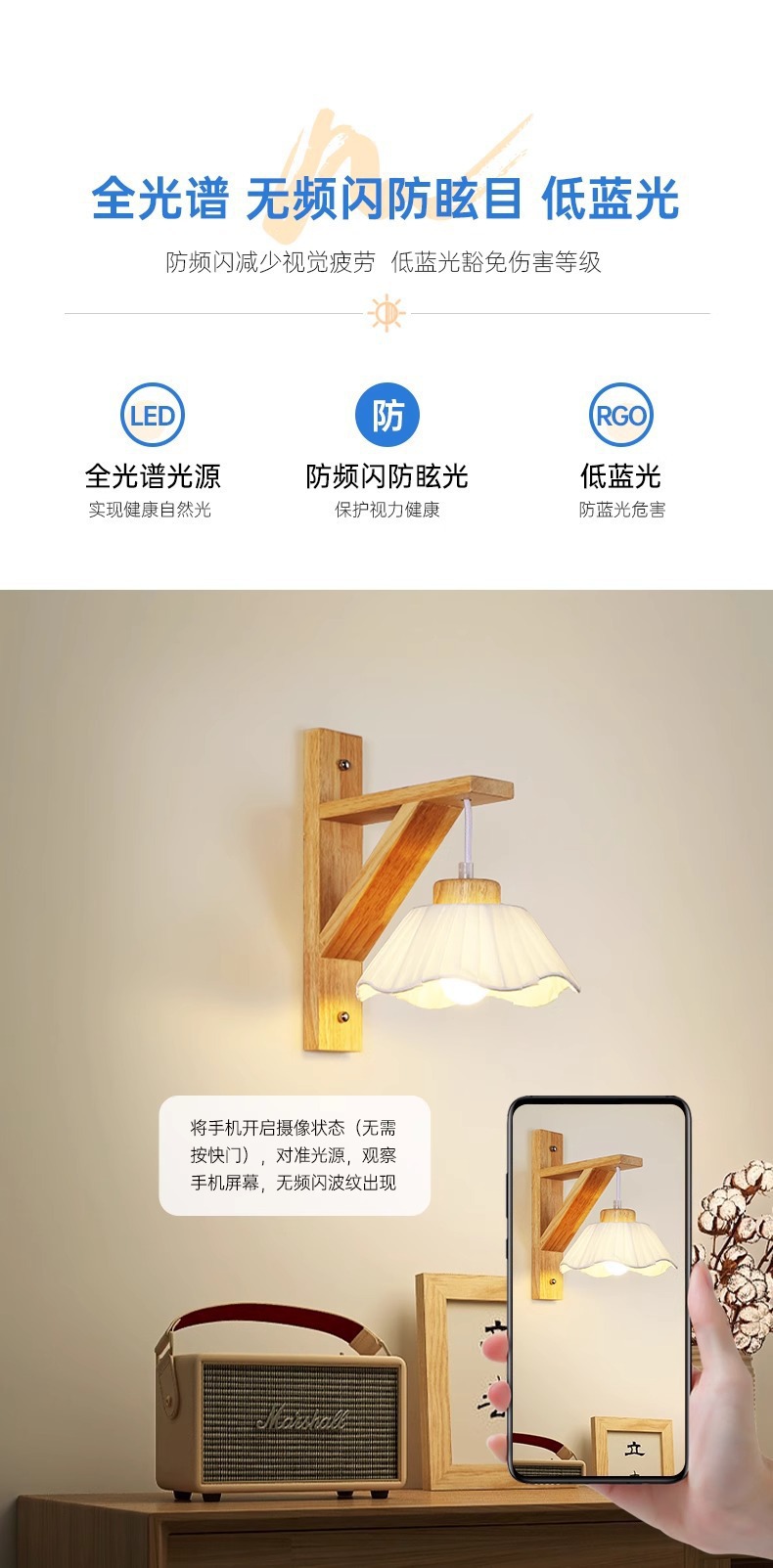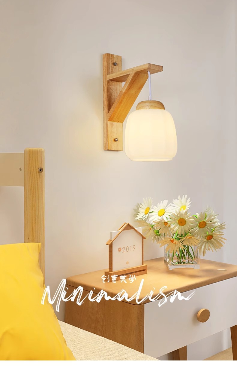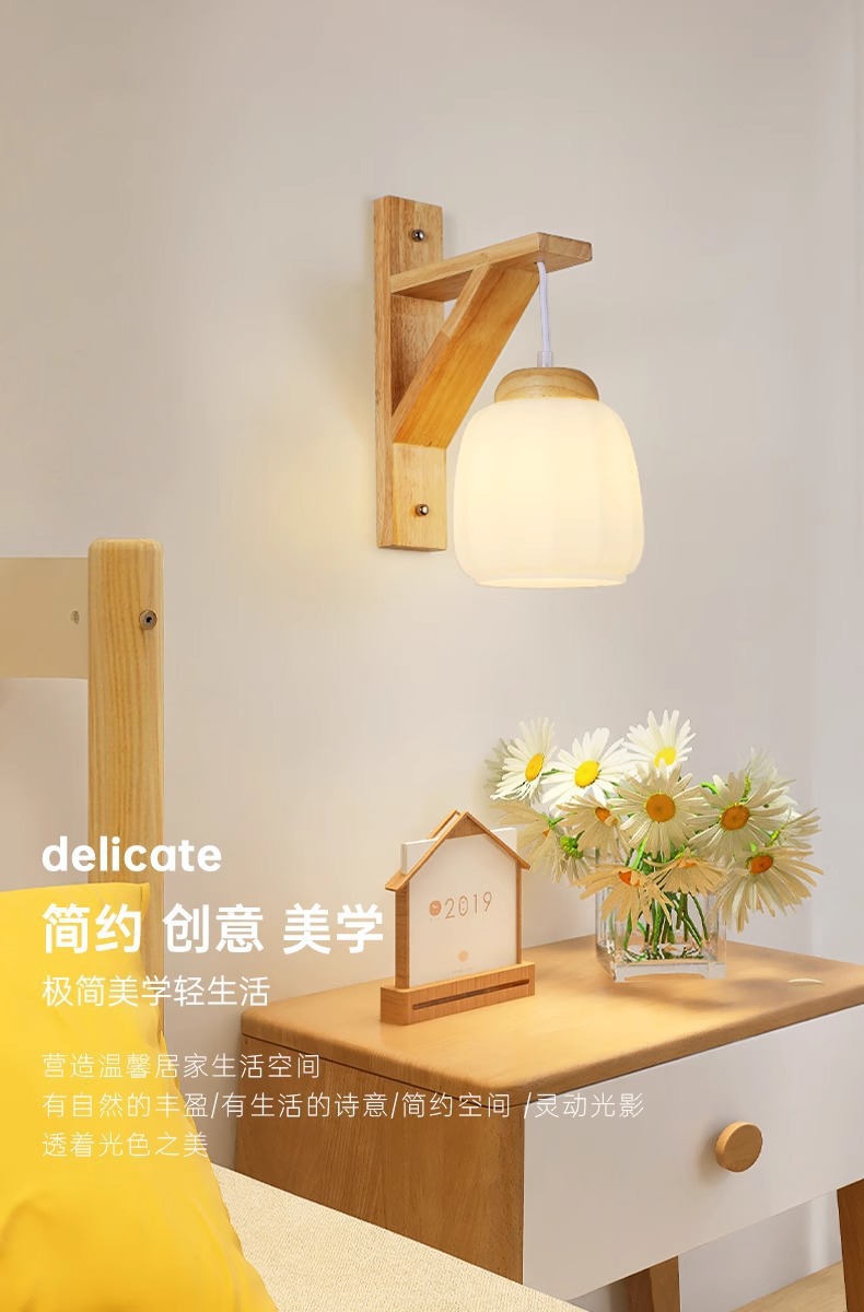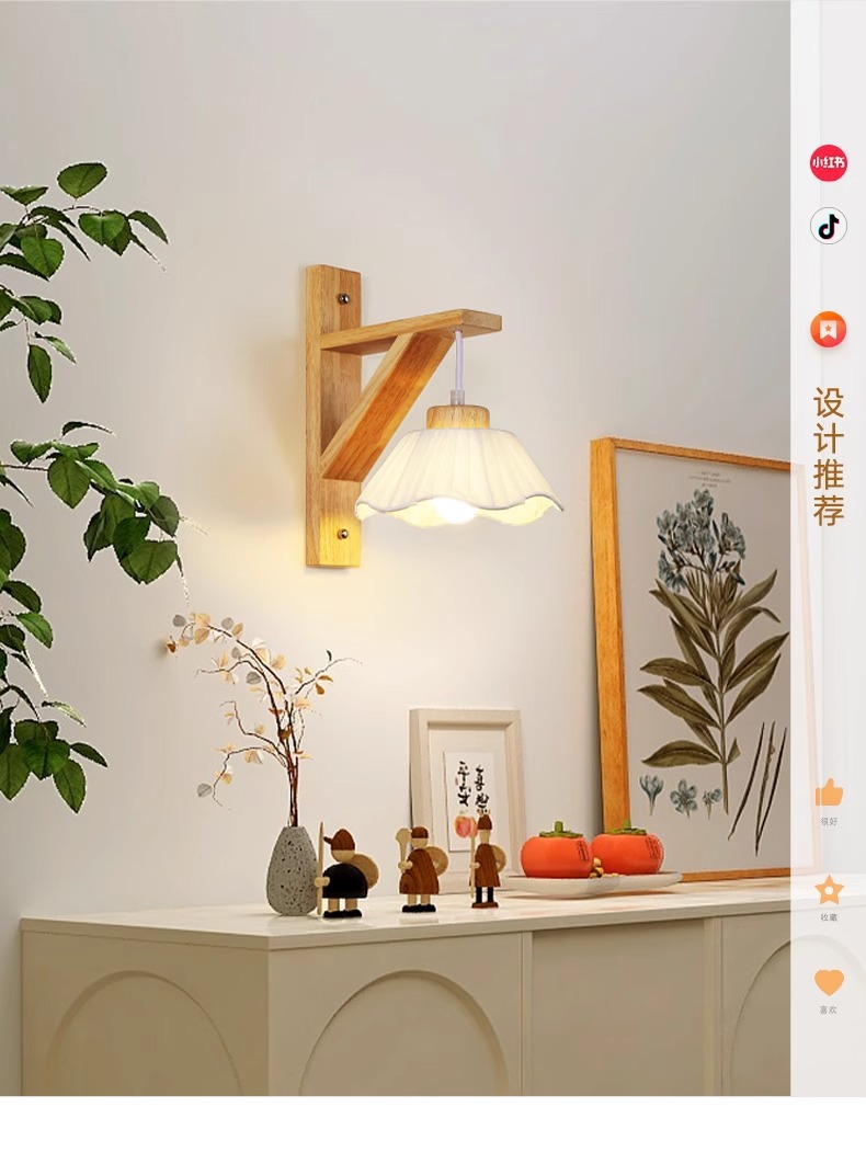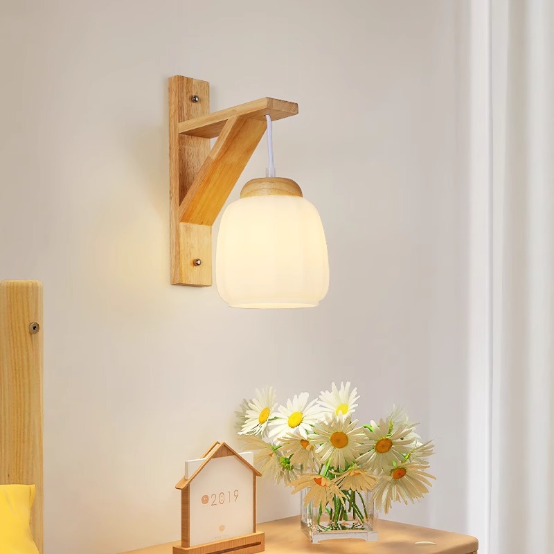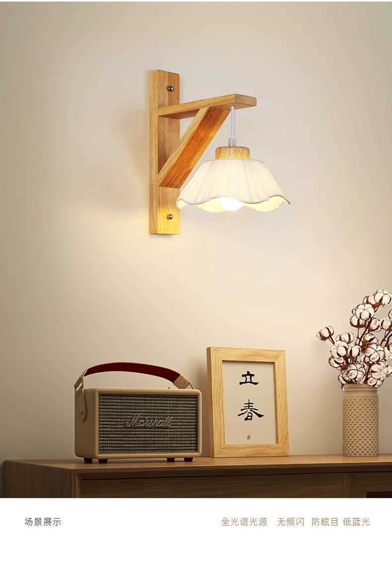 벽 램프 일본 스타일 침묵 바람 침실 램프 북유럽 통나무 바람 거실 통로 발코니 배경 벽 장식 램프스토어 가기