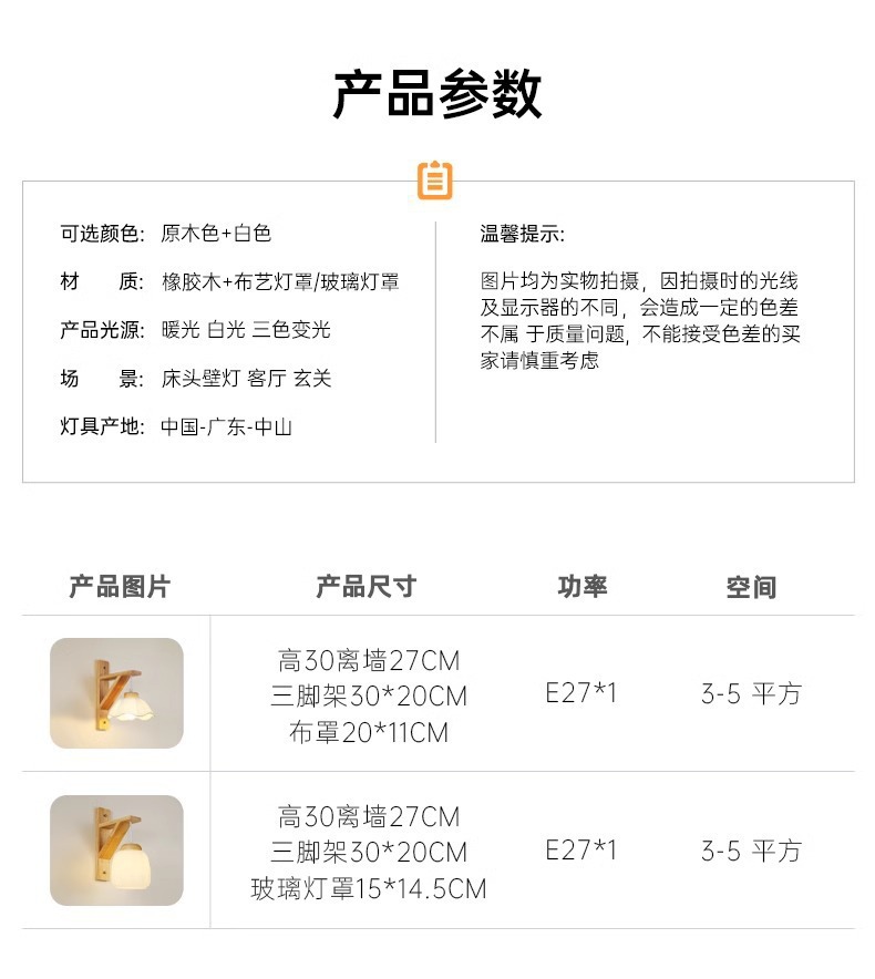 • A형 원목 벽등(패브릭 전등갓)