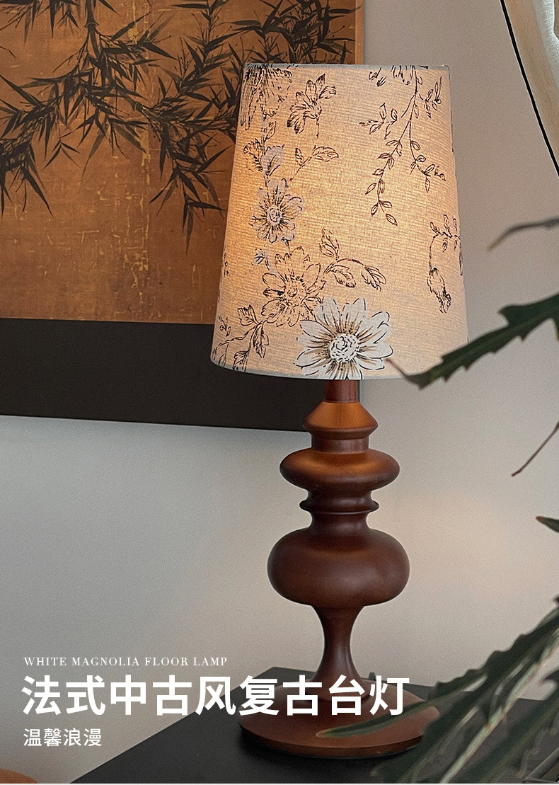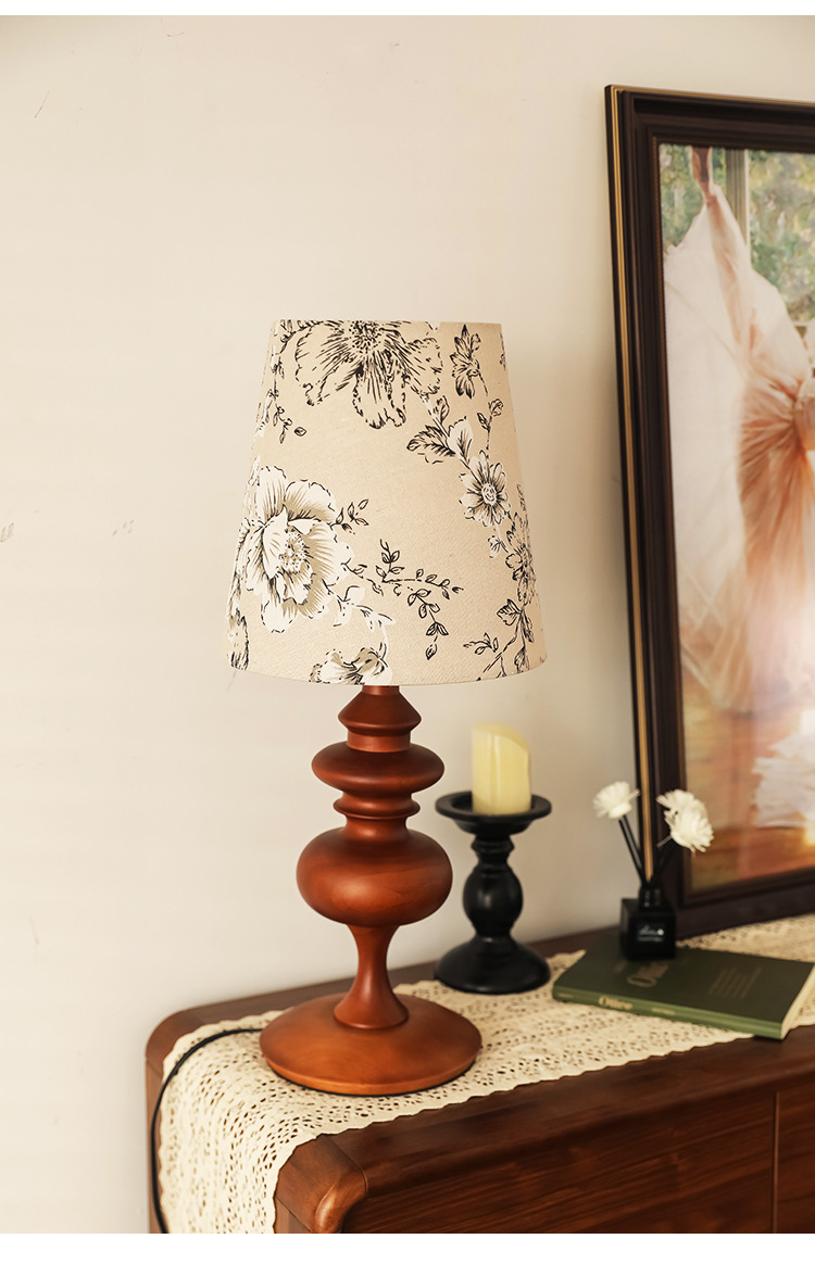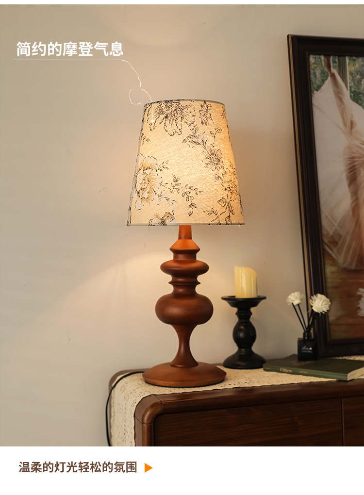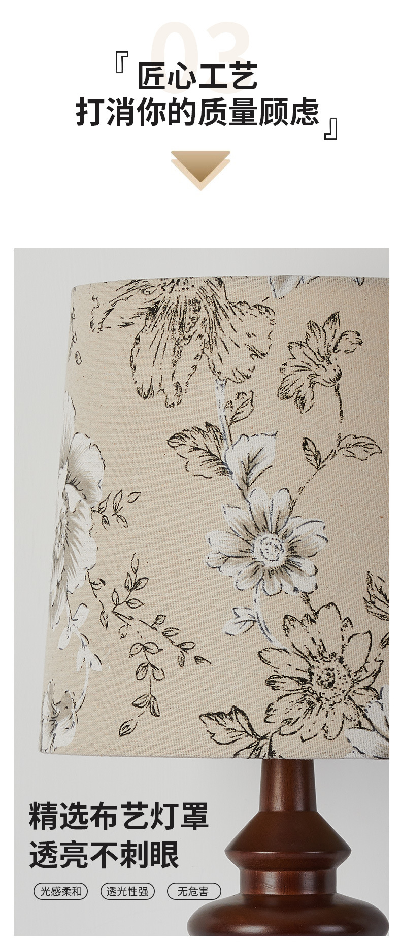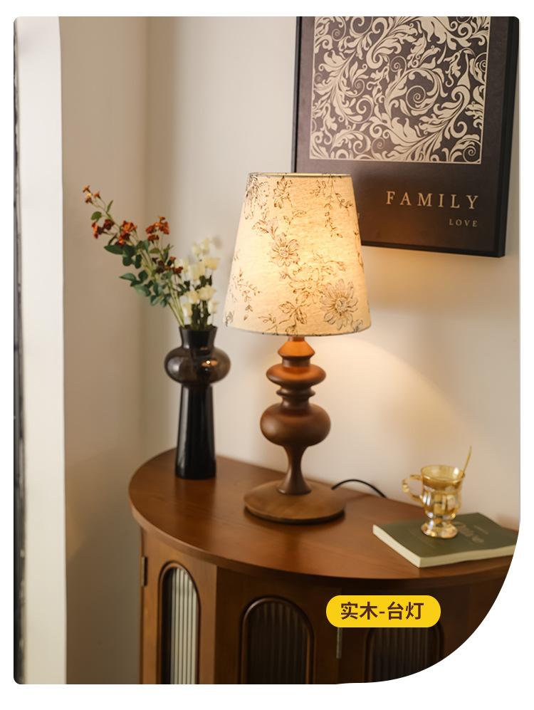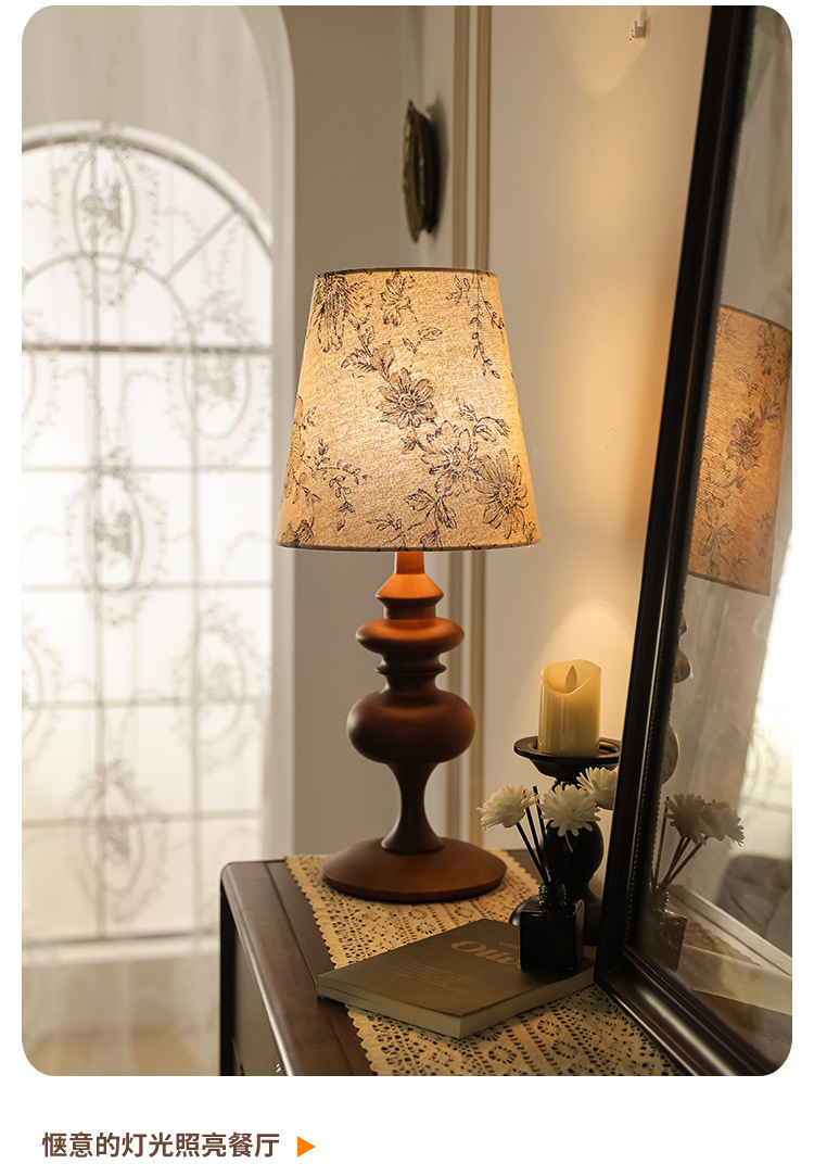 프랑스 레트로 패브릭 테이블 램프 침대 옆 하이 엔드 센스 인스 타 그램 스타일 빛 럭셔리 중동 고대 침실 솔리드 우드 장식 분위기 테이블 램프스토어 가기