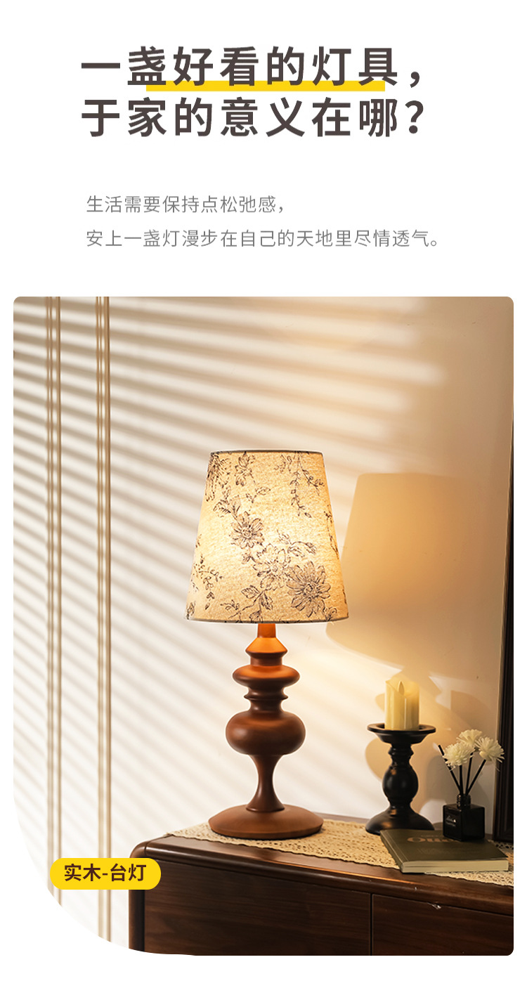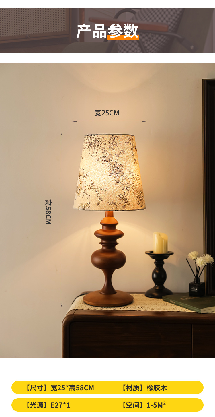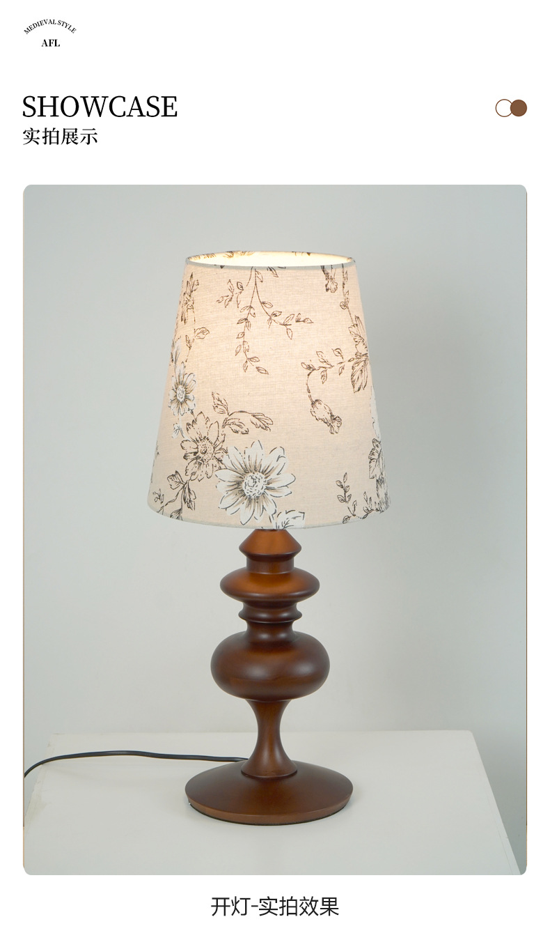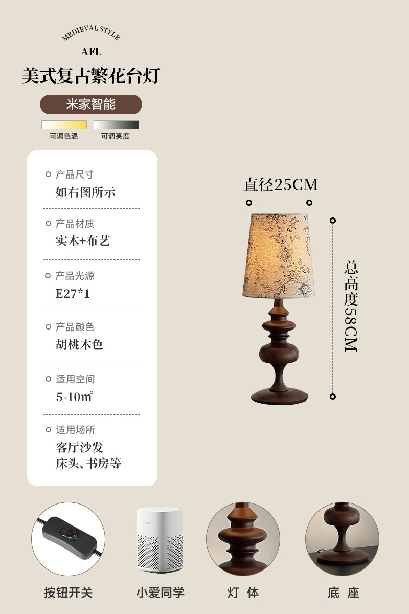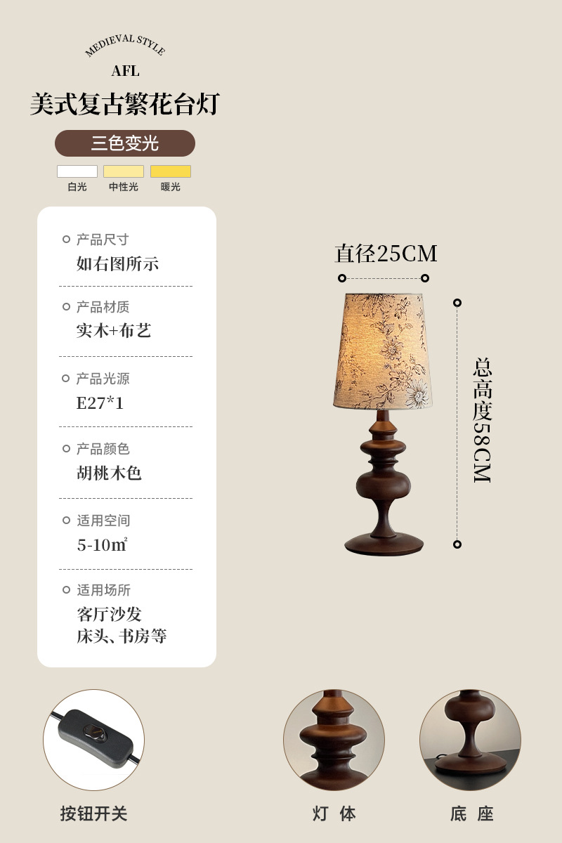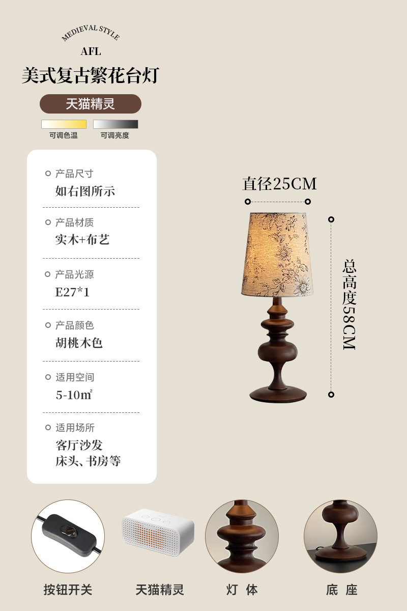 프랑스 레트로 패브릭 테이블 램프 침대 옆 하이 엔드 센스 인스 타 그램 스타일 빛 럭셔리 중동 고대 침실 솔리드 우드 장식 분위기 테이블 램프스토어 가기