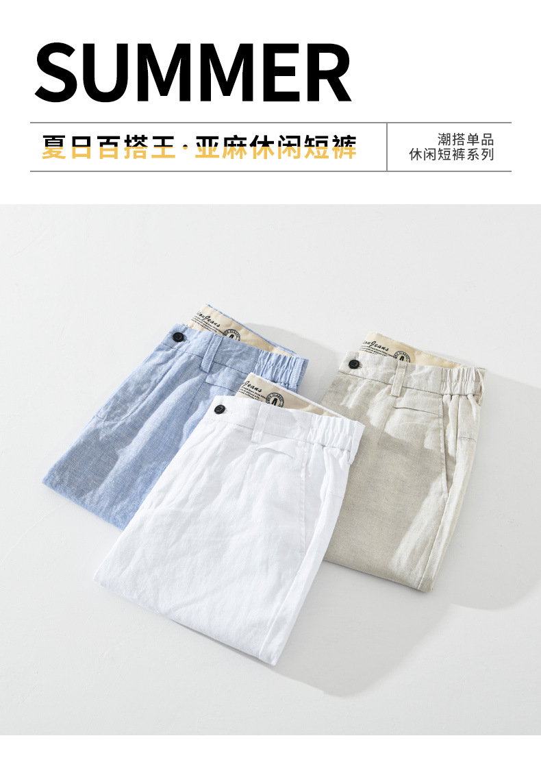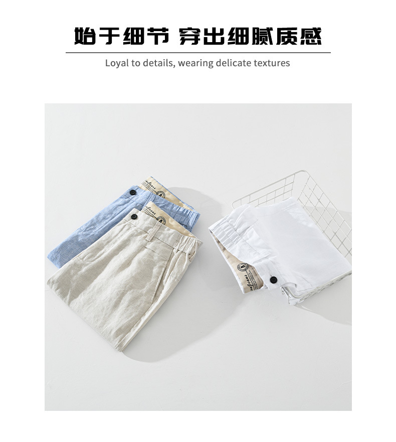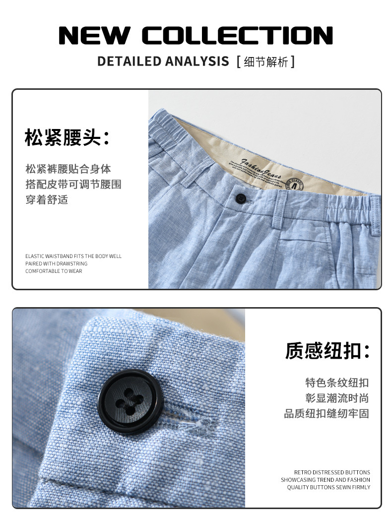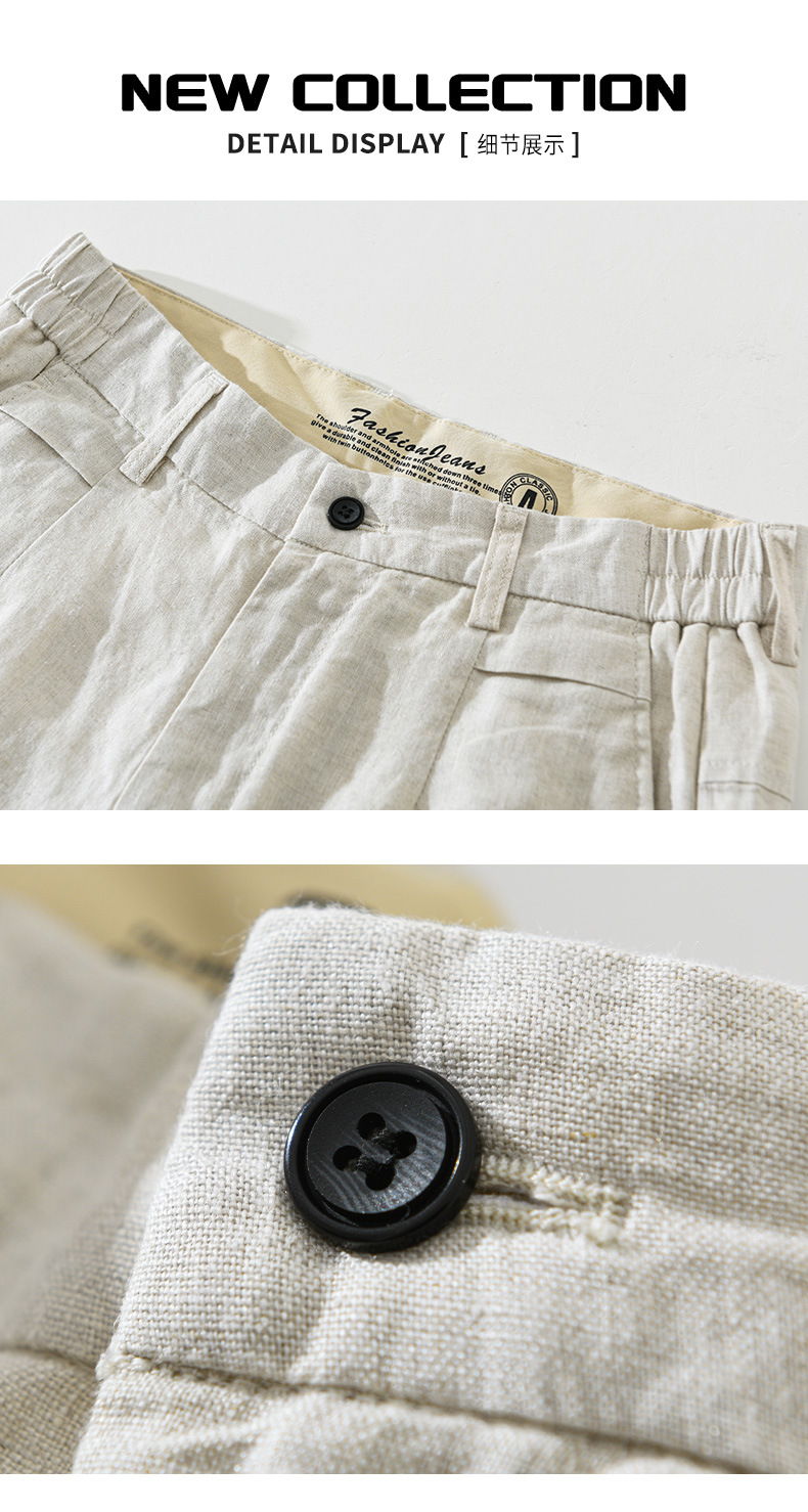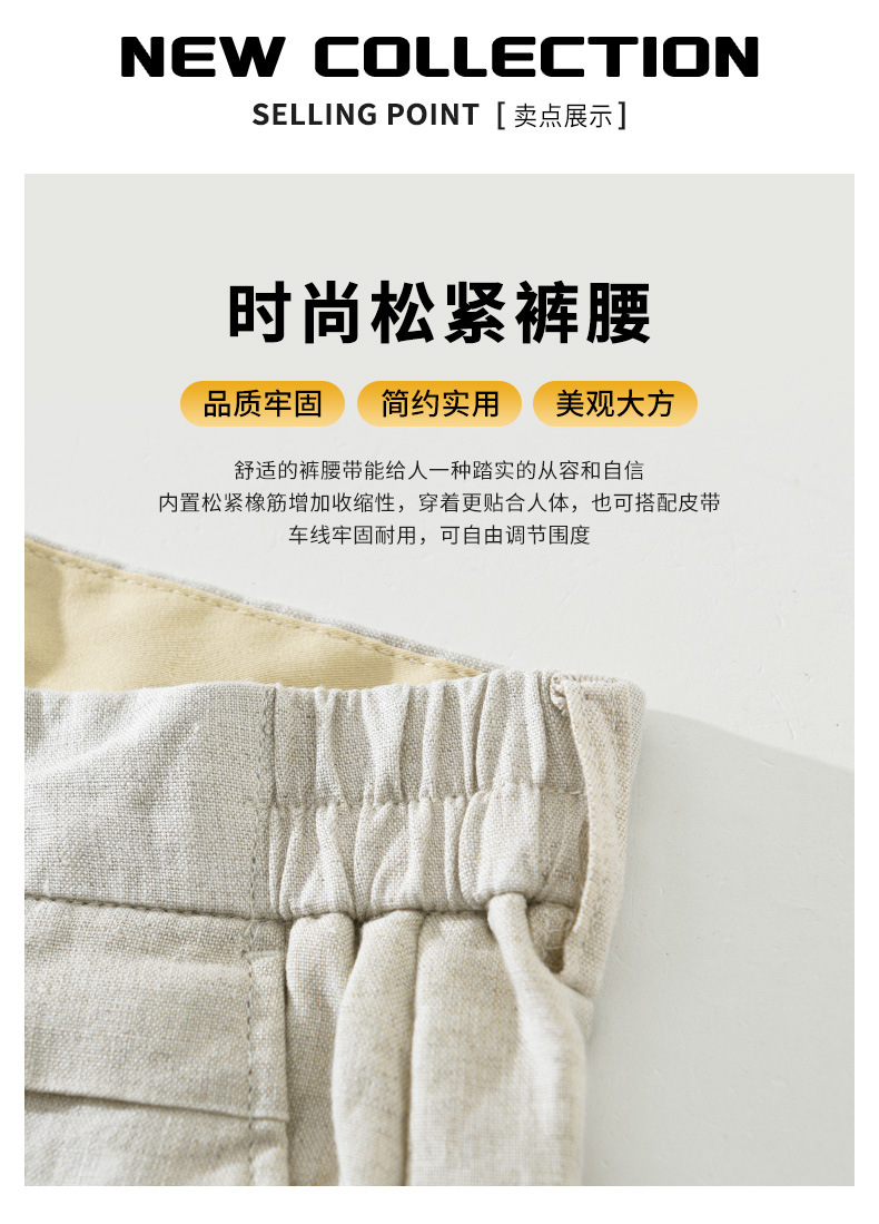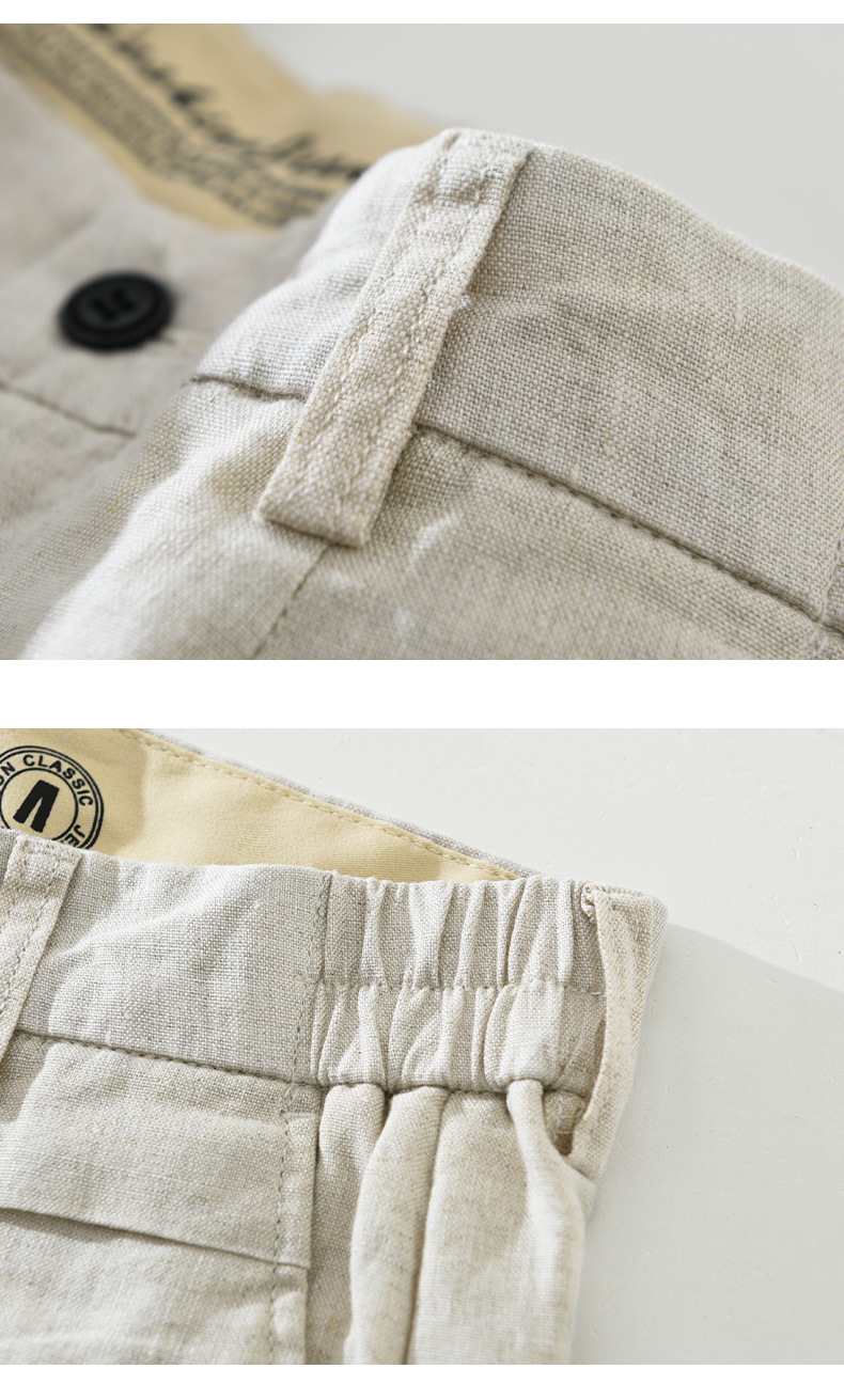 1351 일본식 레트로 린넨 바지 남자 여름 통기성 리넨 캐주얼 비치 바지 느슨한 멋진 반바지