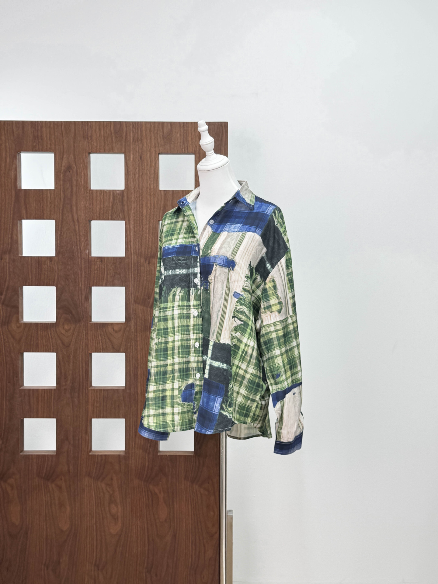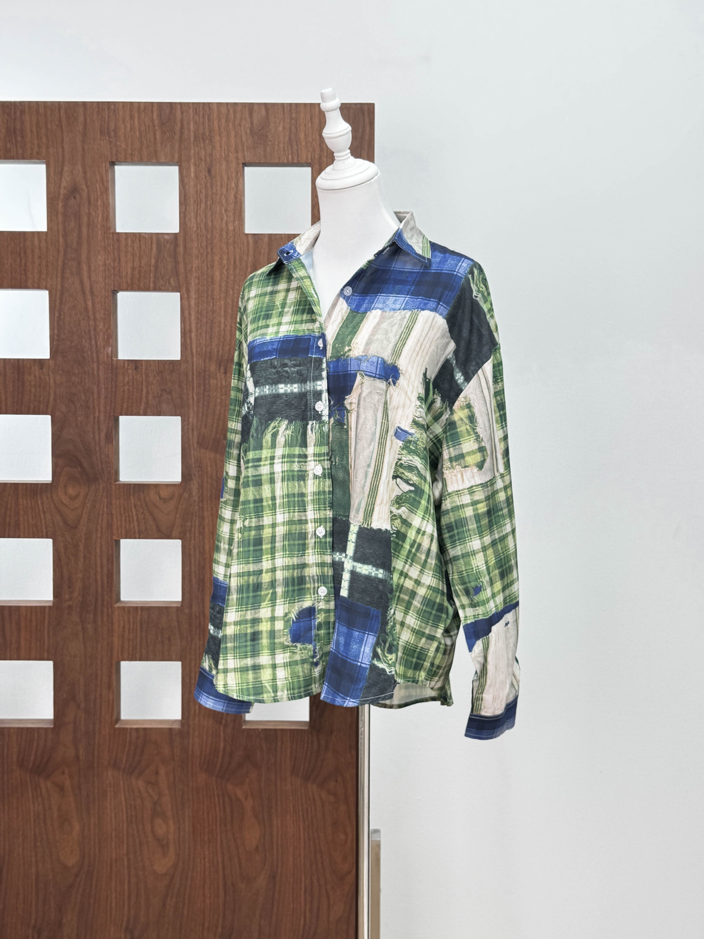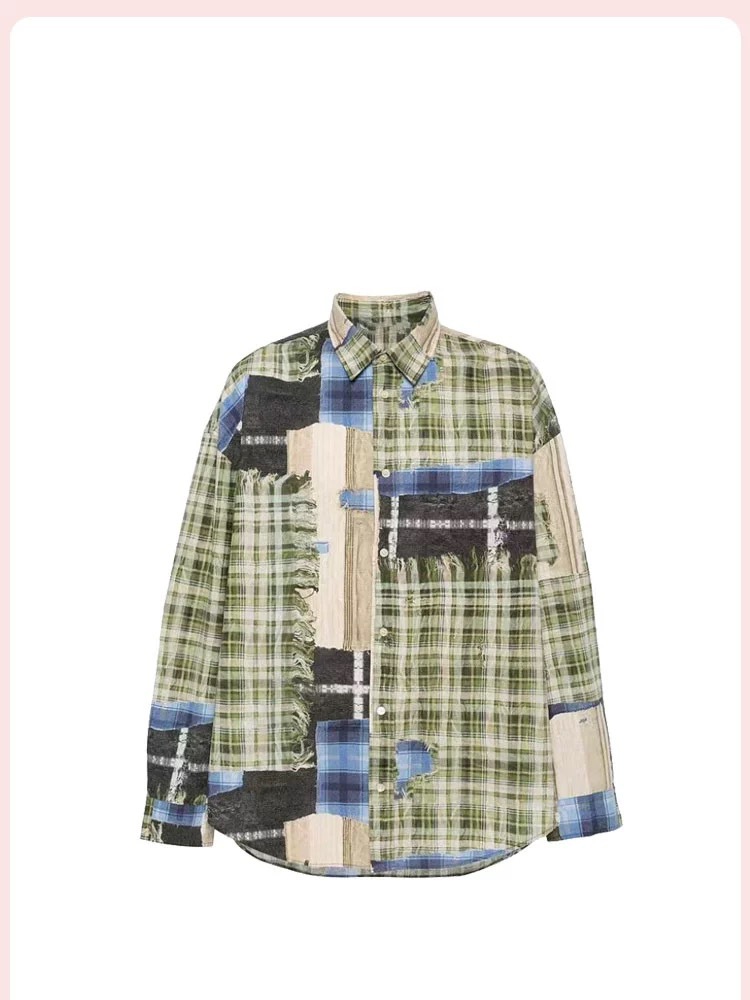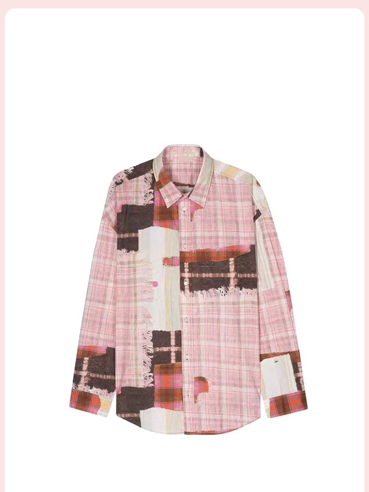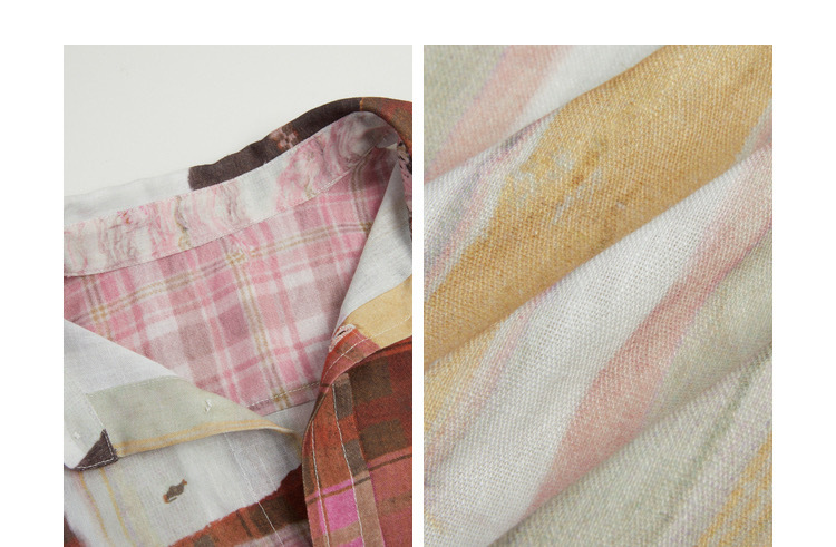 [좋은 버전과 분리 할 수없는] 틈새 디자인 실수 낙서 스티칭 체크 프린트 셔츠 자외선 차단제 여름