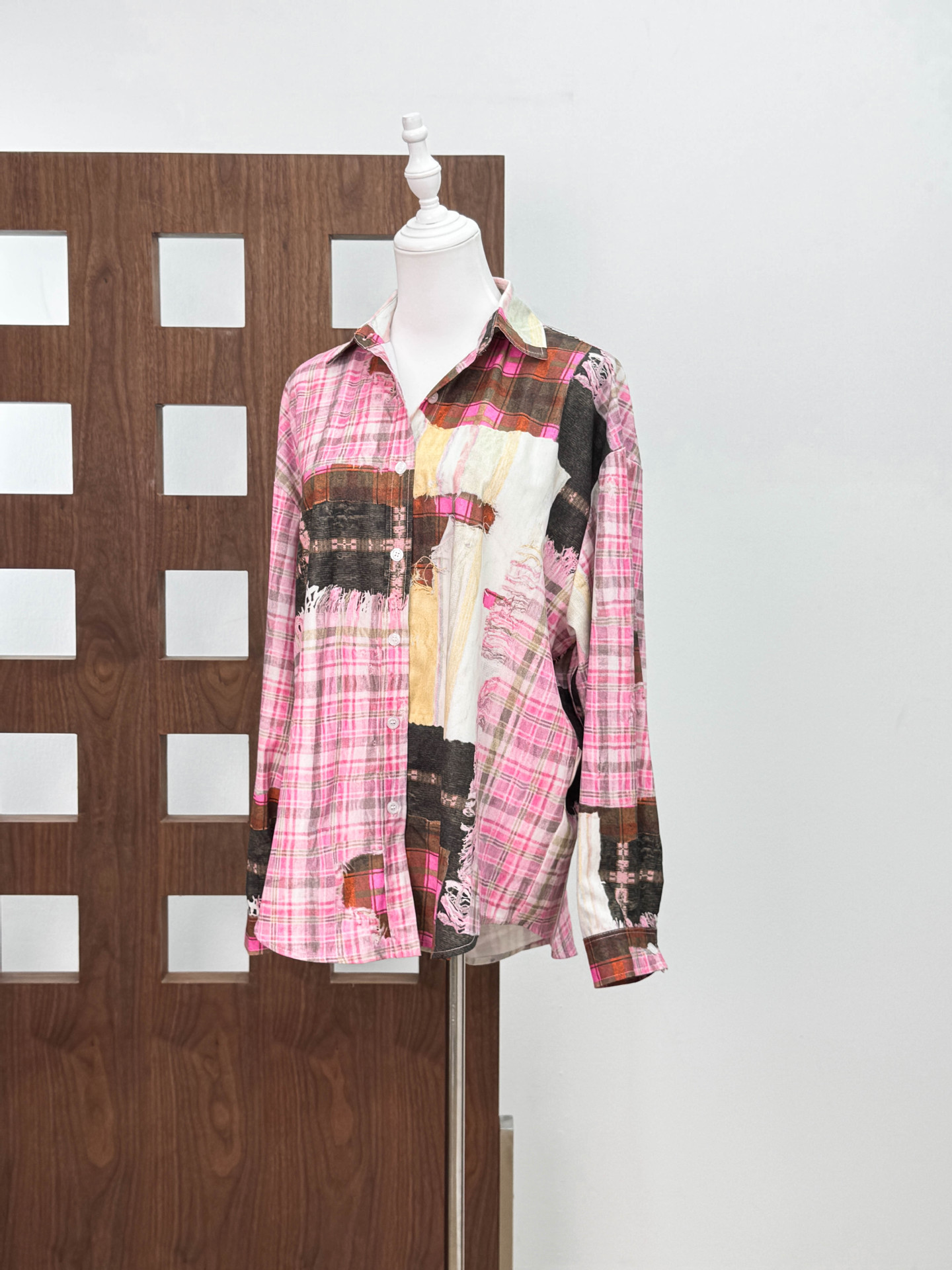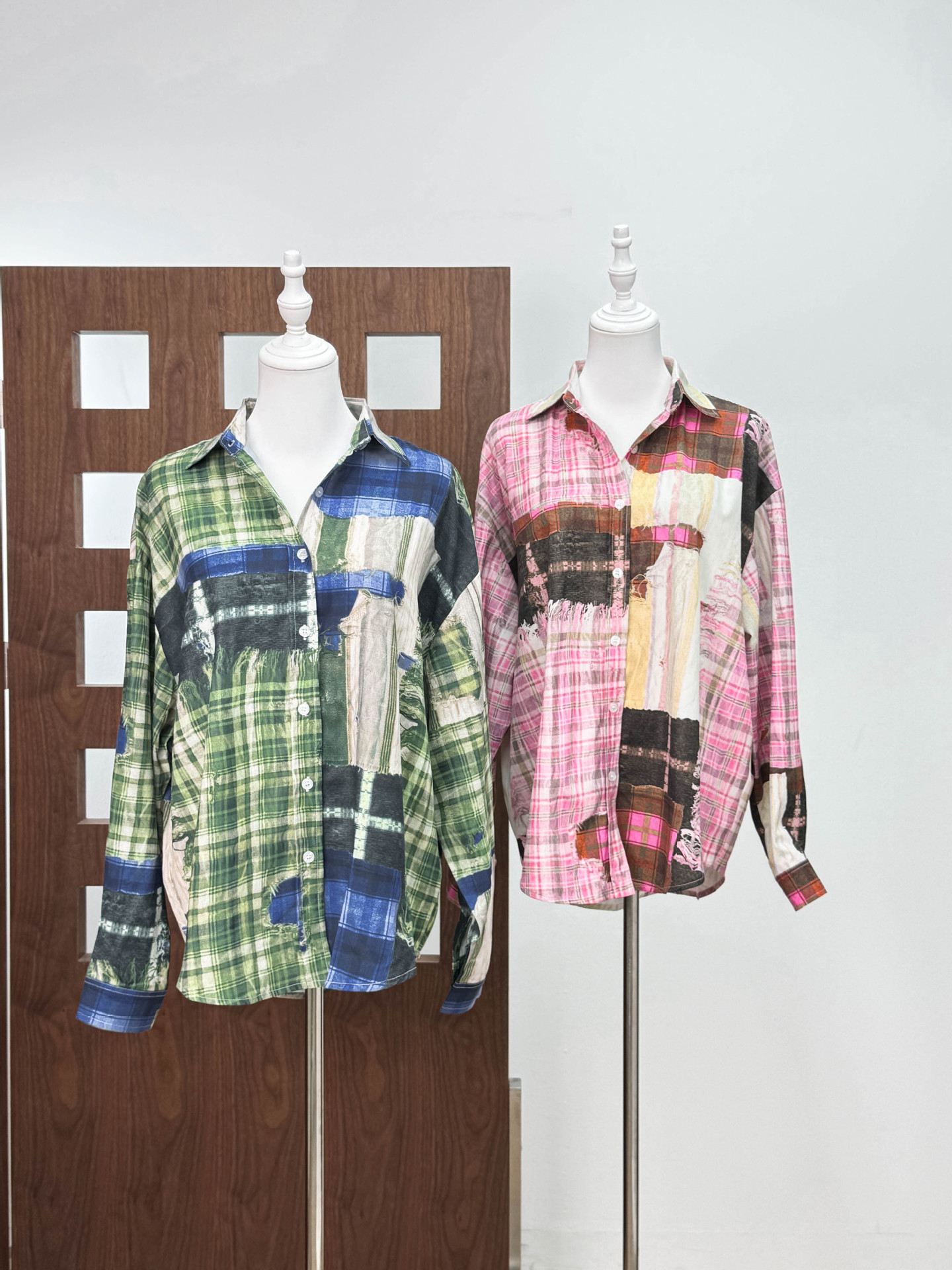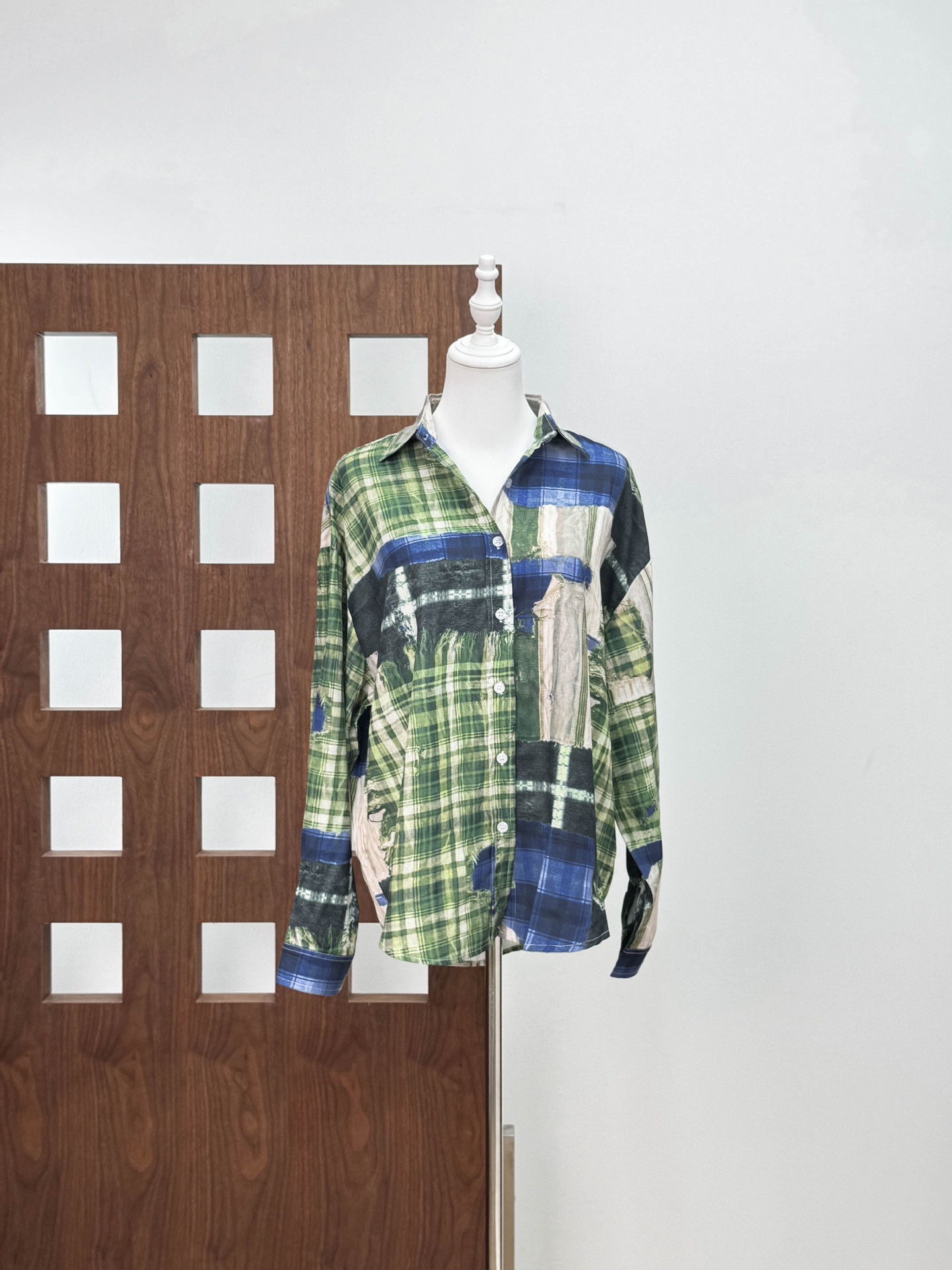 [좋은 버전과 분리 할 수없는] 틈새 디자인 실수 낙서 스티칭 체크 프린트 셔츠 자외선 차단제 여름