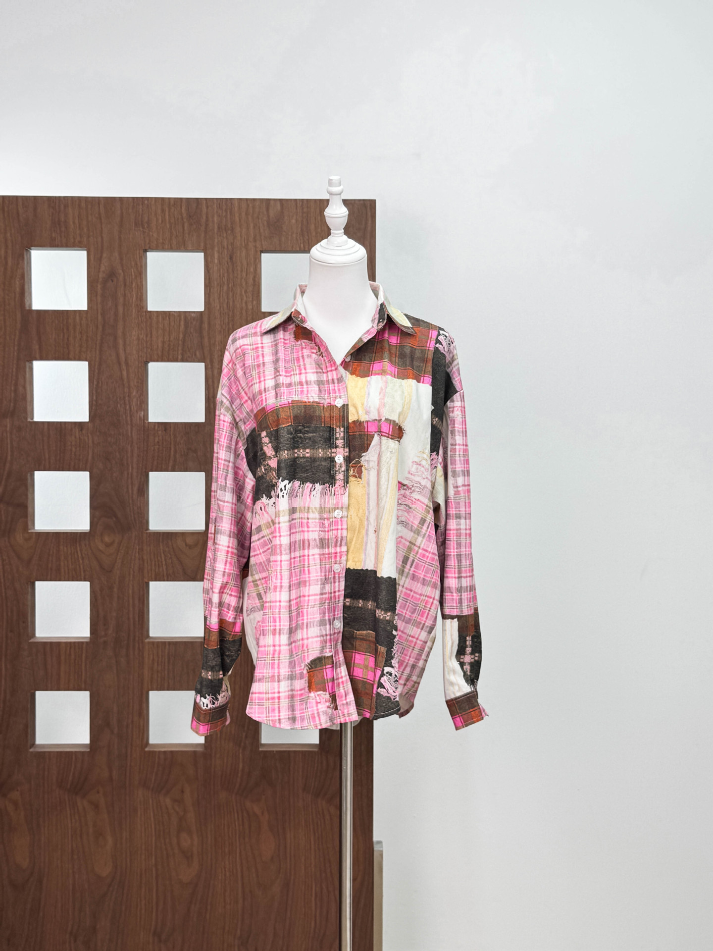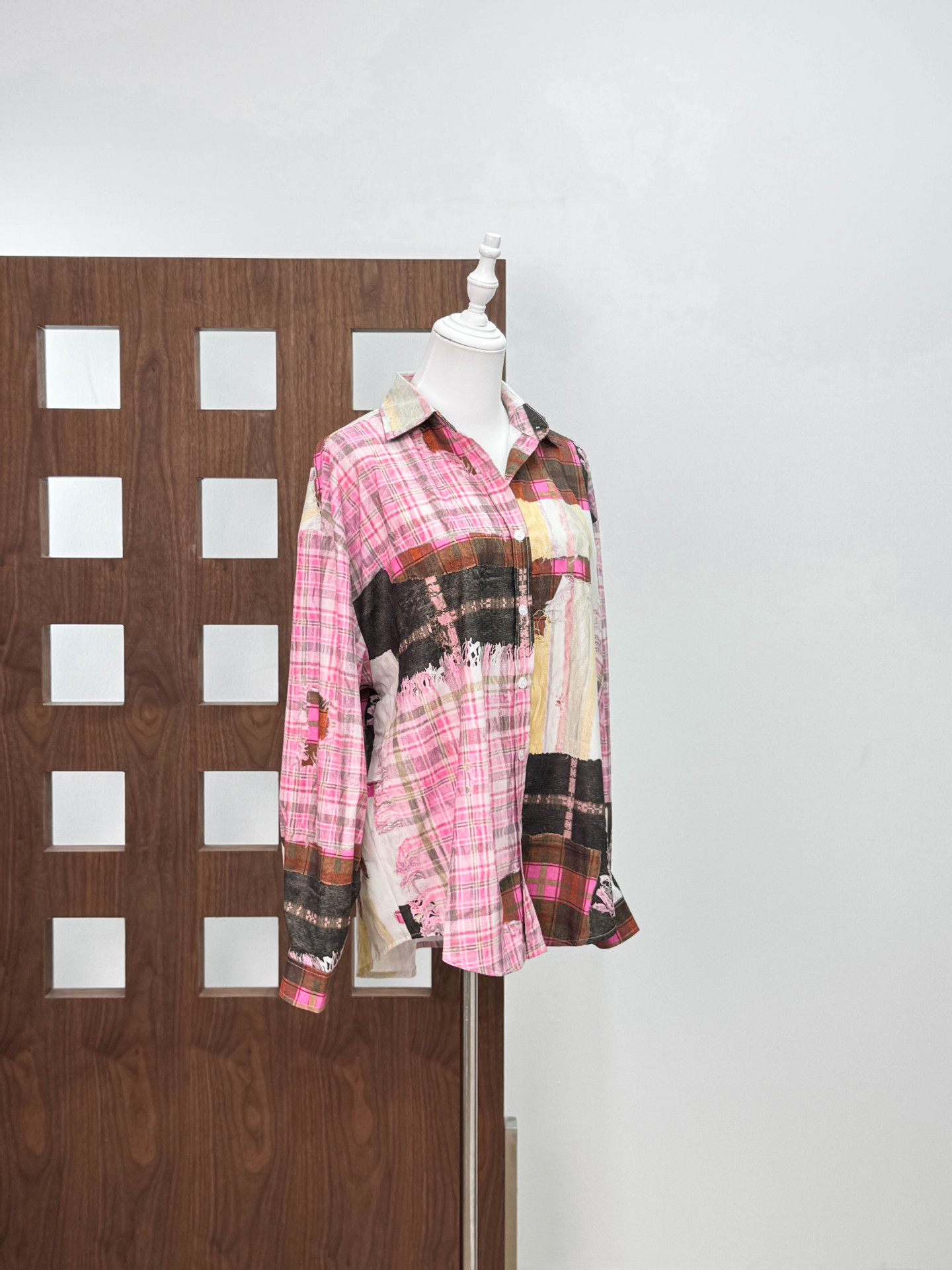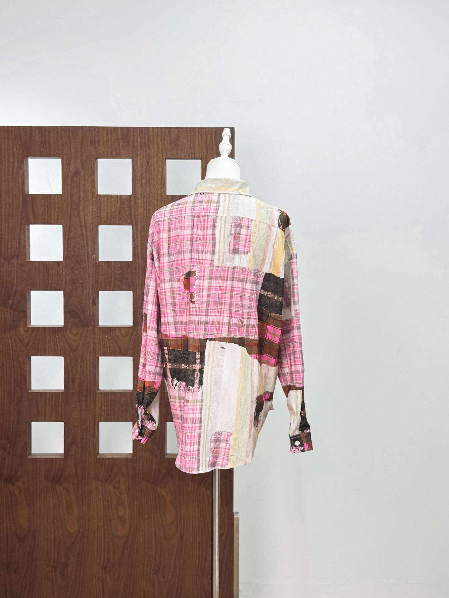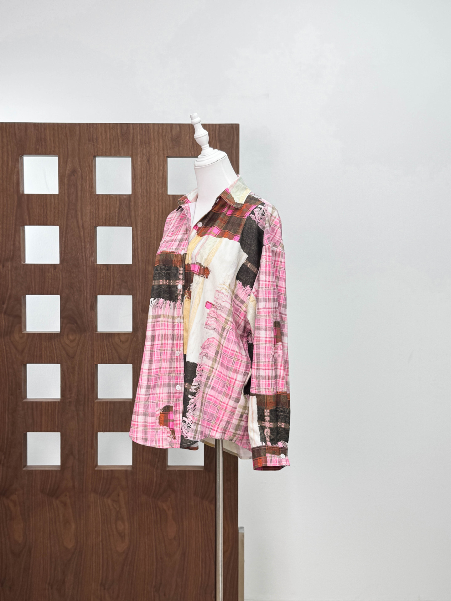 [좋은 버전과 분리 할 수없는] 틈새 디자인 실수 낙서 스티칭 체크 프린트 셔츠 자외선 차단제 여름