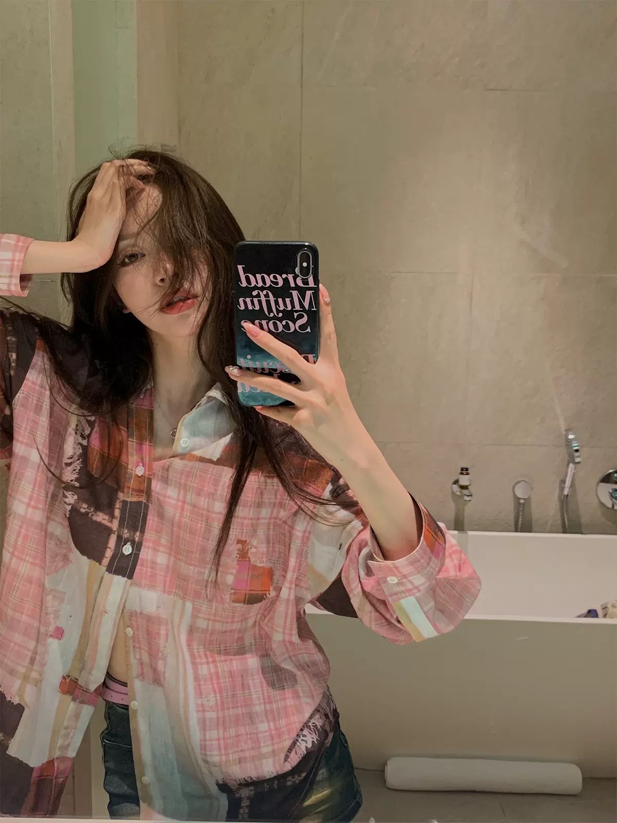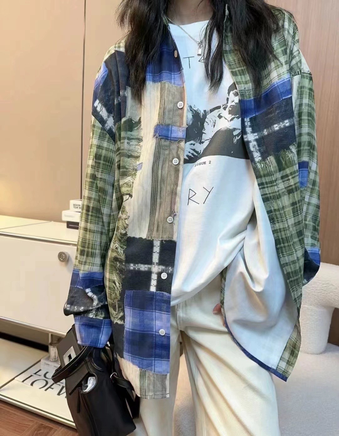 [좋은 버전과 분리 할 수없는] 틈새 디자인 실수 낙서 스티칭 체크 프린트 셔츠 자외선 차단제 여름스토어 가기