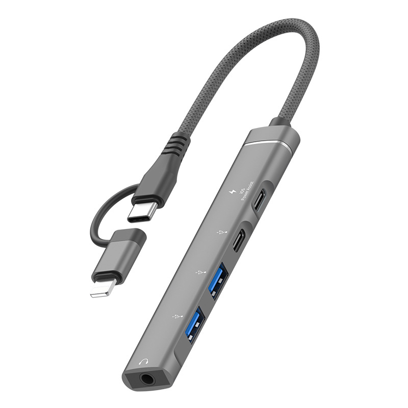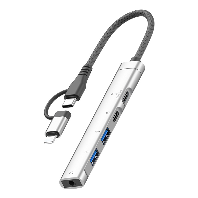 애플 안드로이드 USB 5-in -1 3.5mm 헤드셋 다기능 허브 확장 도크 U 디스크 마우스 허브에 적합스토어 가기