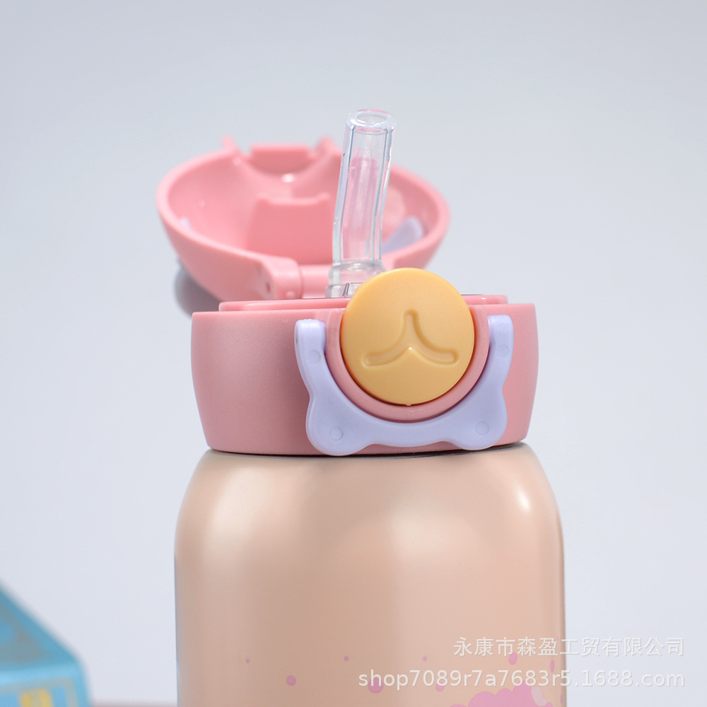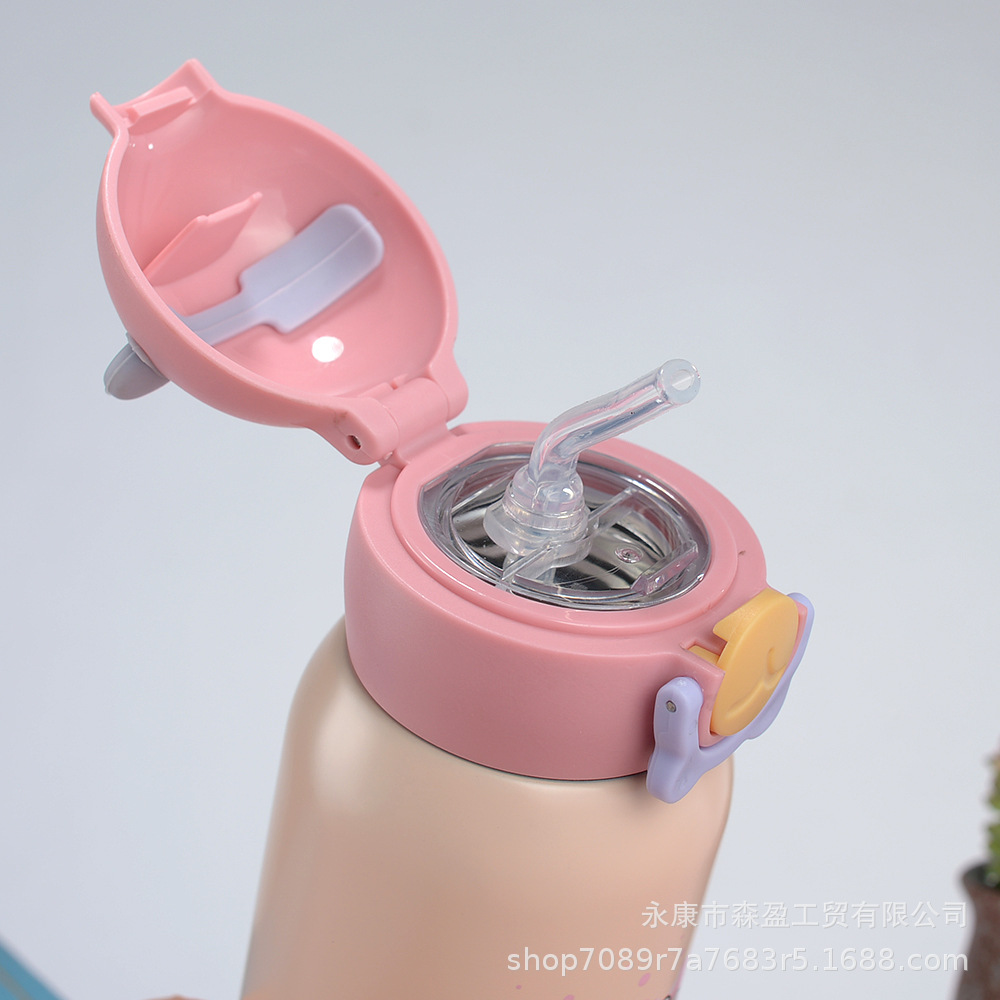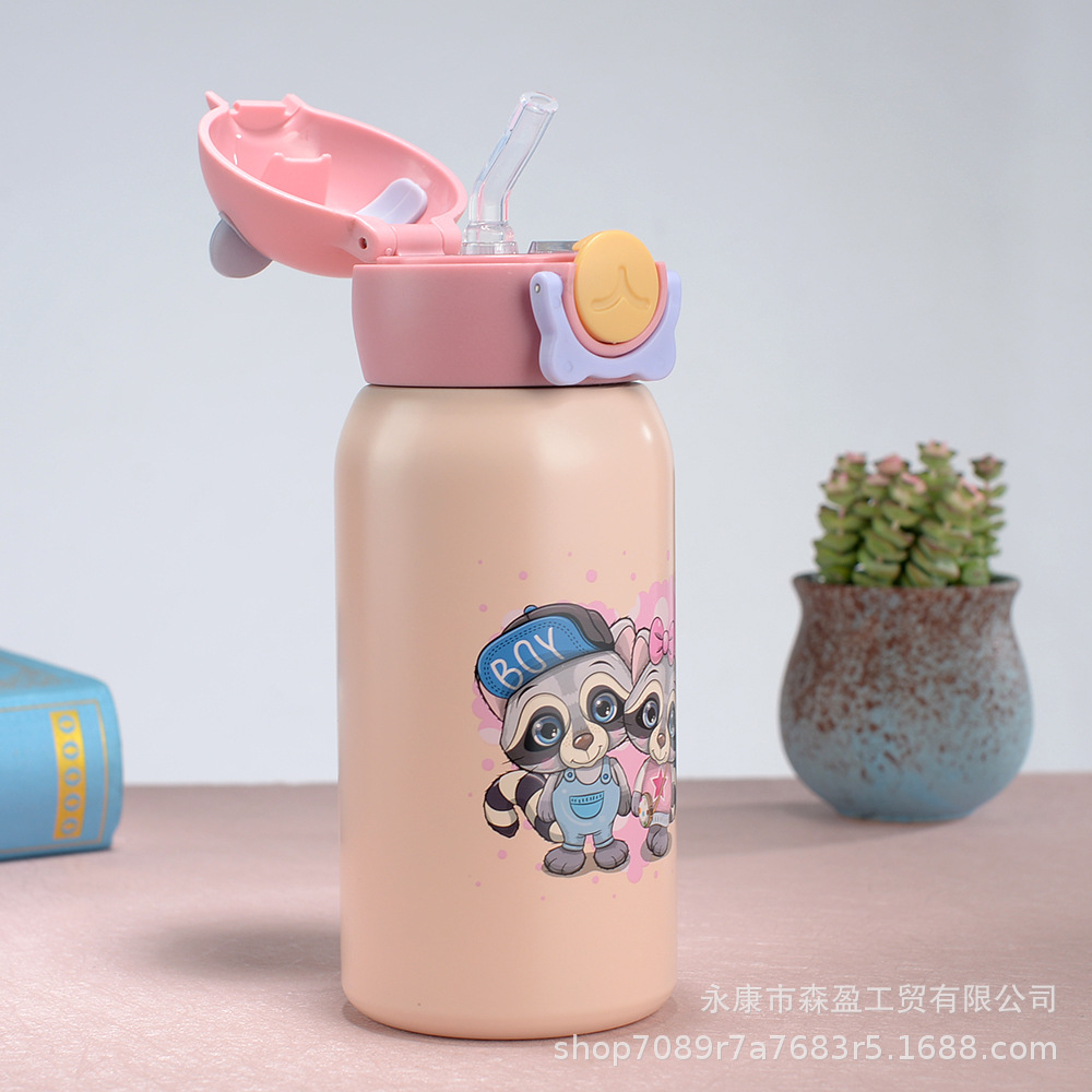 새로운 316 스테인레스 스틸 어린이 보온병 컵 흡입 튜브 컵 대용량 높은 색상 가치 휴대용 만화 어린이 주전자스토어 가기