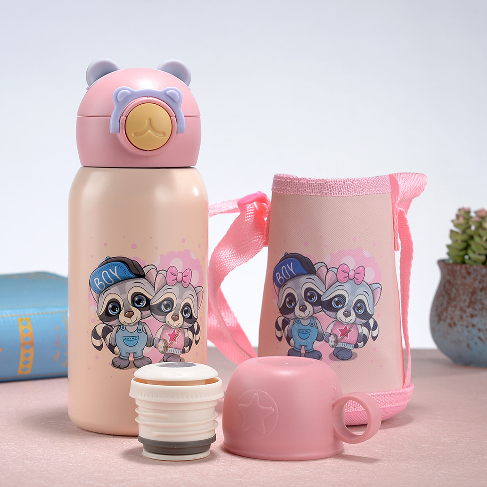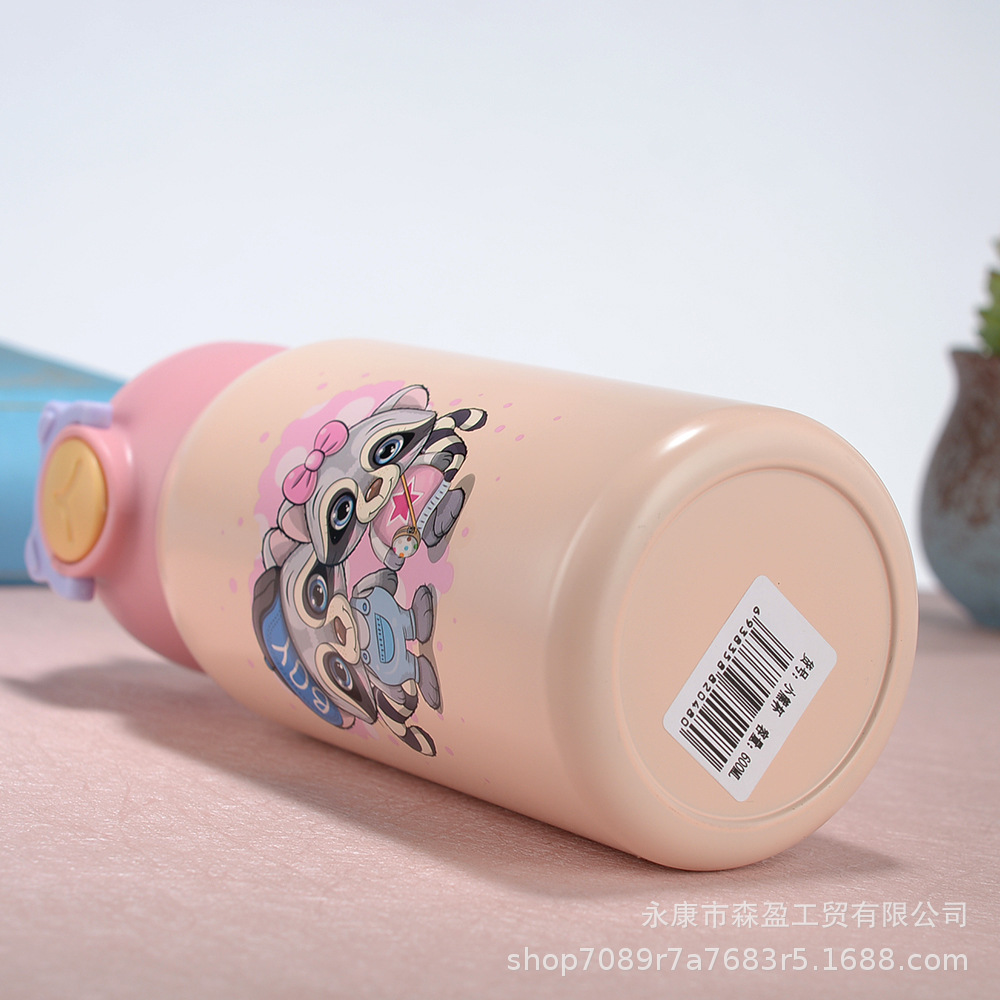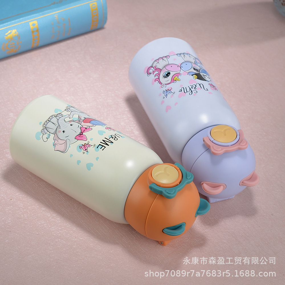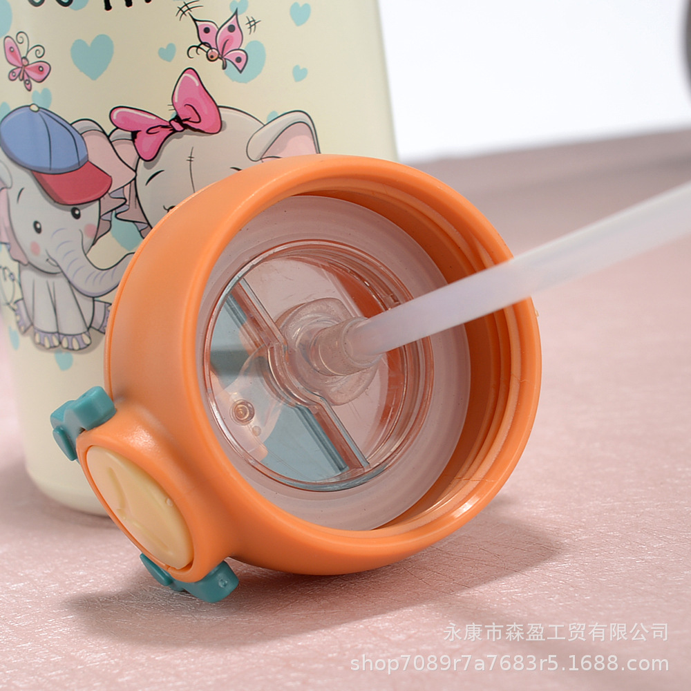 새로운 316 스테인레스 스틸 어린이 보온병 컵 흡입 튜브 컵 대용량 높은 색상 가치 휴대용 만화 어린이 주전자스토어 가기