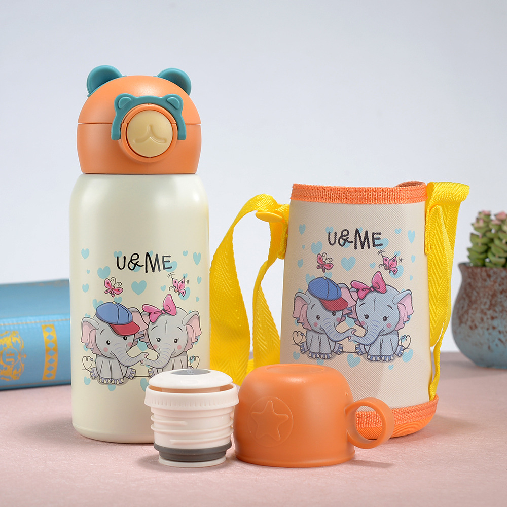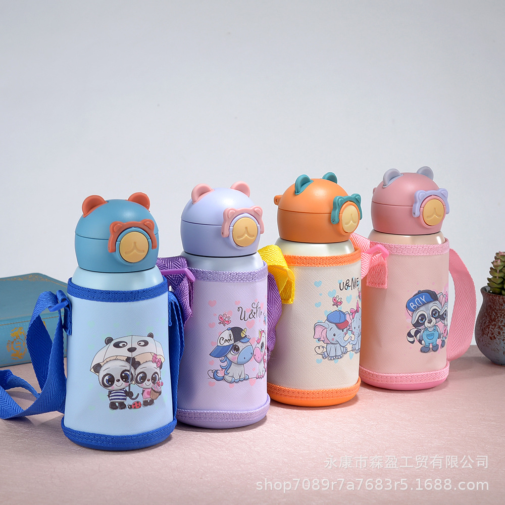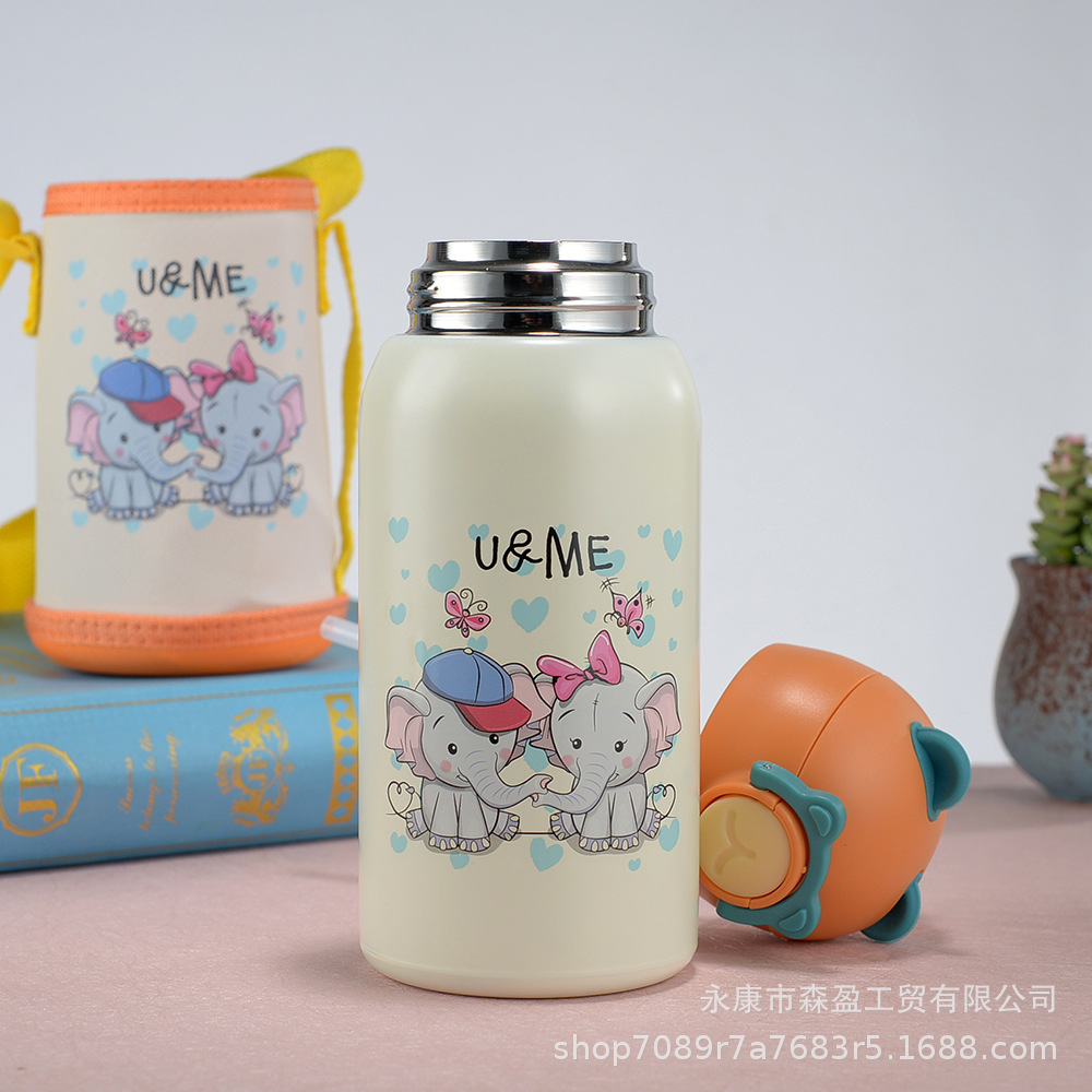새로운 316 스테인레스 스틸 어린이 보온병 컵 흡입 튜브 컵 대용량 높은 색상 가치 휴대용 만화 어린이 주전자