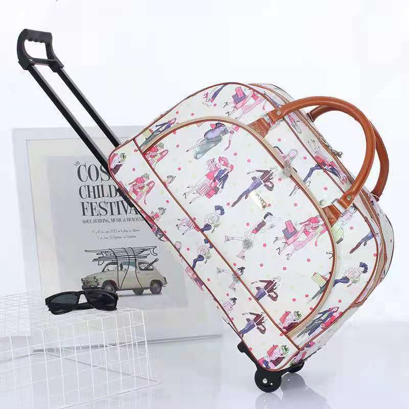 단거리 여행을위한 유행 대용량 휴대용 트롤리 가방 바퀴 트롤리 수하물 보관 가방이 달린 옥스포드 천 여행 가방스토어 가기