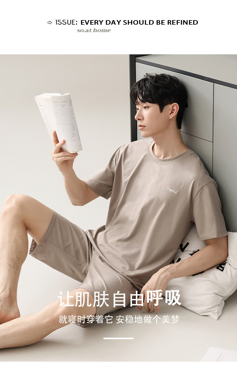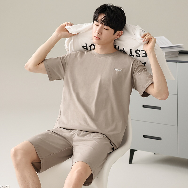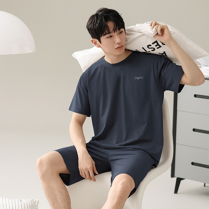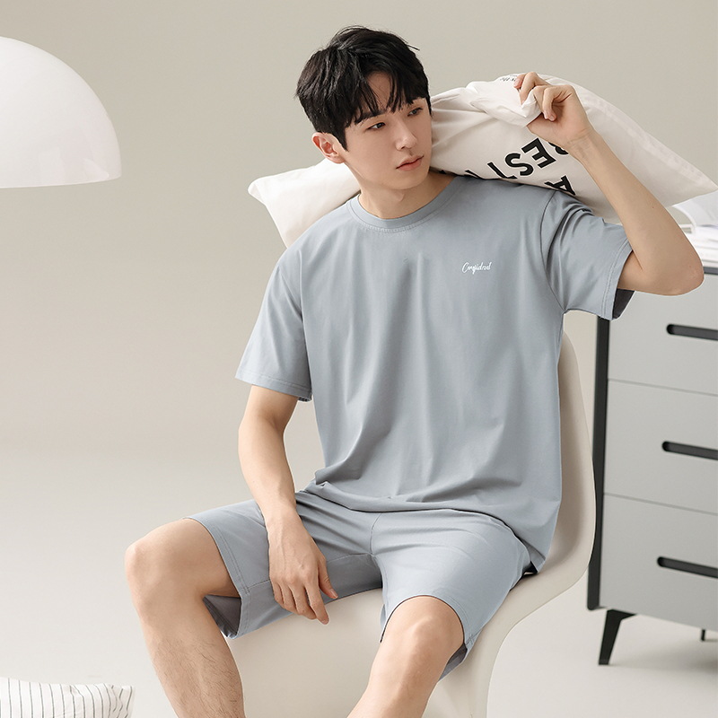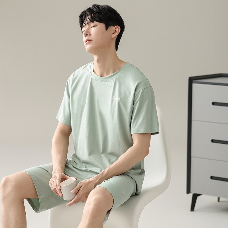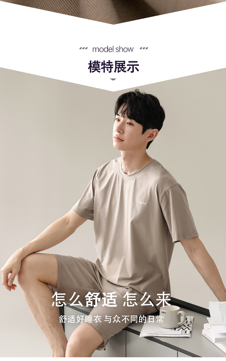 잠옷 남자 여름 반팔 반바지 얇은 느슨한 모달 플러스 사이즈 여름 의상 남자 홈 의류 세트스토어 가기