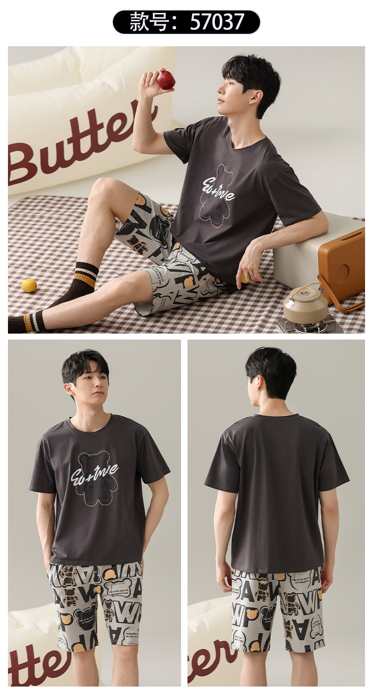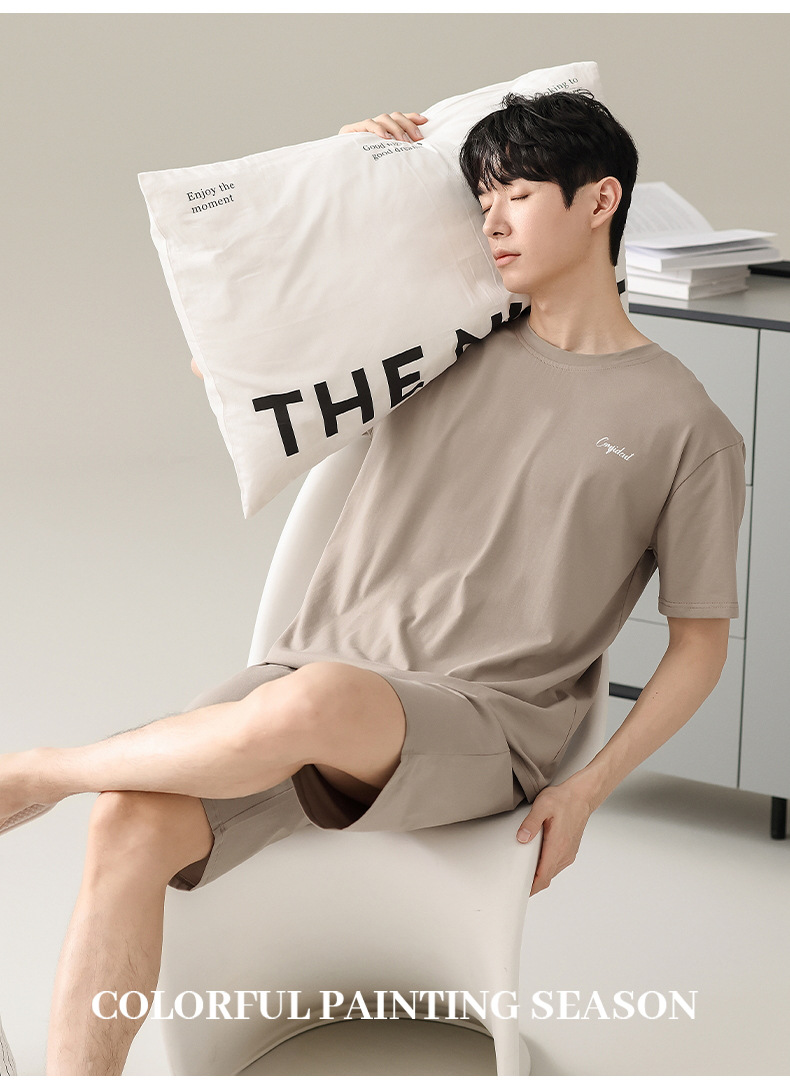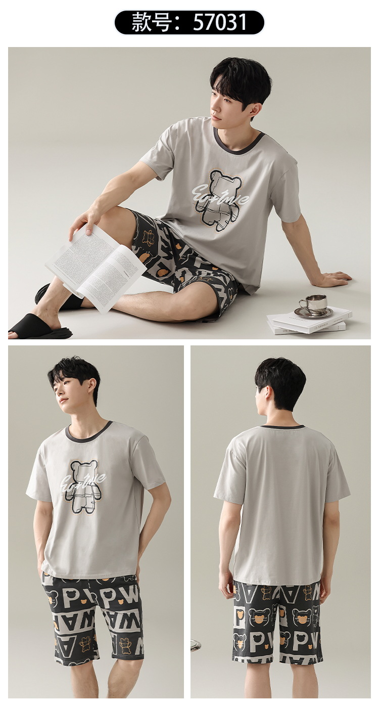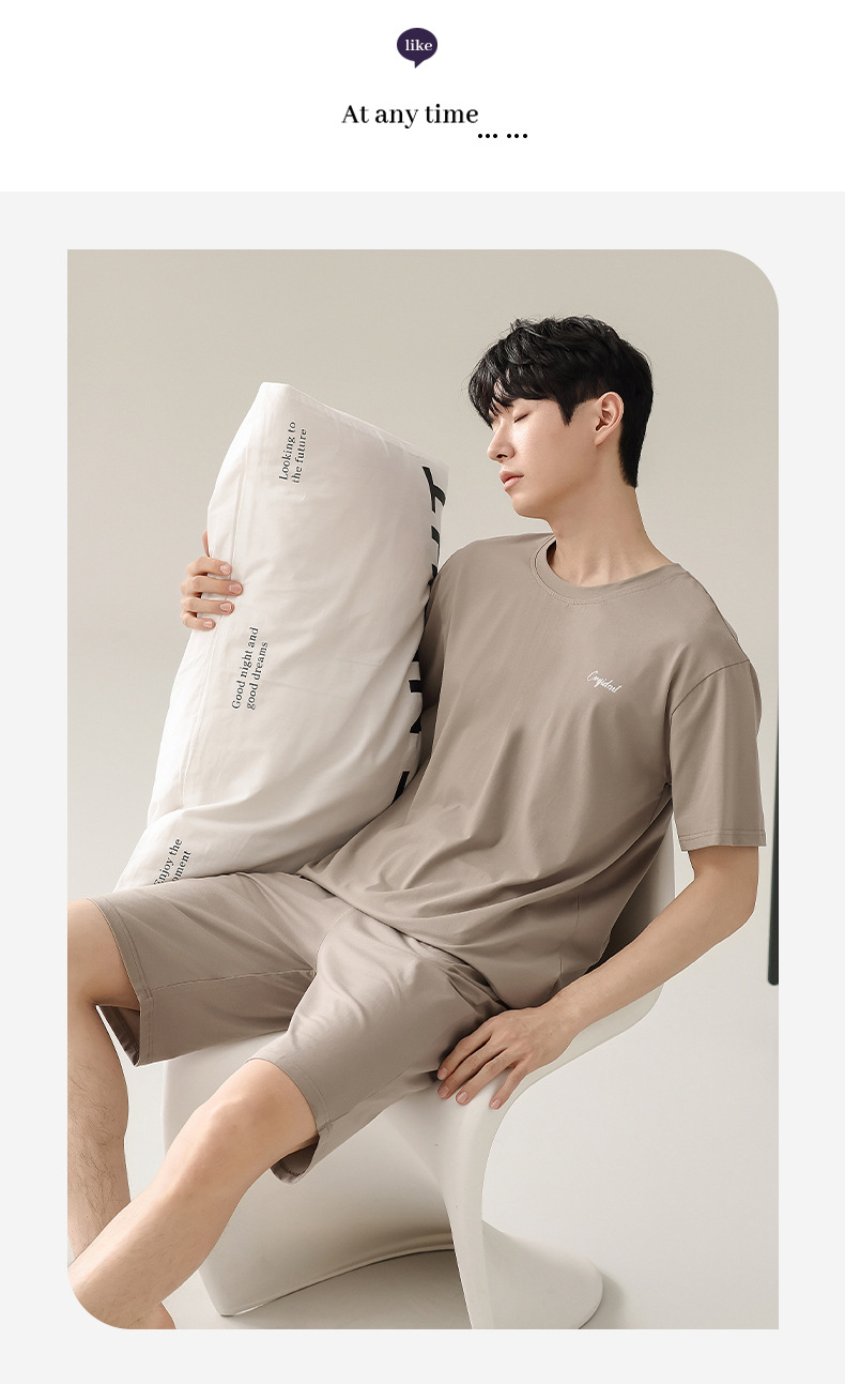 잠옷 남자 여름 반팔 반바지 얇은 느슨한 모달 플러스 사이즈 여름 의상 남자 홈 의류 세트스토어 가기