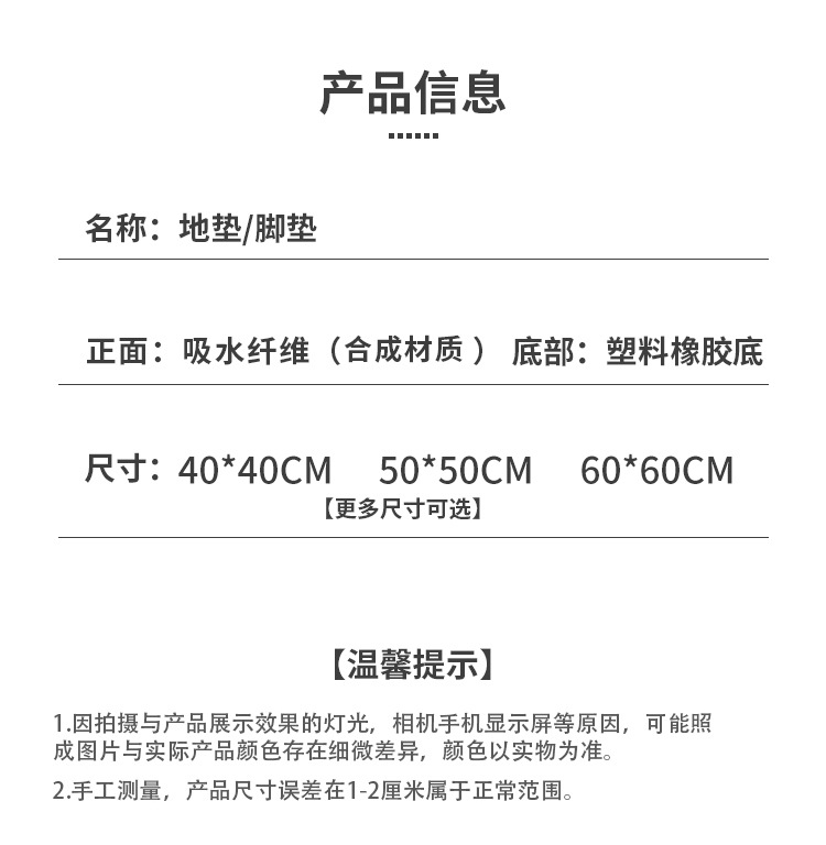 • 80*80cm [흡수성 빠른 건조 두께 욕실 화장실 작은 현관 선택]]
