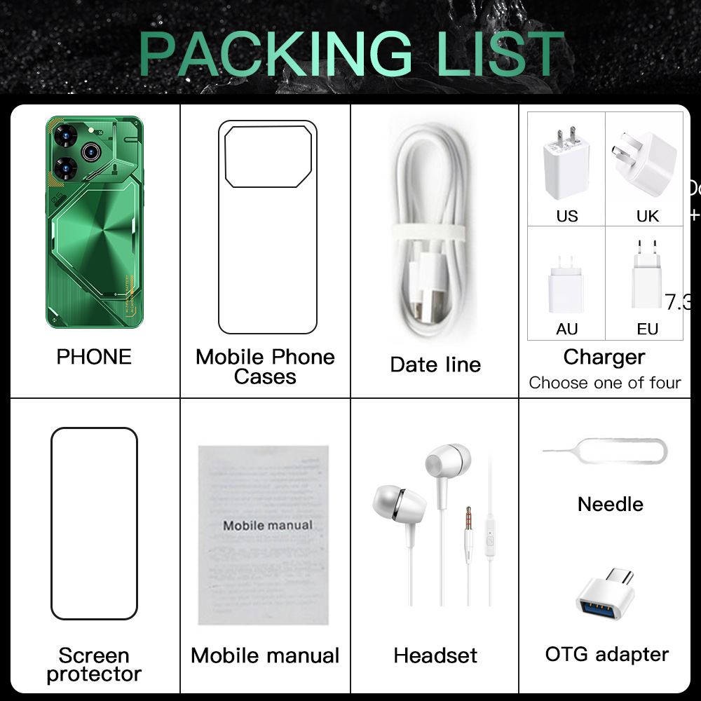 .出货标准:手机+包装盒+说明书+充头器