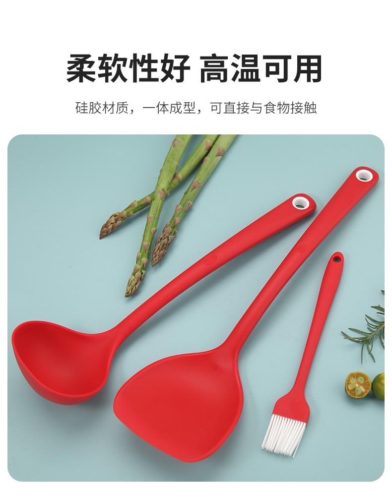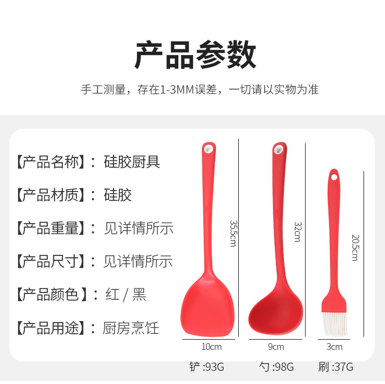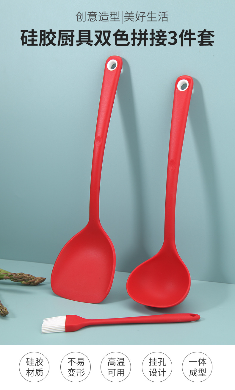 실리콘 주방용품 3 조각 세트 가정용 볶음 Scutler Spoon 바베큐 오일 브러쉬 요리 주방 도구 세트 도매