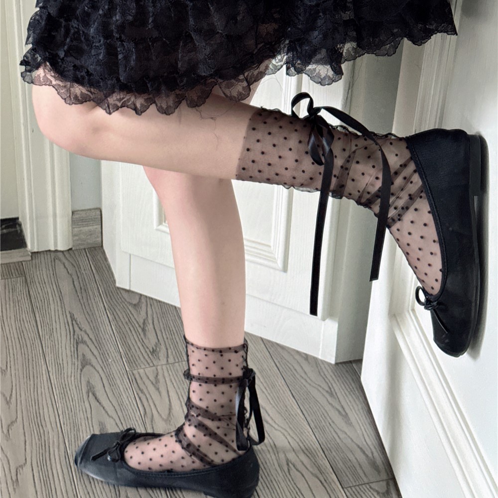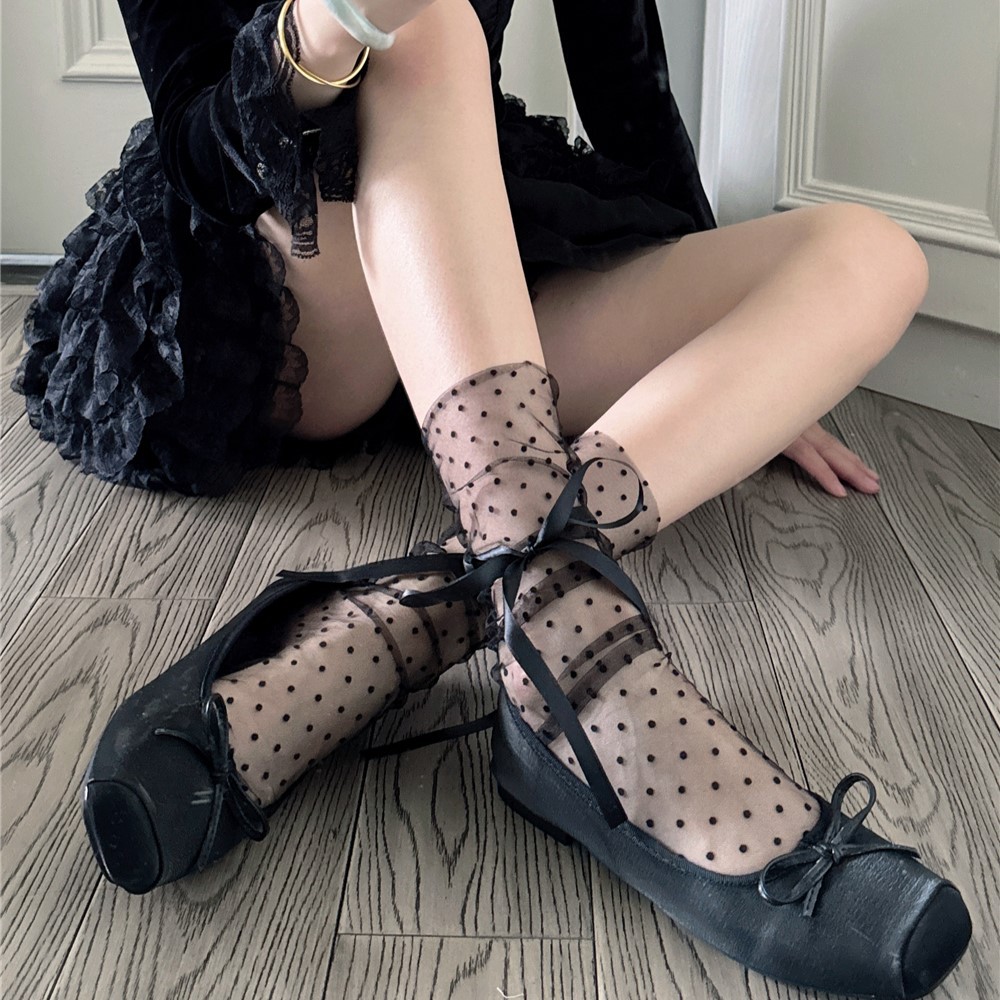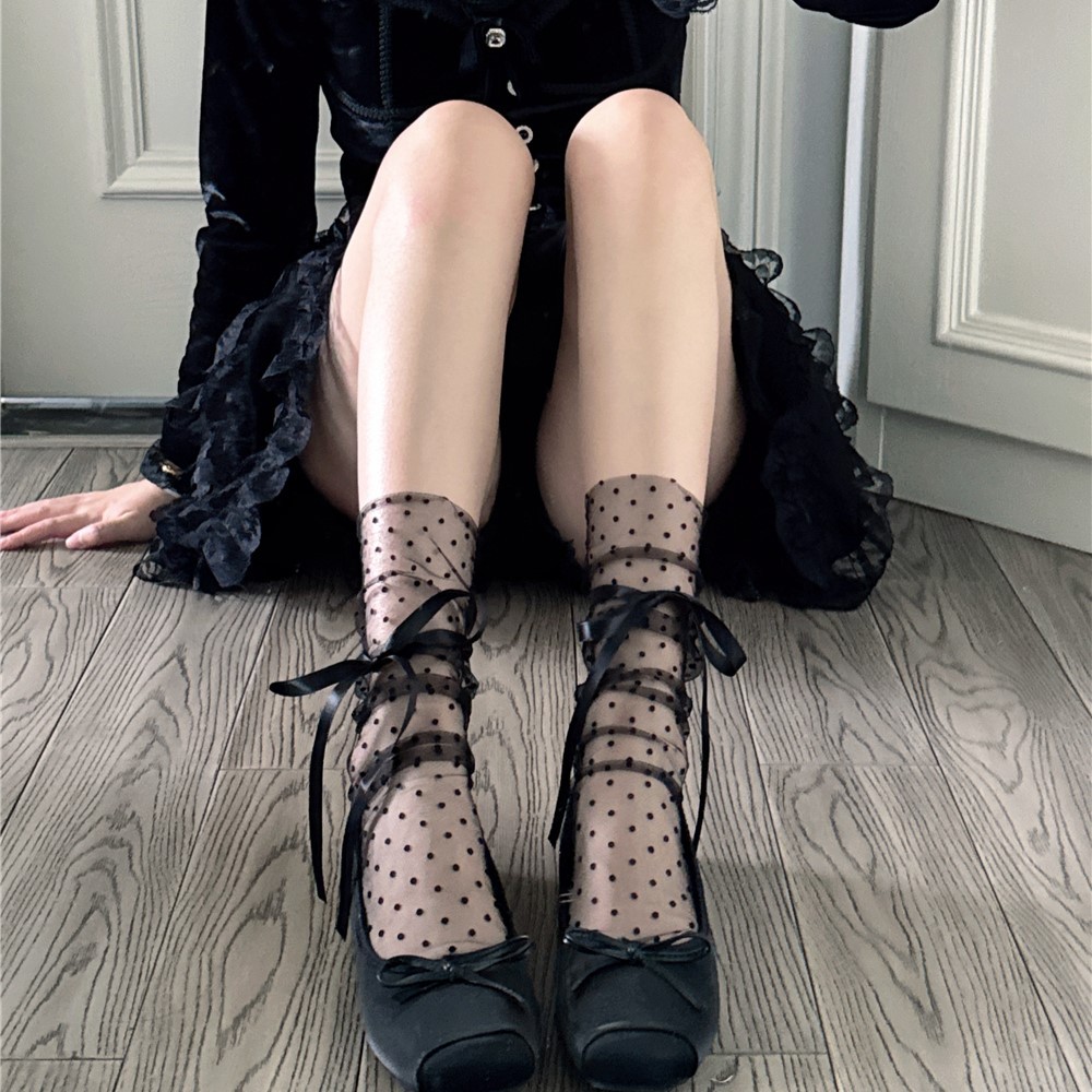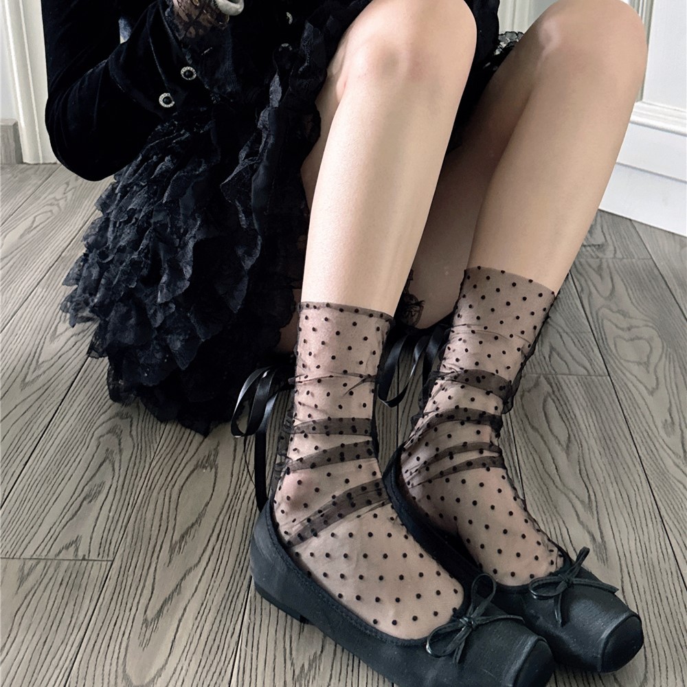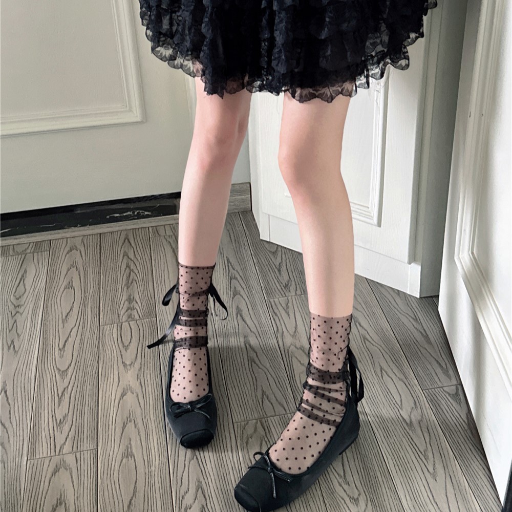 일본 로리타 도트 메쉬 양말 미우 투명 중형 양말 봄과 여름 초박형 통기성 스트랩 스택 양말