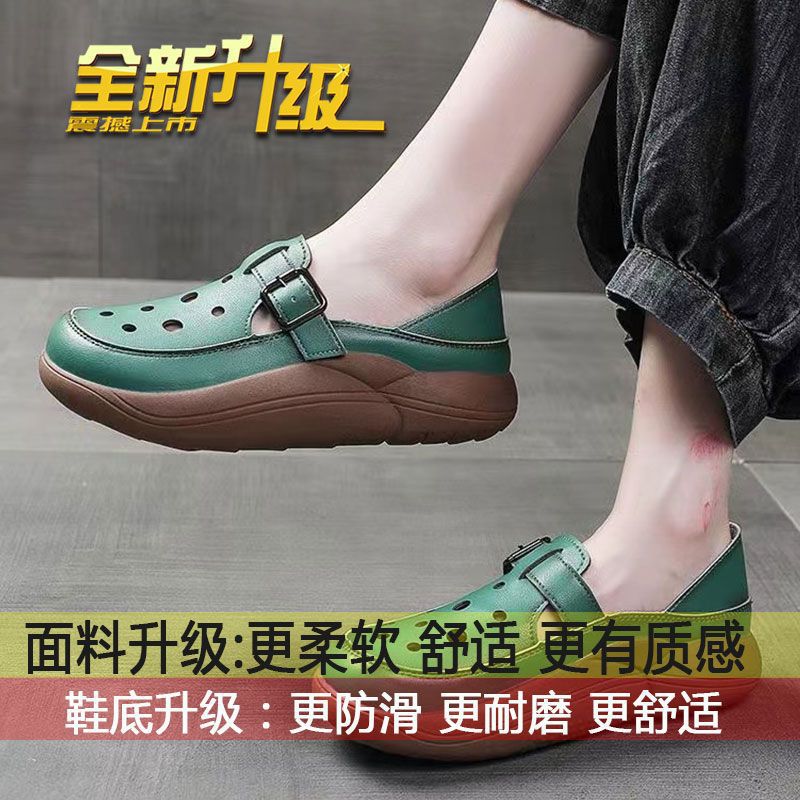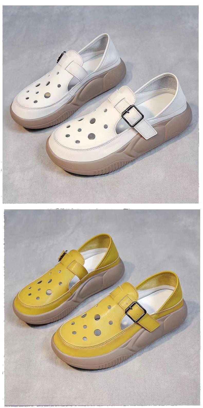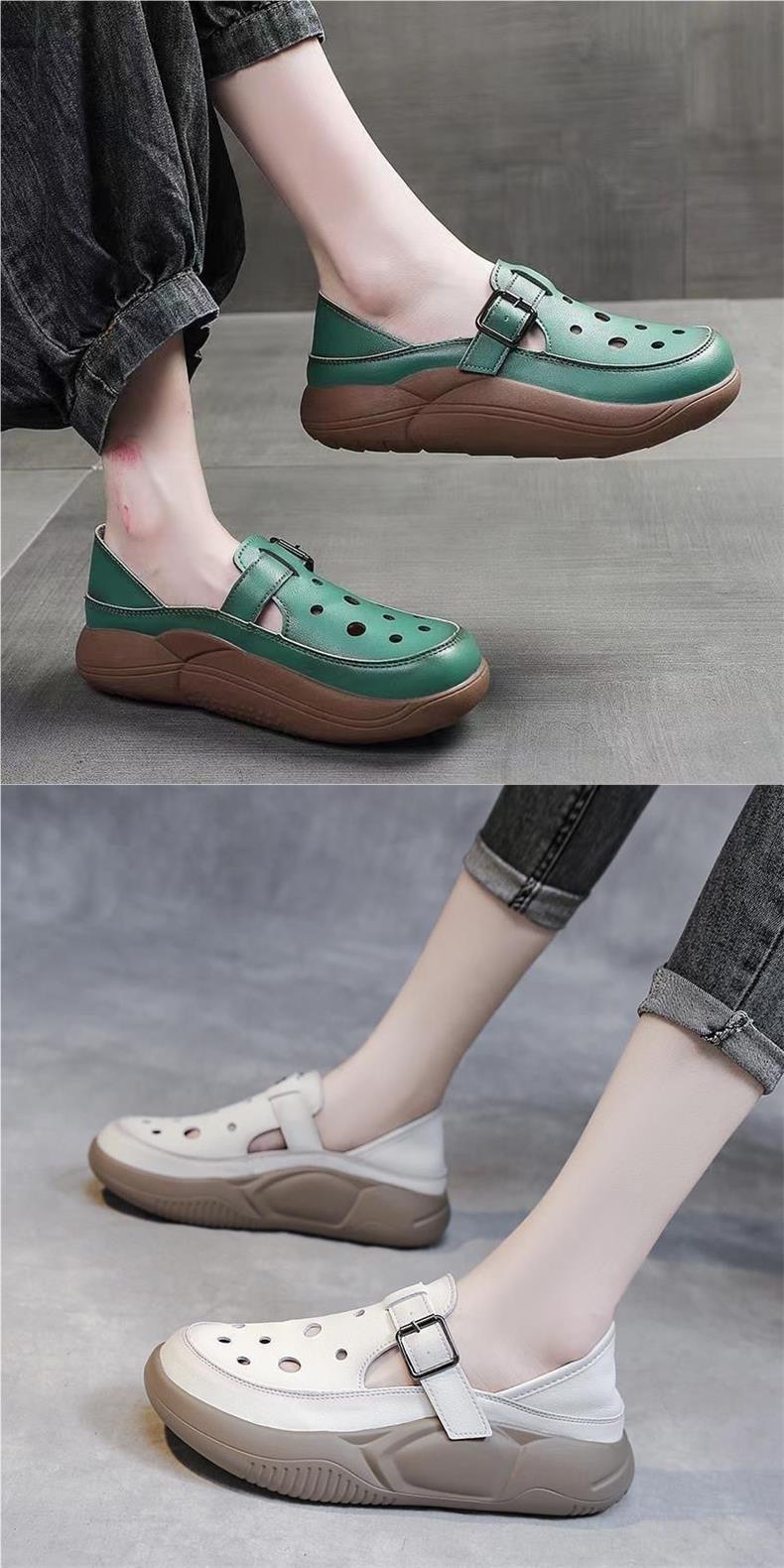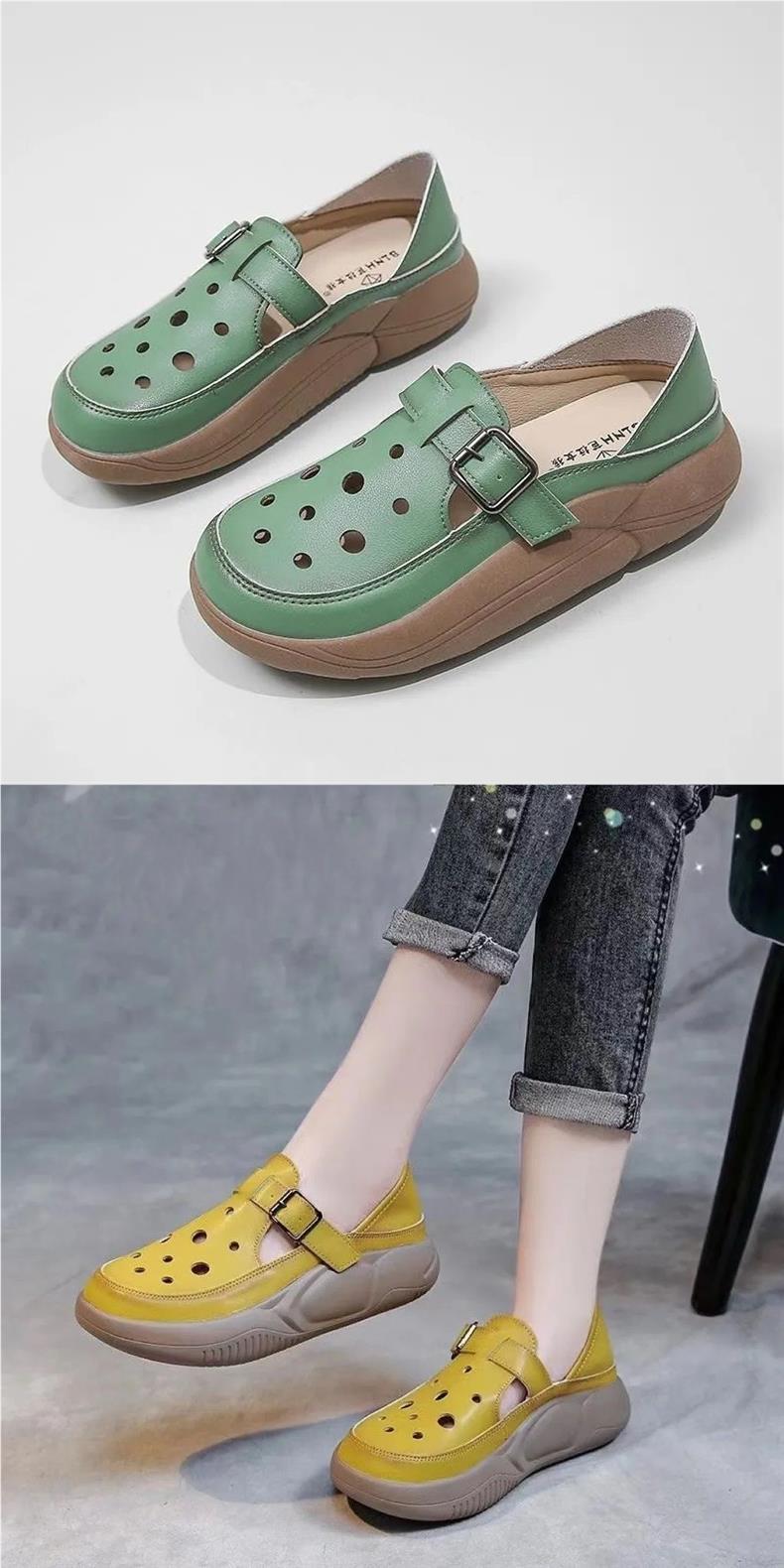 여성을위한 복고풍 스타일 중공 부드러운 가죽 로마 샌들 여름 새로운 2 착용 악어 신발 캐주얼 신발