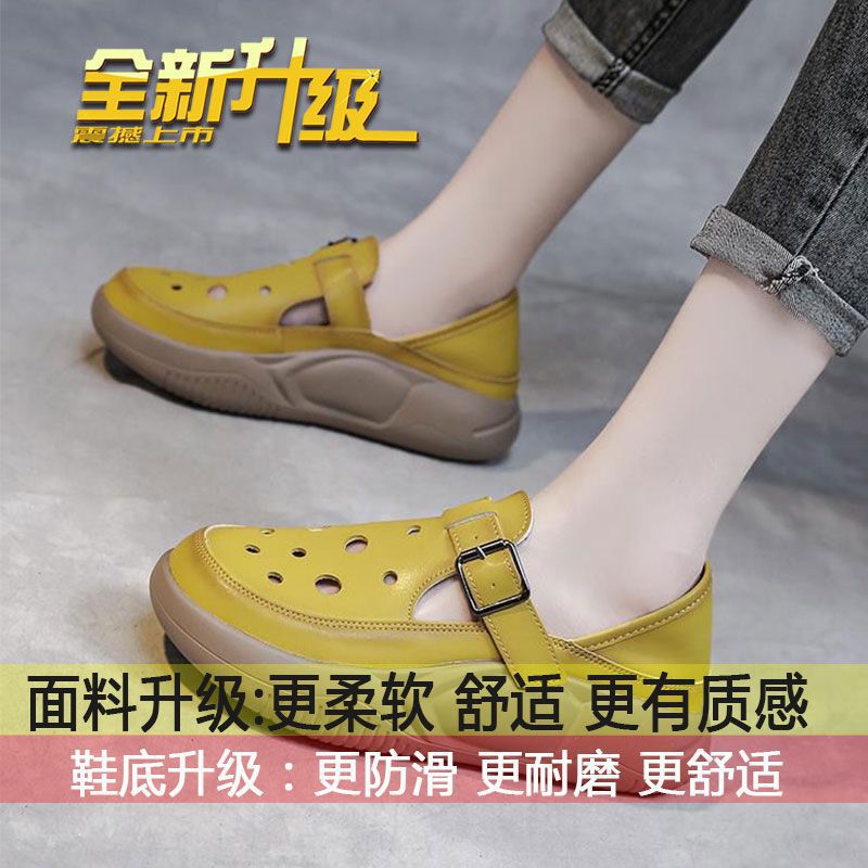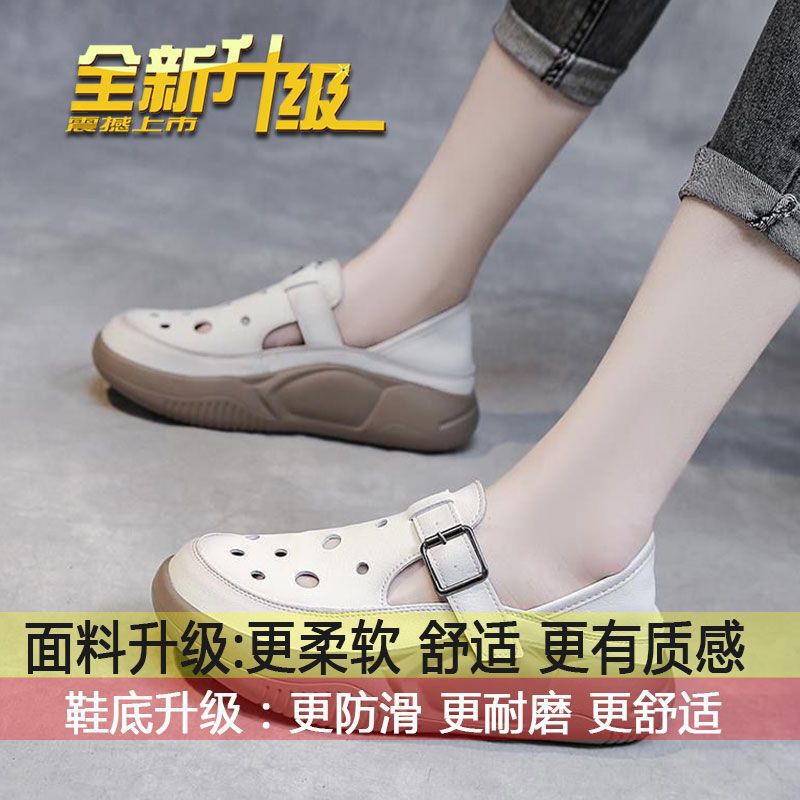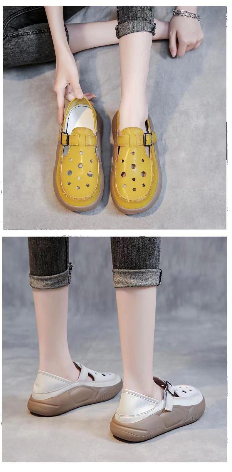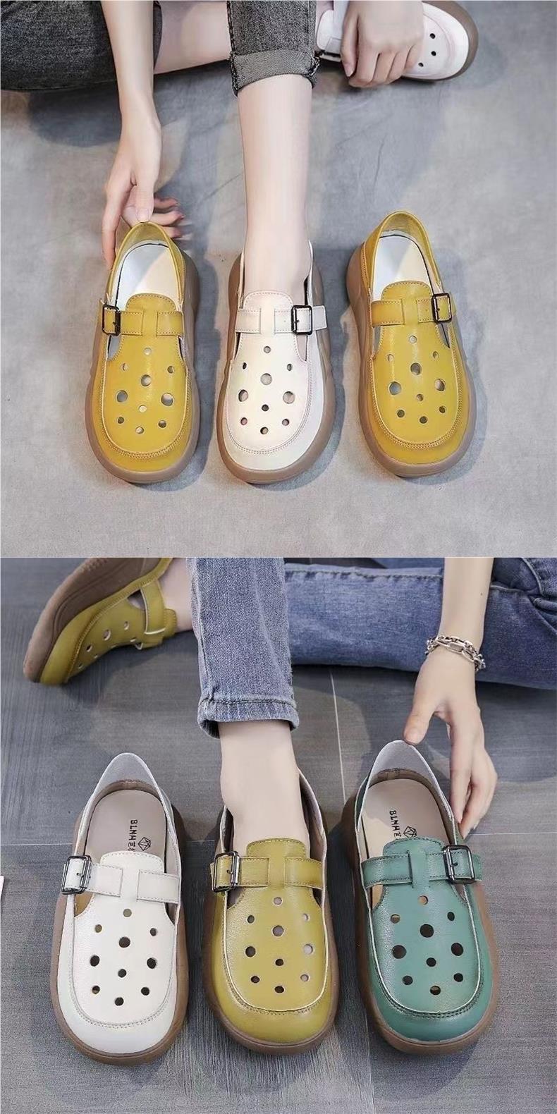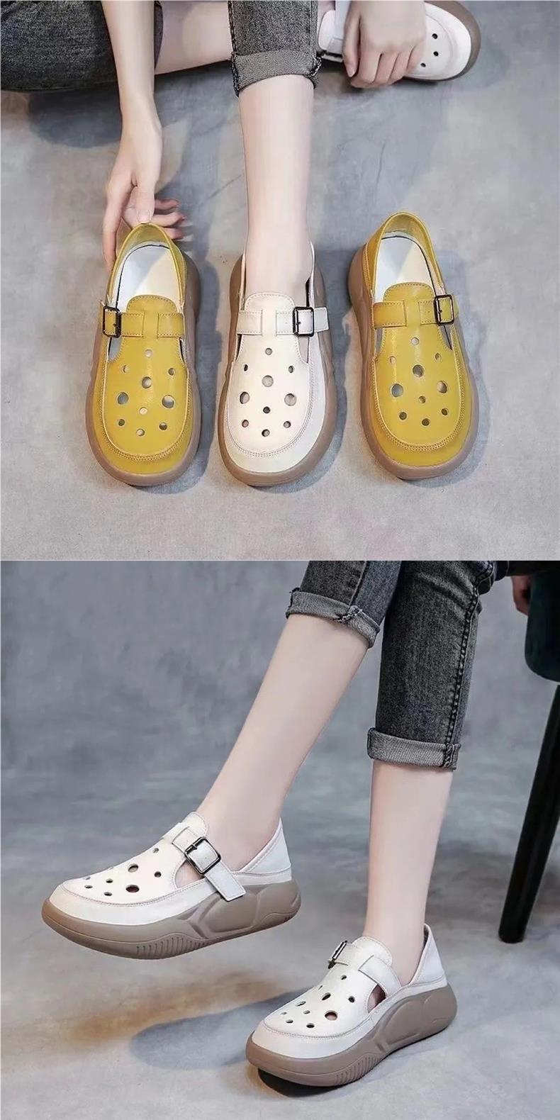 여성을위한 복고풍 스타일 중공 부드러운 가죽 로마 샌들 여름 새로운 2 착용 악어 신발 캐주얼 신발스토어 가기