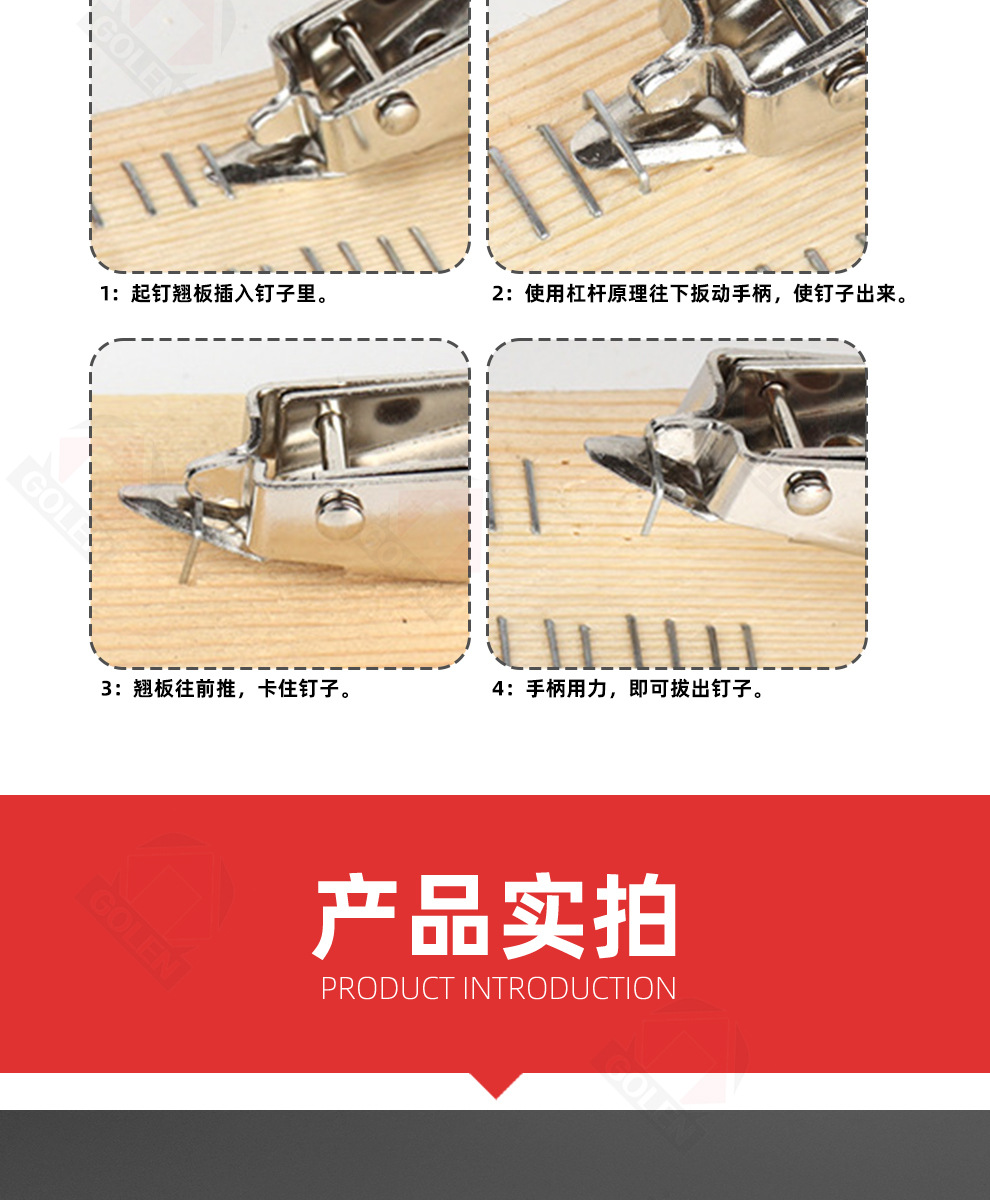 只能起木头上的钉子,需要有缝才能取,