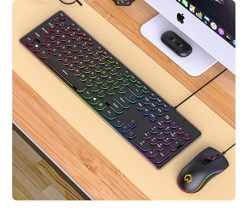 • 블랙 레인보우 [유선 키보드 및 마우스 세트] [조명 업그레이드 버전]