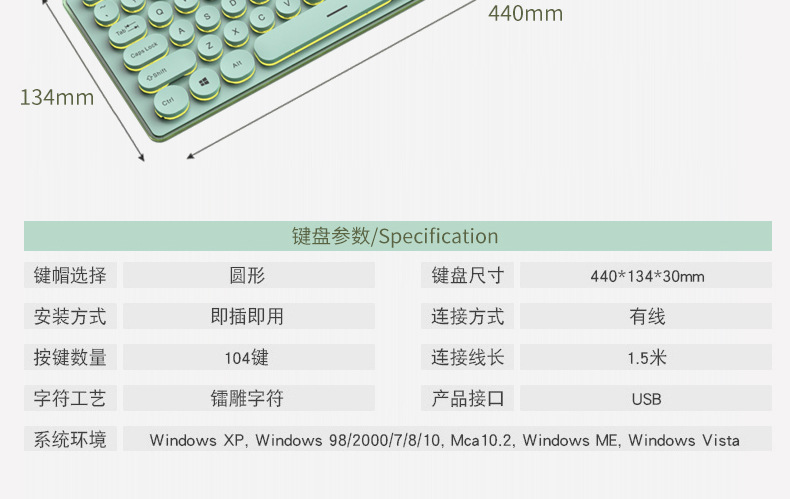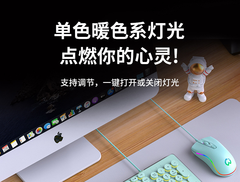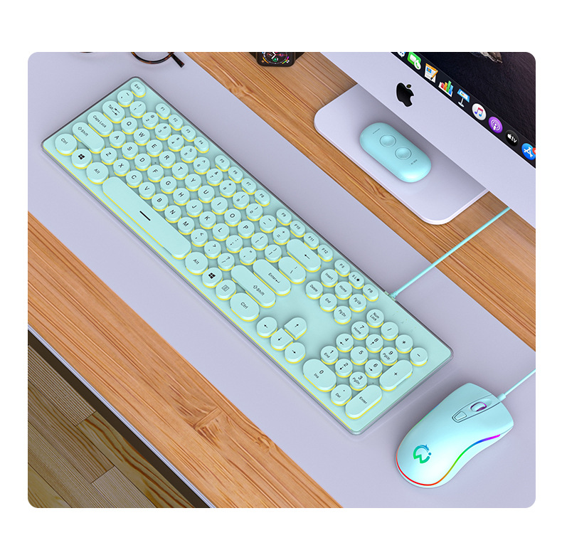 • 말차 그린 [유선 키보드 및 마우스 세트] [조명 업그레이드 버전]