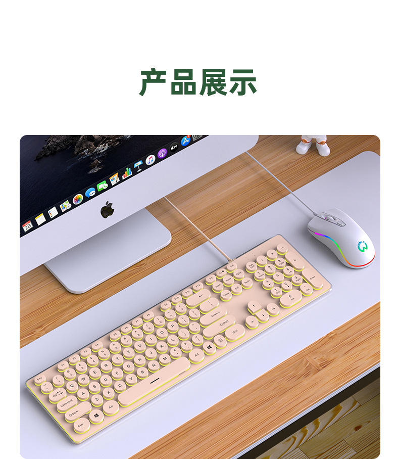 무소음 키보드 마우스 세트 펑크 기계식 느낌 유선 여성용 사무용 특수 터치감 은은한 소리 키캡스토어 가기