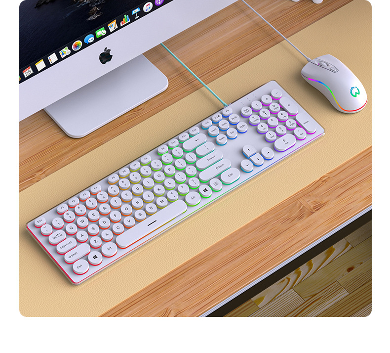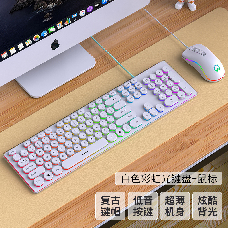 • White Rainbow [유선 키보드 및 마우스 세트] [조명 업그레이드 버전]