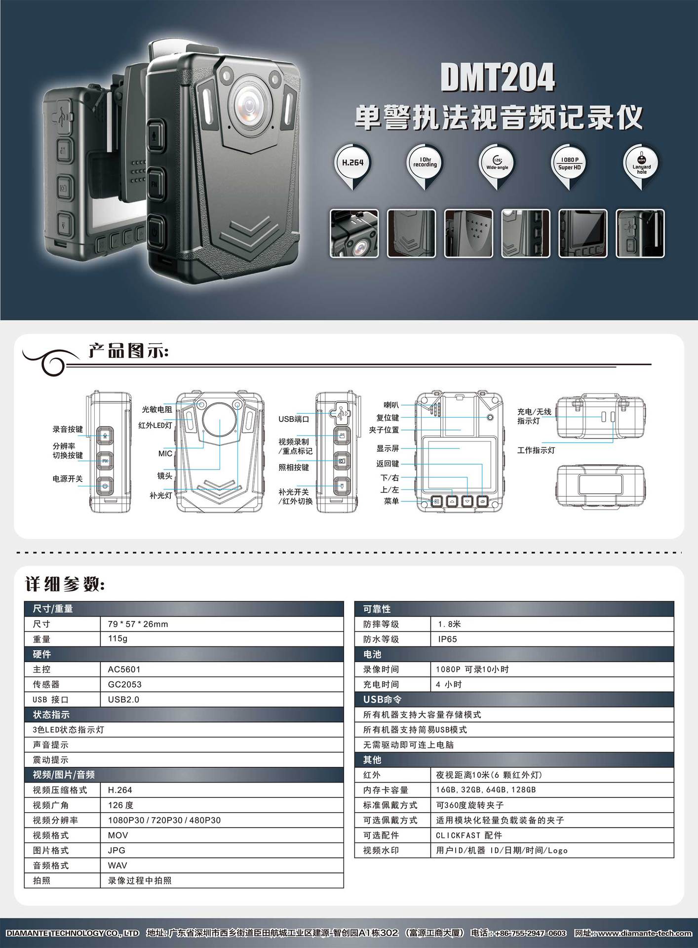 Taimet DMT204 고화질 법 집행 레코더 휴대용 카메라 야간 투시경 매우 긴 배터리 수명 휴대용스토어 가기
