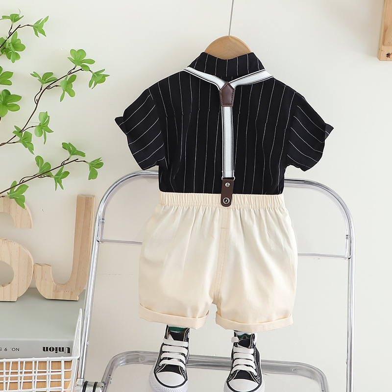 어린이 착용 여름 새 소년 스트랩 바지 넥타이 셔츠 반팔 세트 캐주얼 어깨 스트랩 바지 투피스 세트스토어 가기