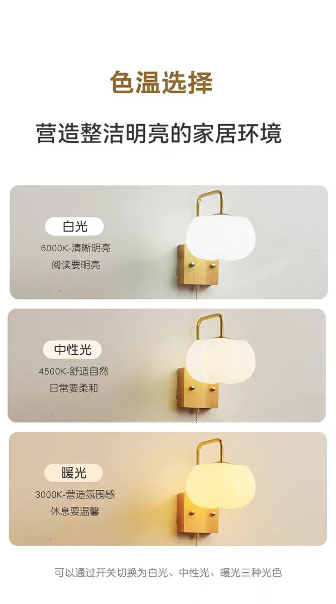 • 호두 컬러 케이블 벽 램프-삼색 빛