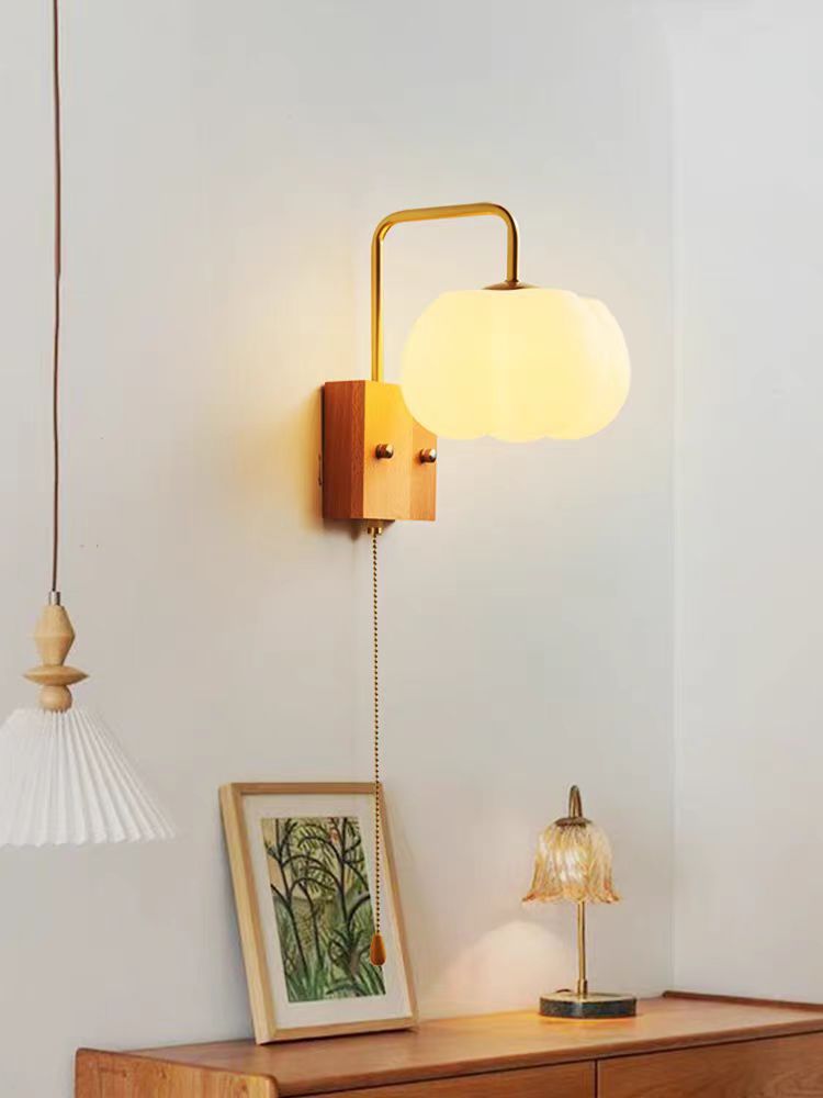 • 호두 컬러 케이블 벽 램프-따뜻한 빛