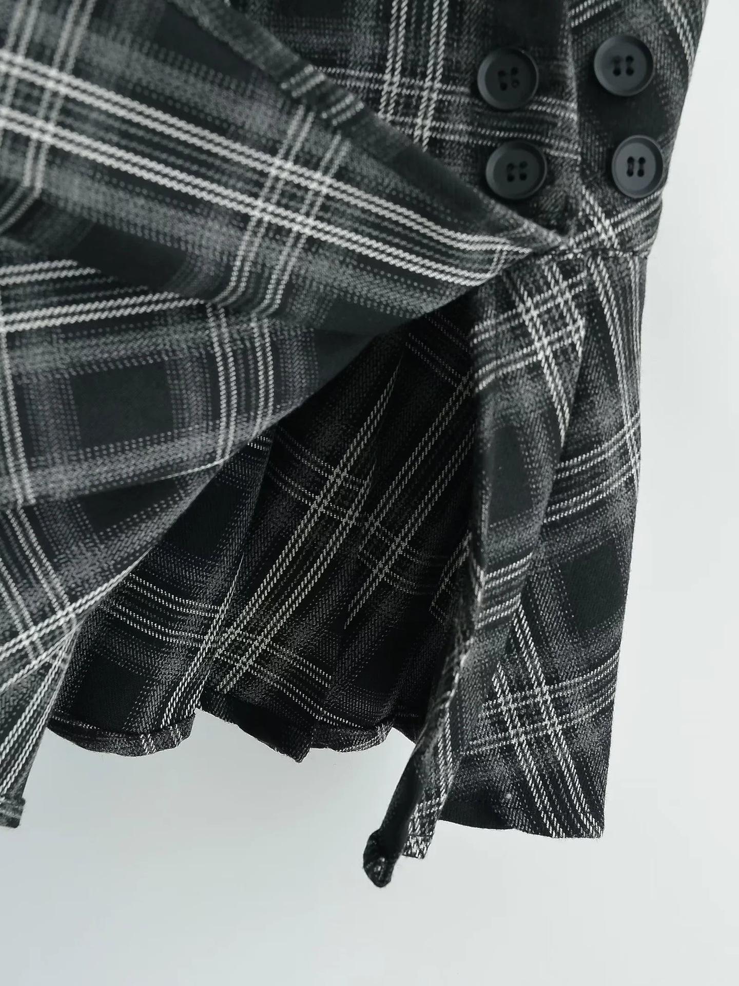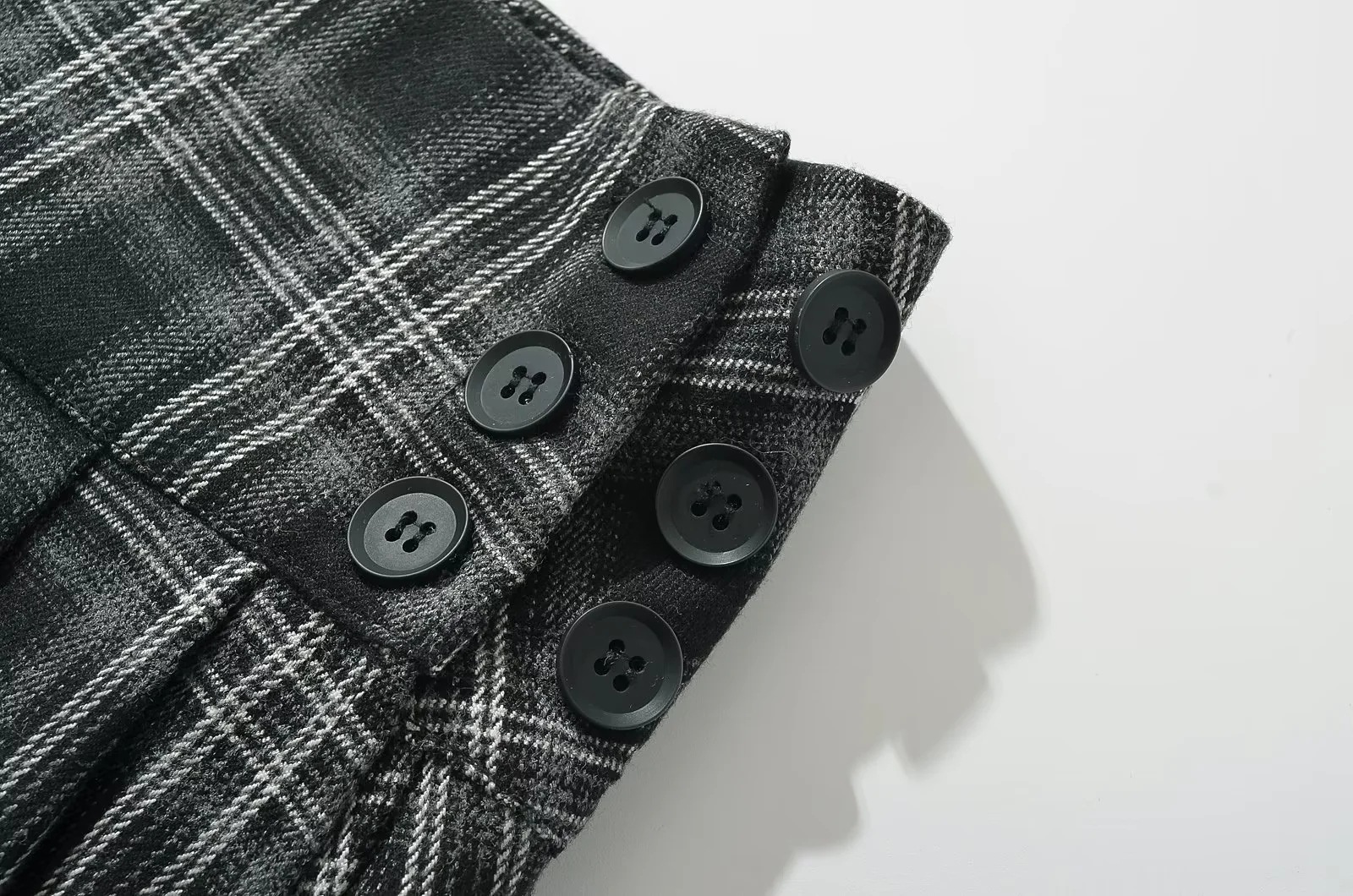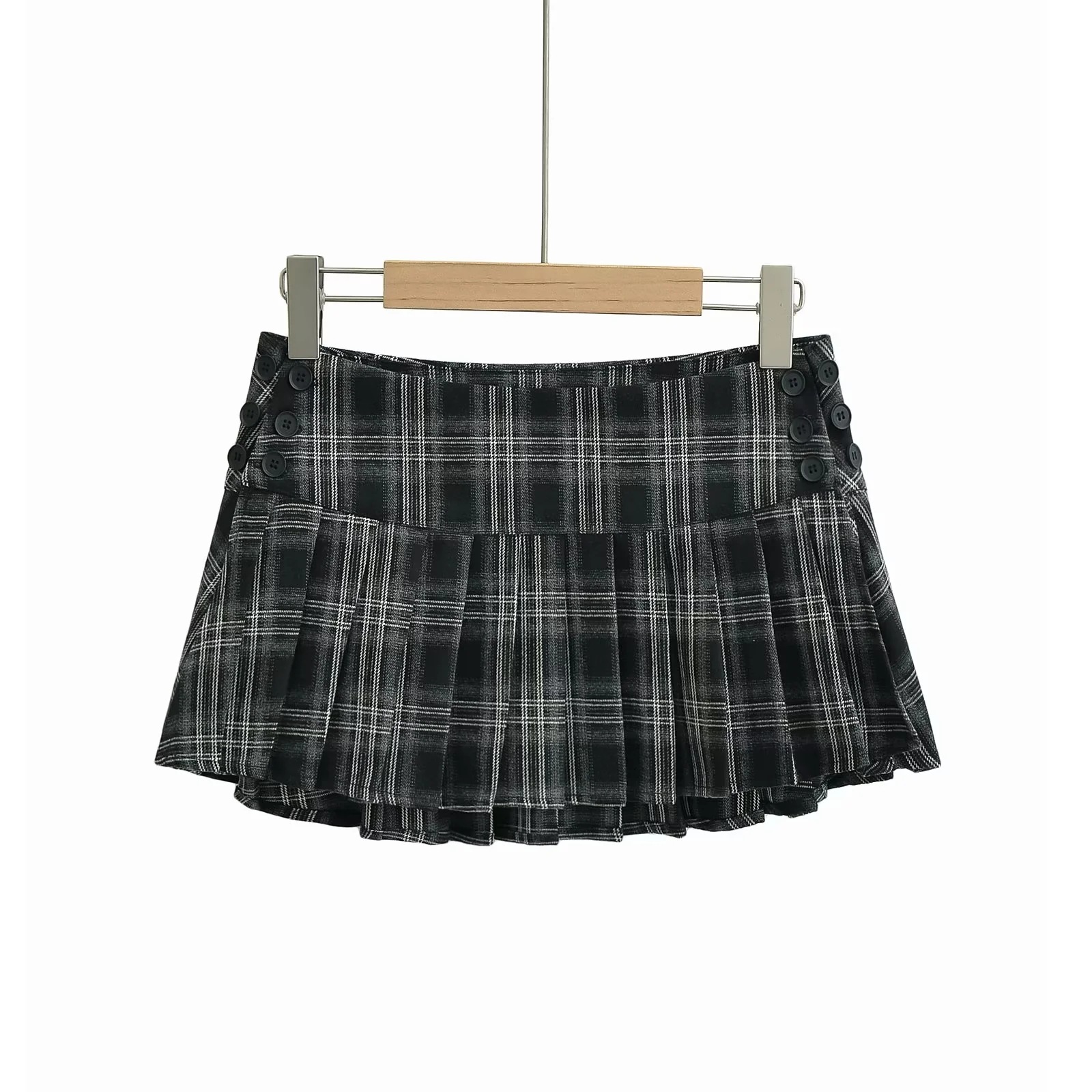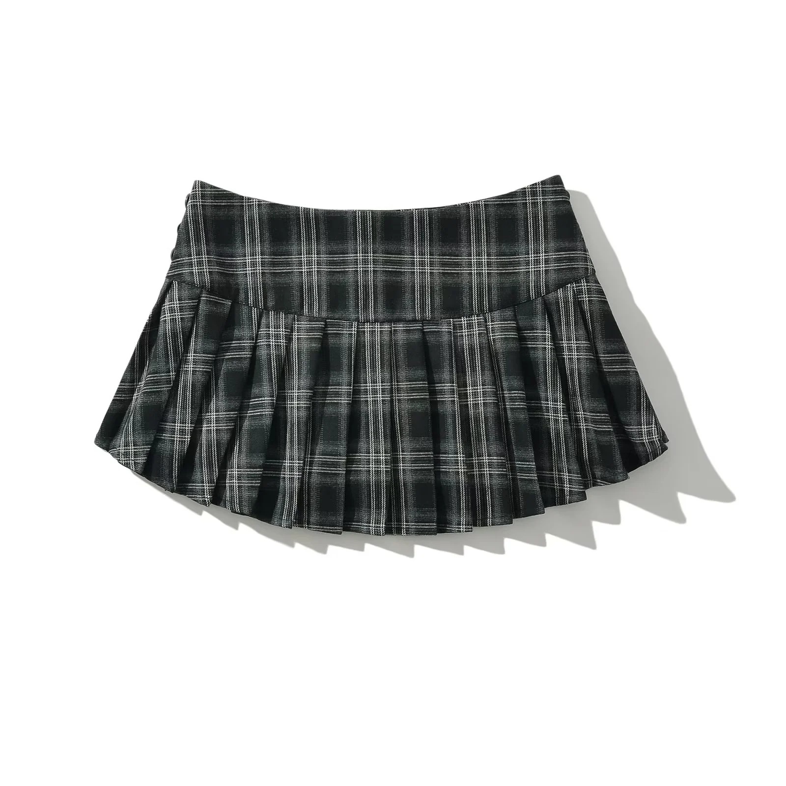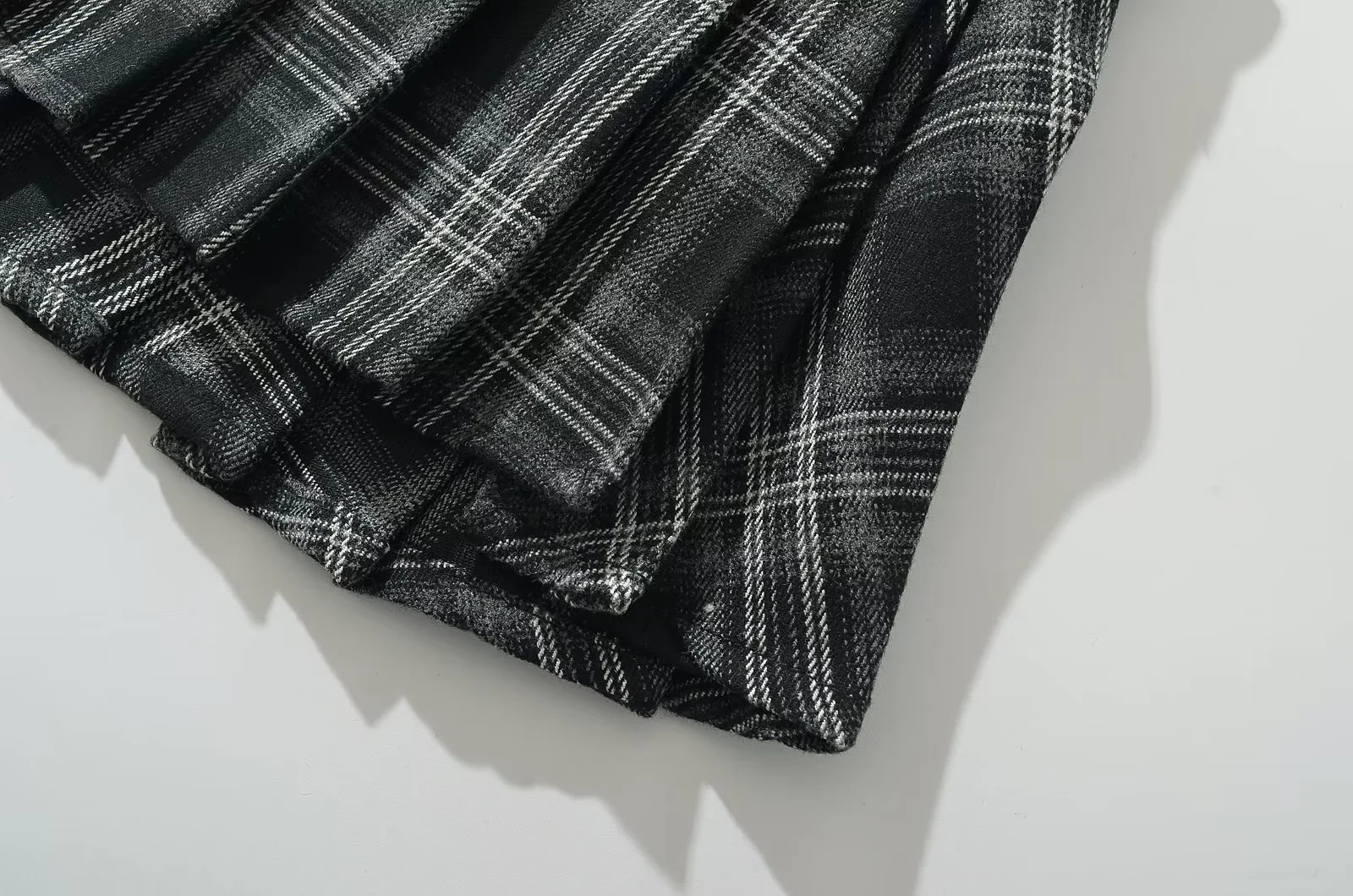 미국 레트로 격자 무늬 세트 패브릭 스커트 가을과 겨울 올 매치 달콤한 쿨 섹시한 스파이스 소녀 낮은 허리 주름 치마