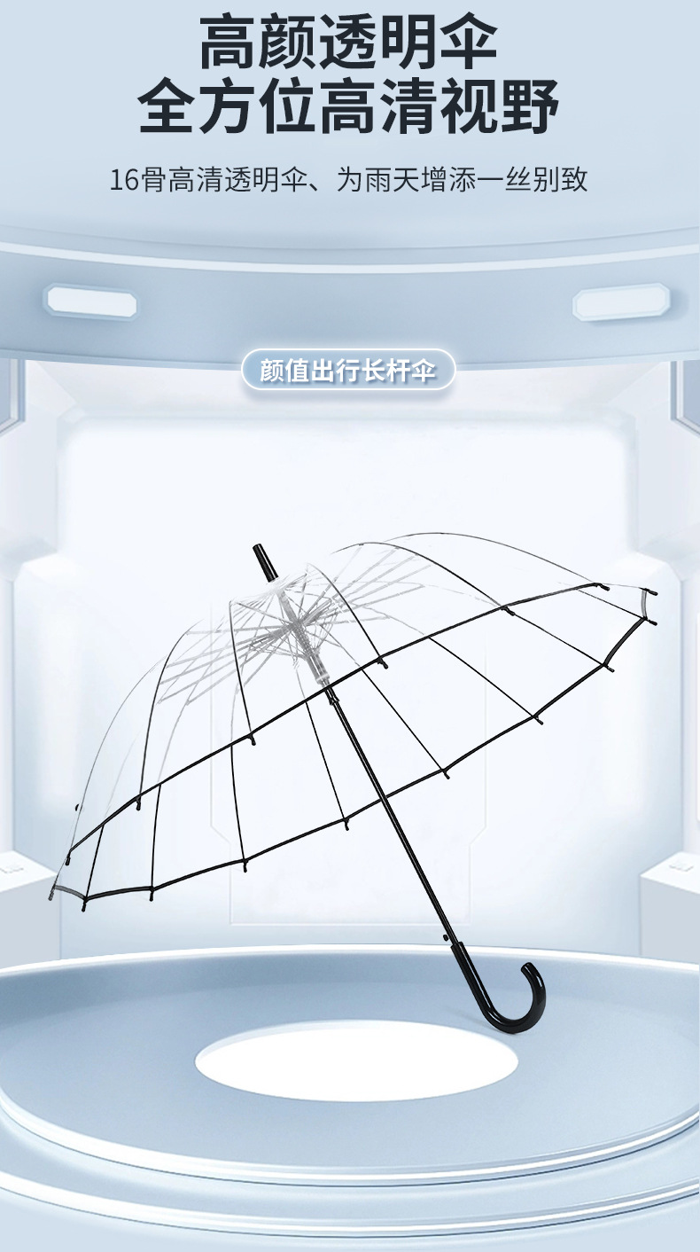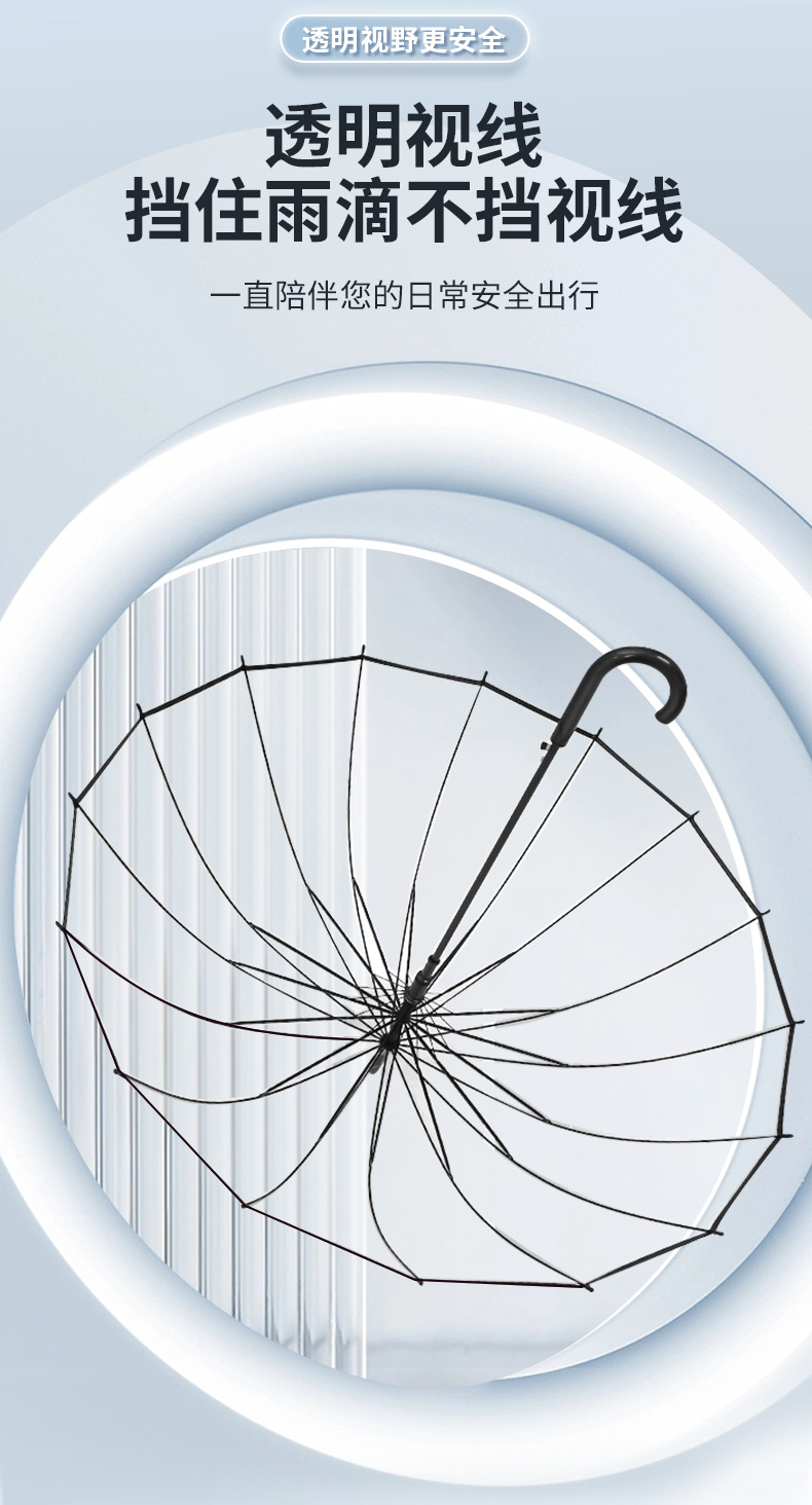 • 16본투명우산 - 검정색 손잡이 - (우산 표면은 약 97CM)