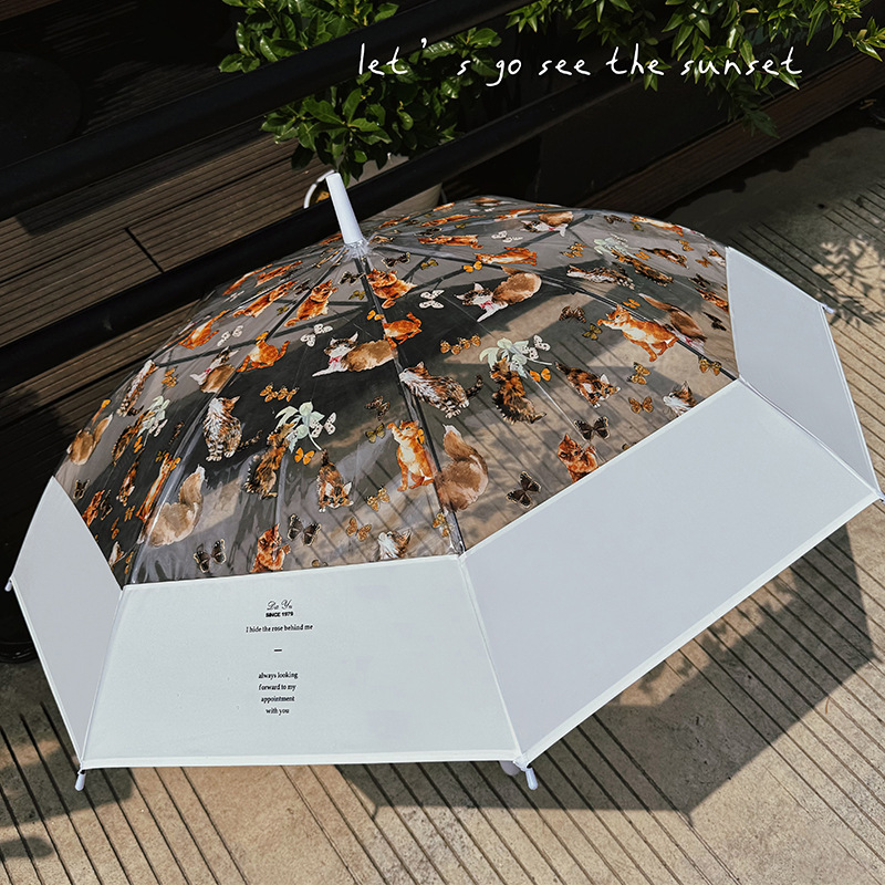 • 8본 만화 고양이 스타일 투명 우산 - 흰색(우산 표면은 약 98CM)